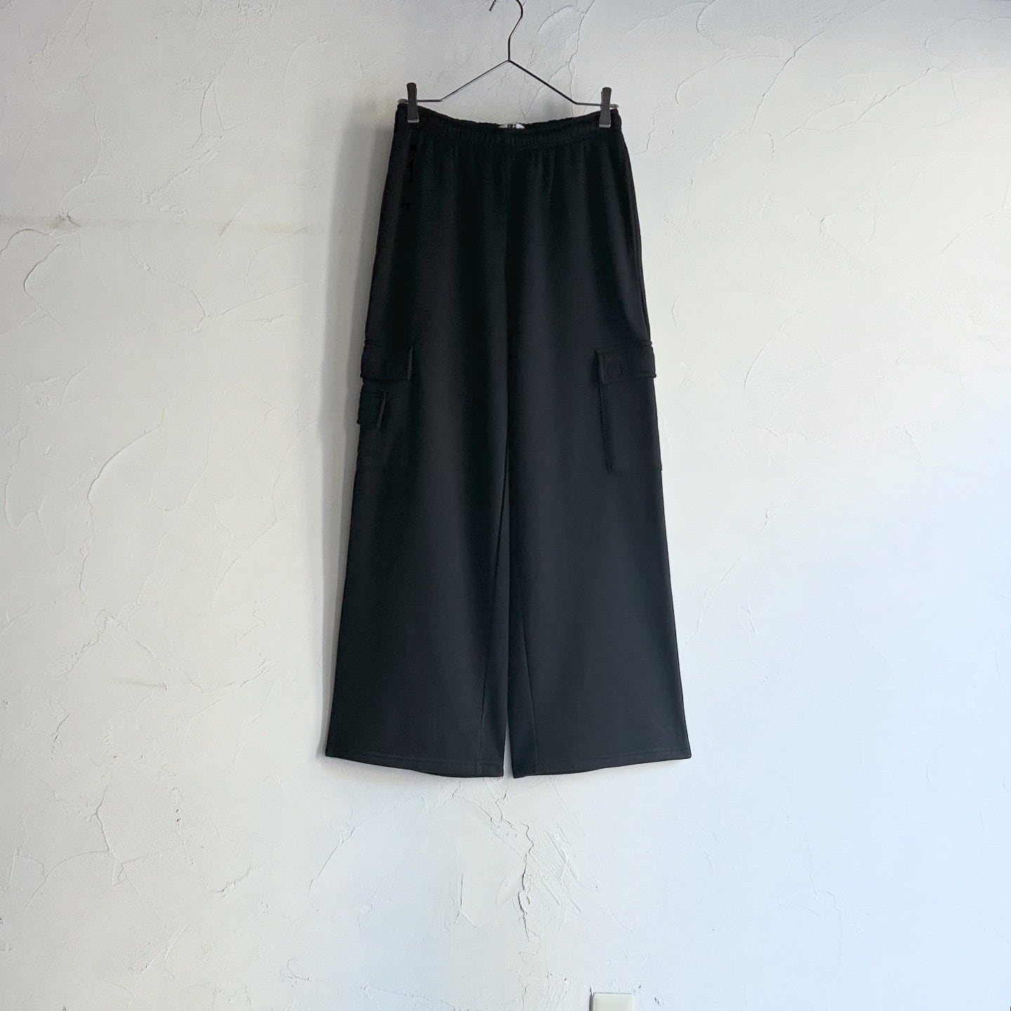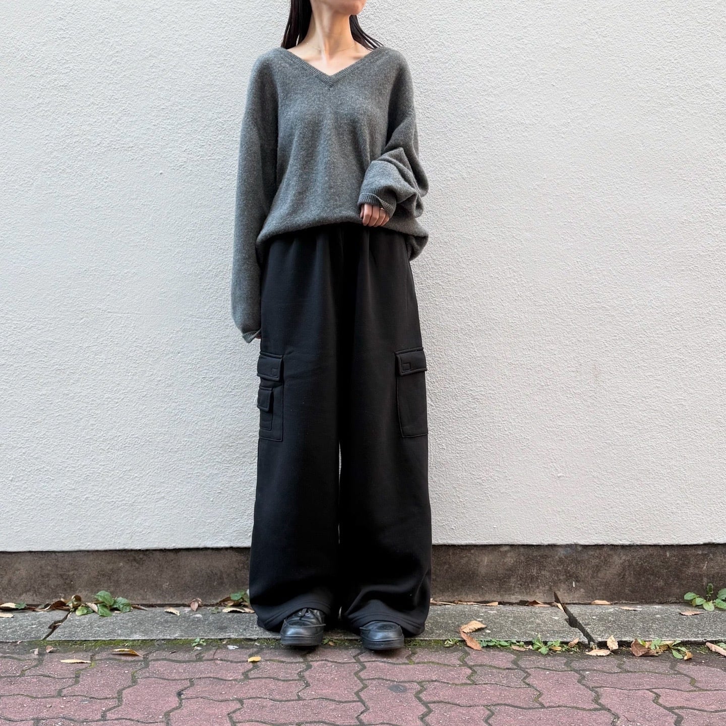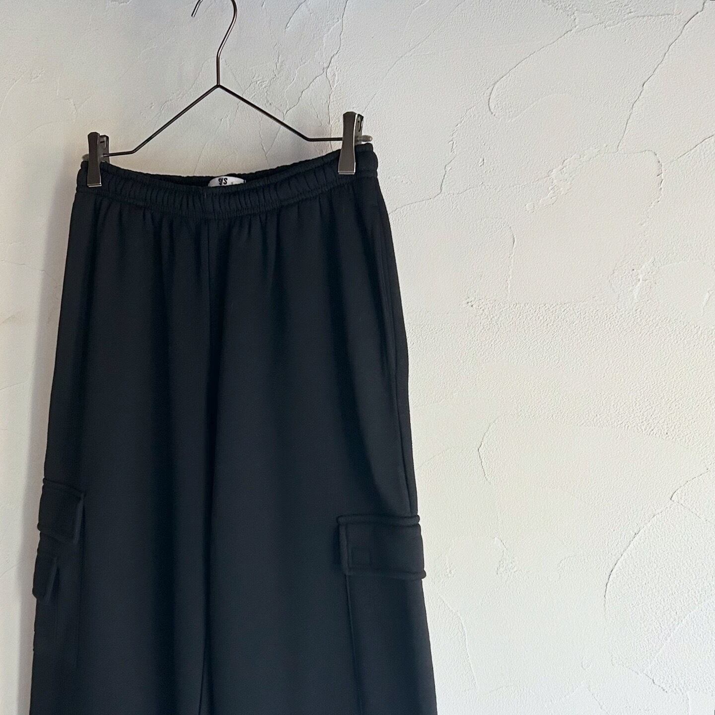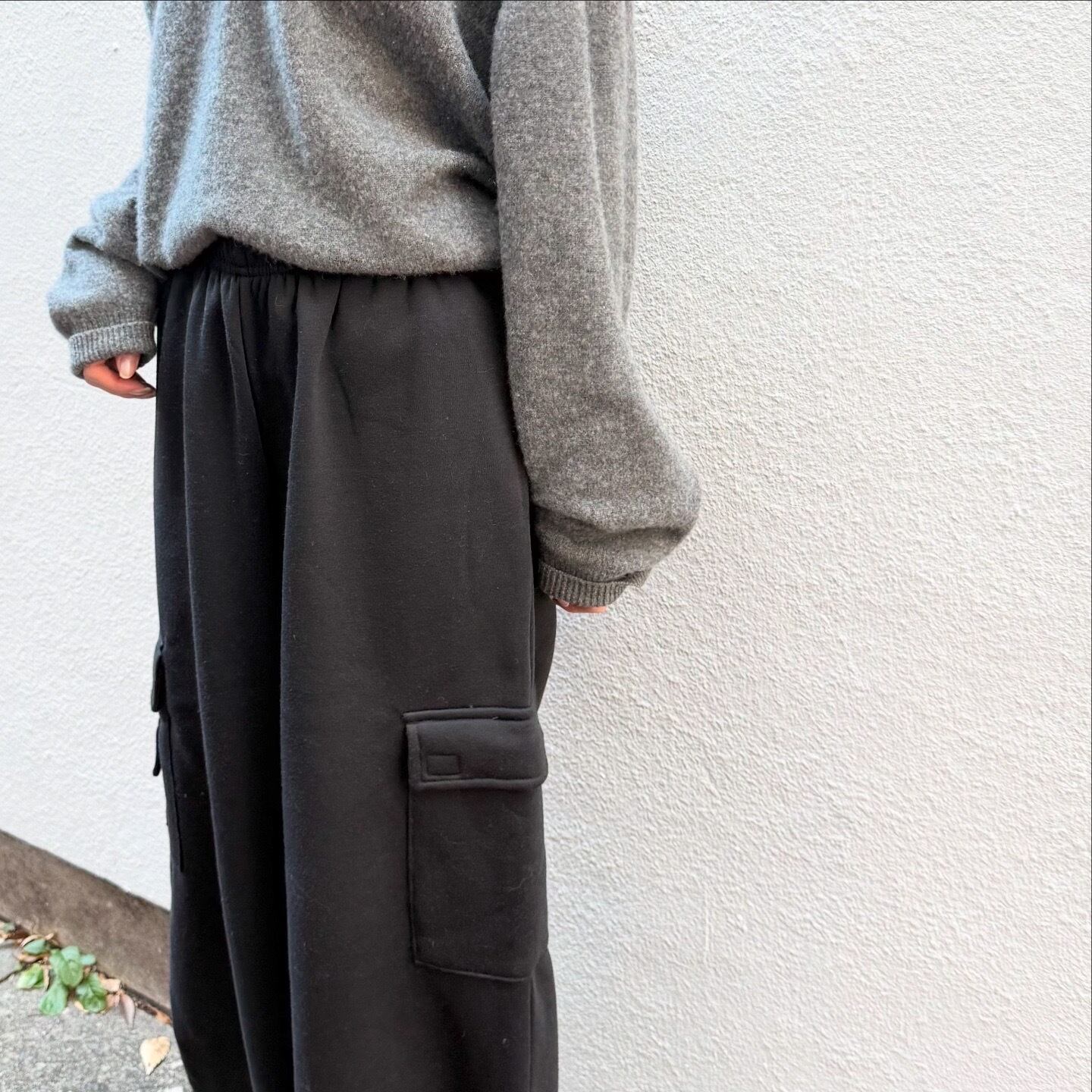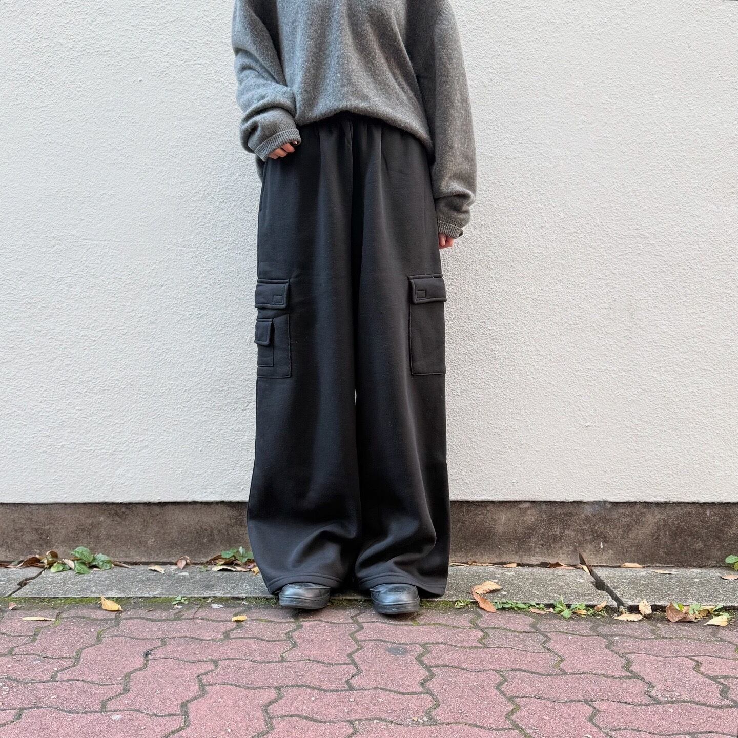 ワイドなシルエットが身体のラインを拾わず着用できるスウェットカーゴパンツです。裏起毛でとても暖かくお召し頂けます。