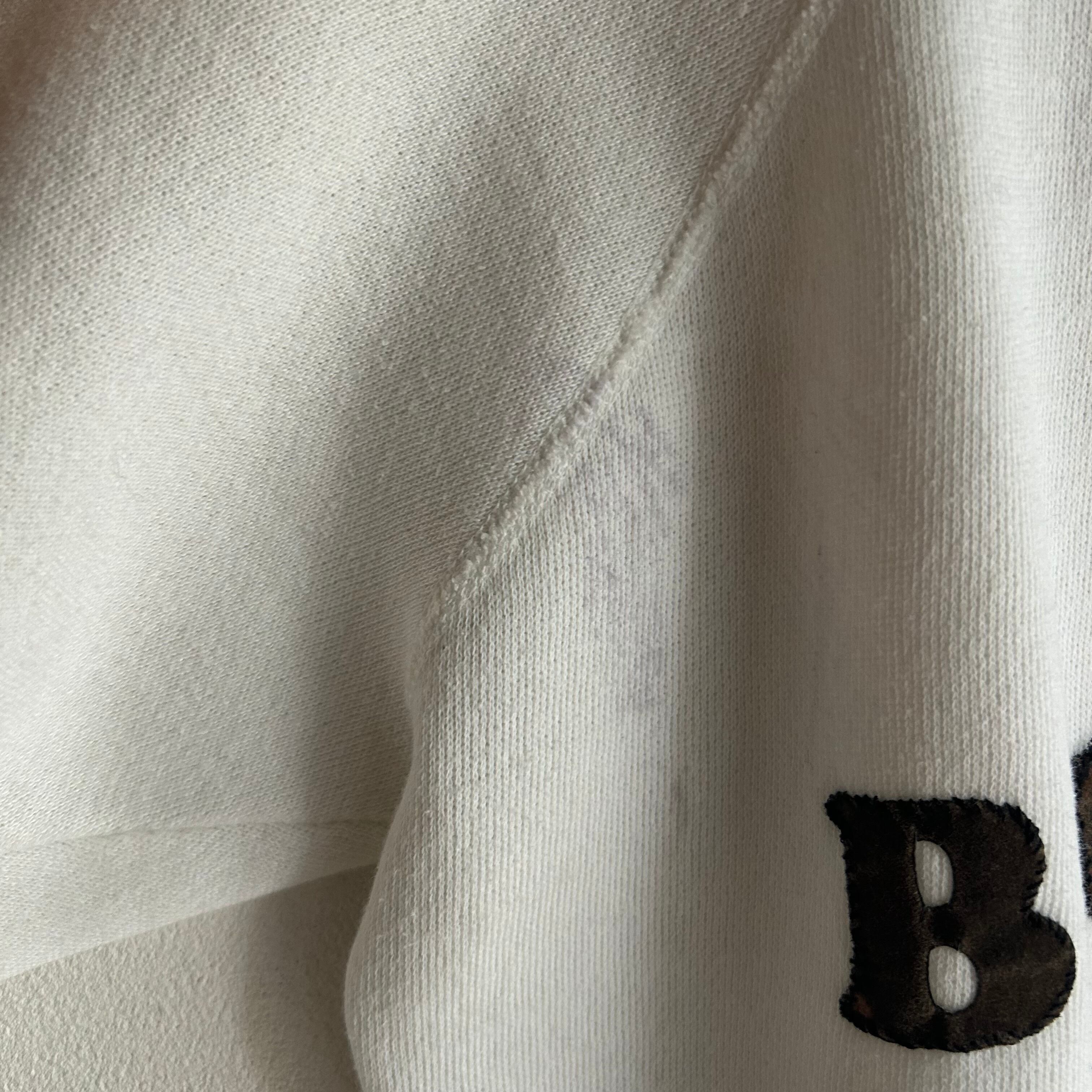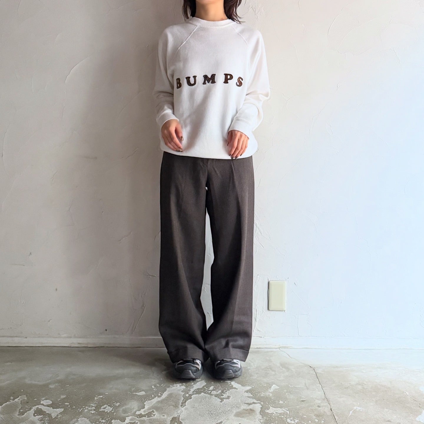 ベロア素材のロゴが可愛いスウェットです。ロゴの位置が少し下なのもポイントです。