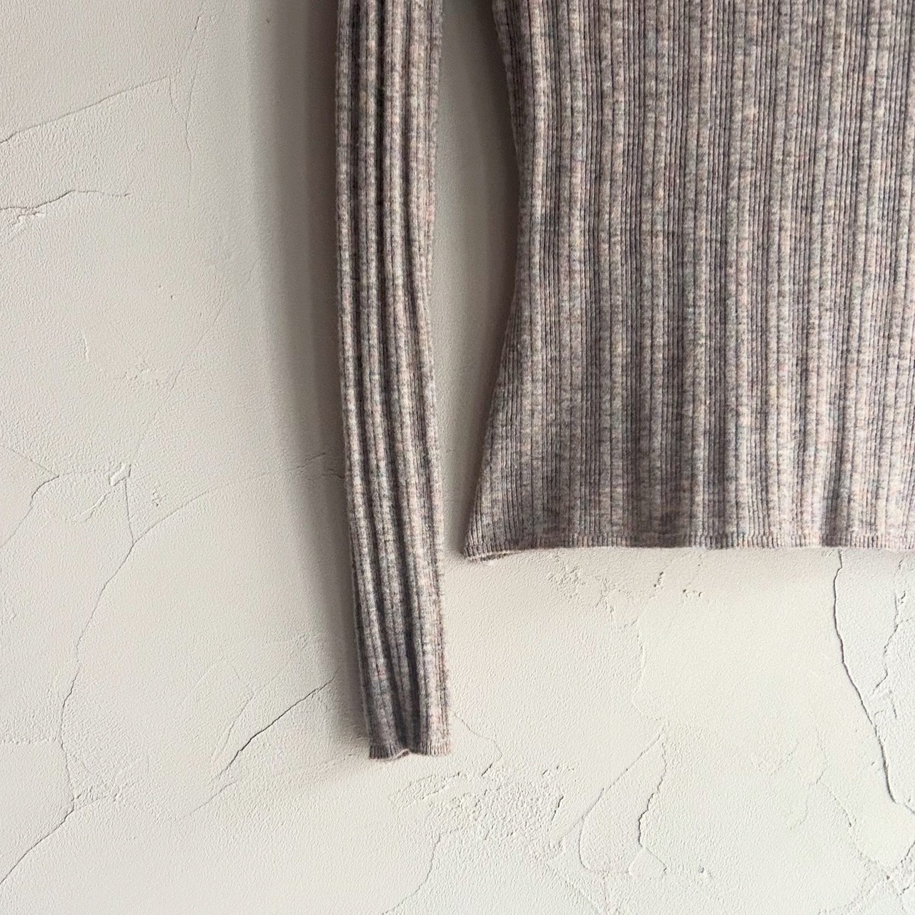 ピンク、イエロー、パープルの柔らかい配色が可愛いリブニットトップスです。マシュマロのようなふわふわな着心地です。