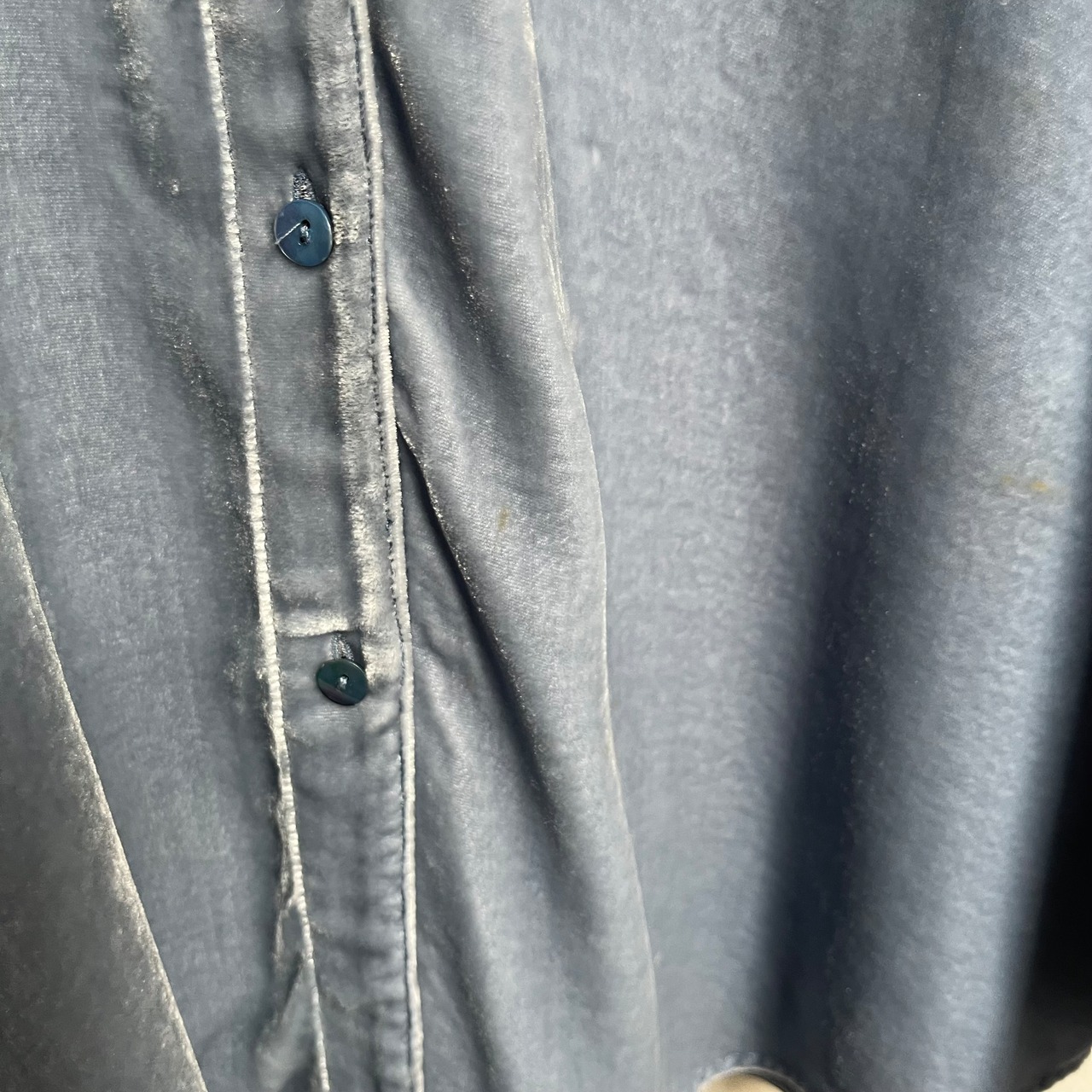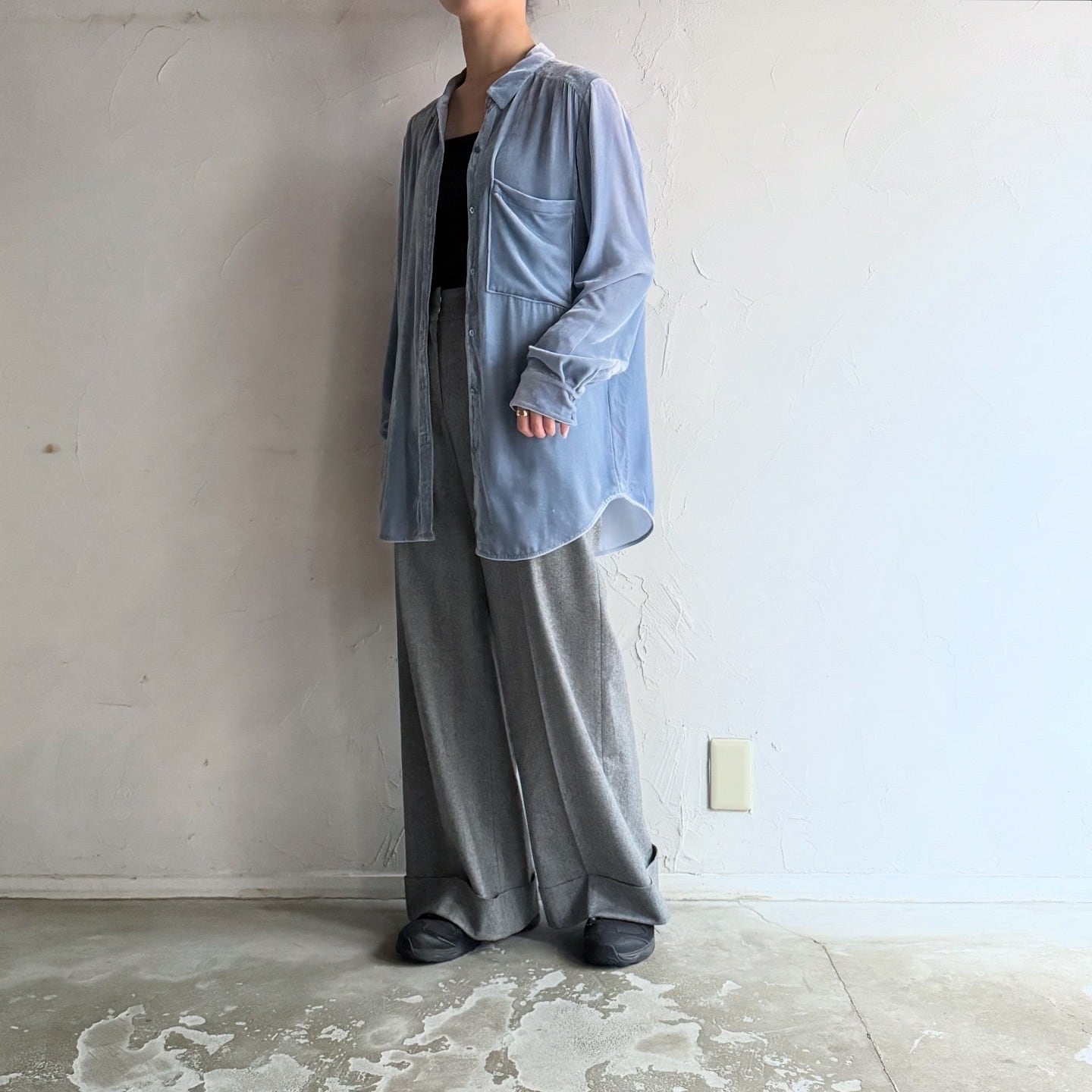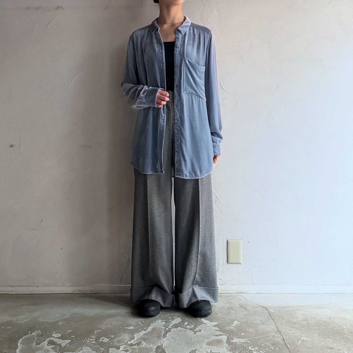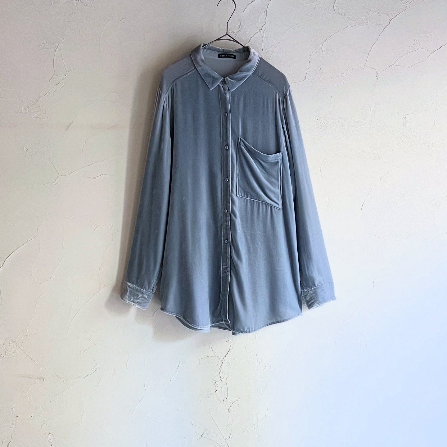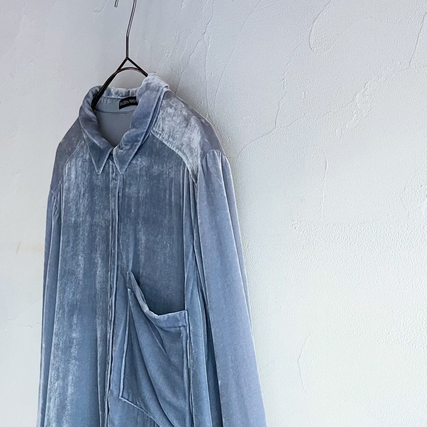 淡いブルーが素敵なベロアシャツです。