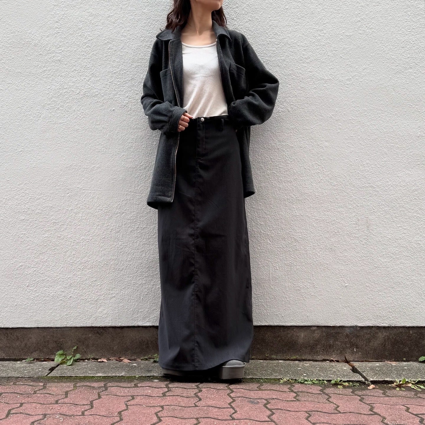 スリットが大きく入ったシンプルなスカートです。