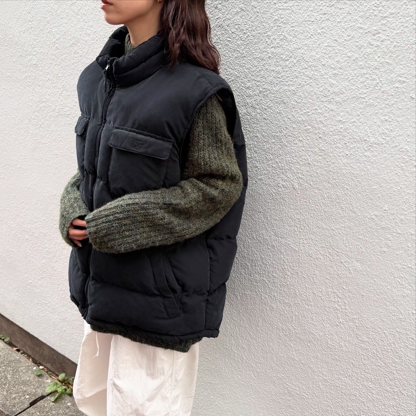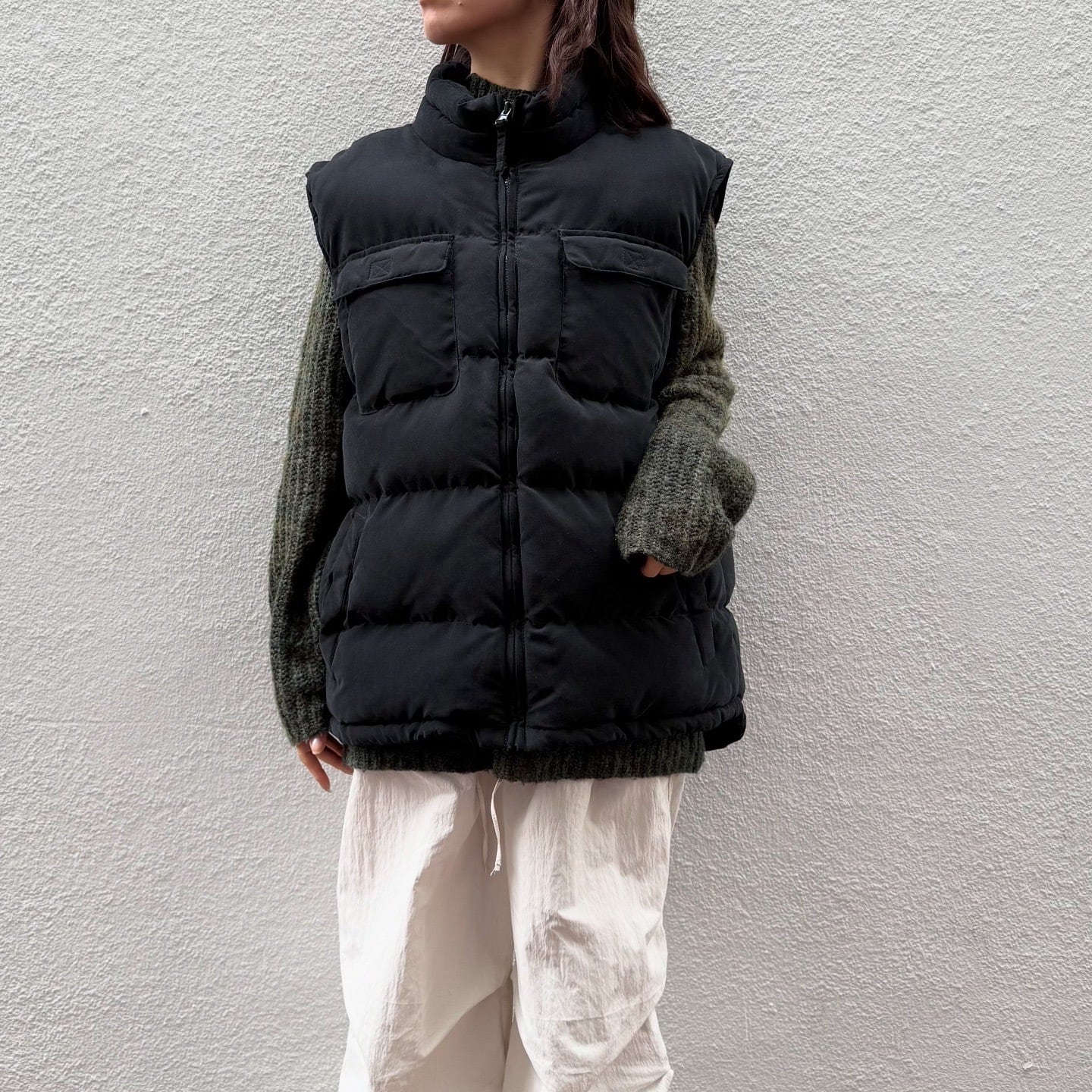 中綿がたっぷり入ったST.JOHN'S BAYのダウンベストです。内ポケット付き、裾内側にドローコードがついています。