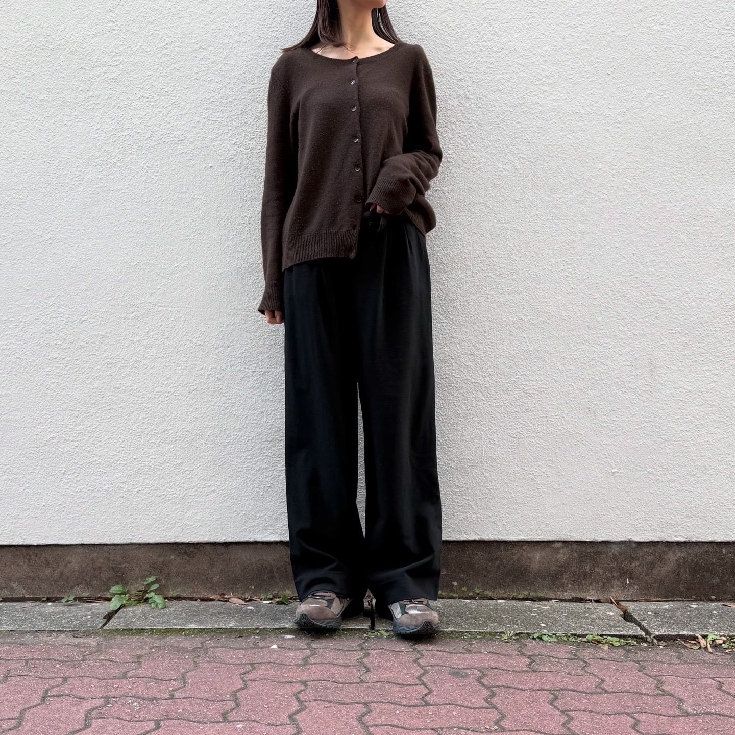 タック入りなので合わせやすく、あると便利なパンツです。