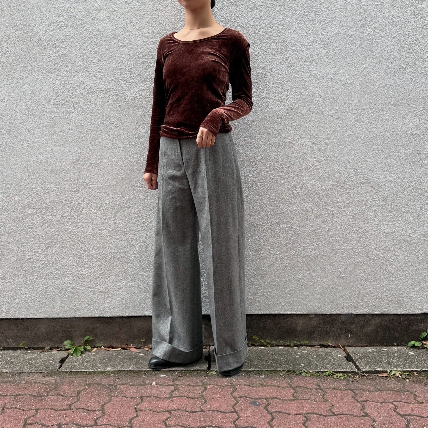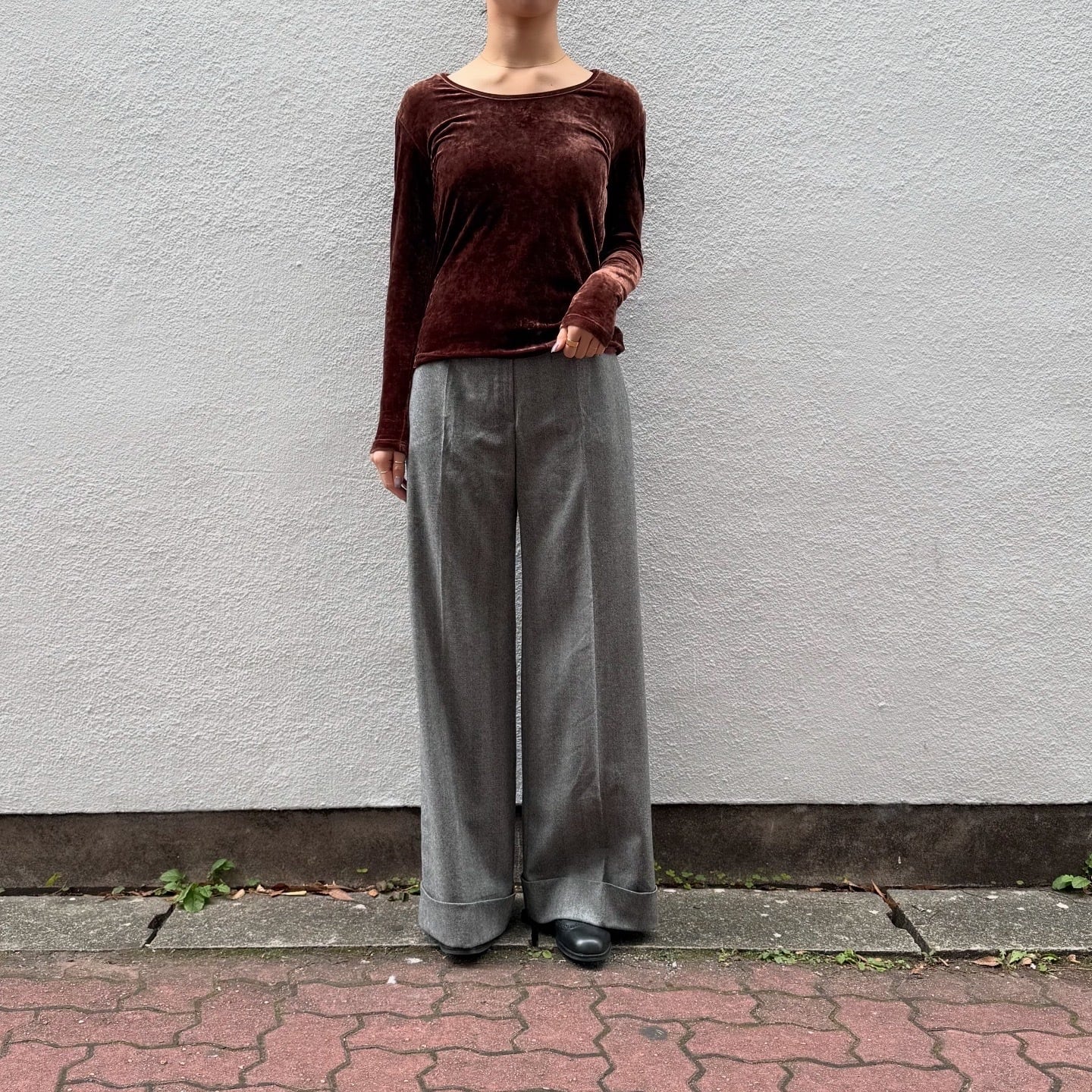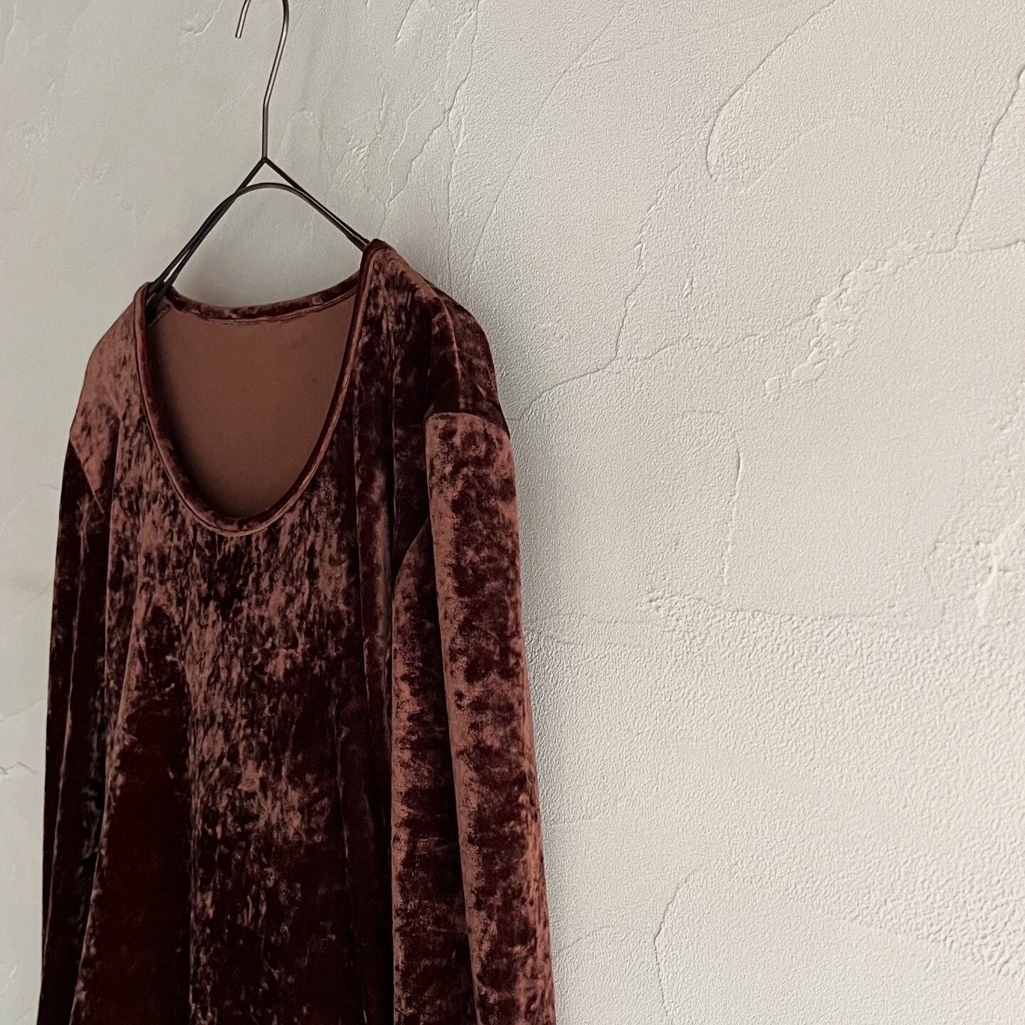 程よい光沢や首周りのスッキリとした形が美しいベロアトップスです。