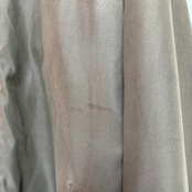 販売前に全体をチェックし、色落ちや穴等気付いた箇所(商品の味としての風合いと判断した箇所を除き)は記載致しますが、稀にわずかなダメージを見落とす場合がございます。