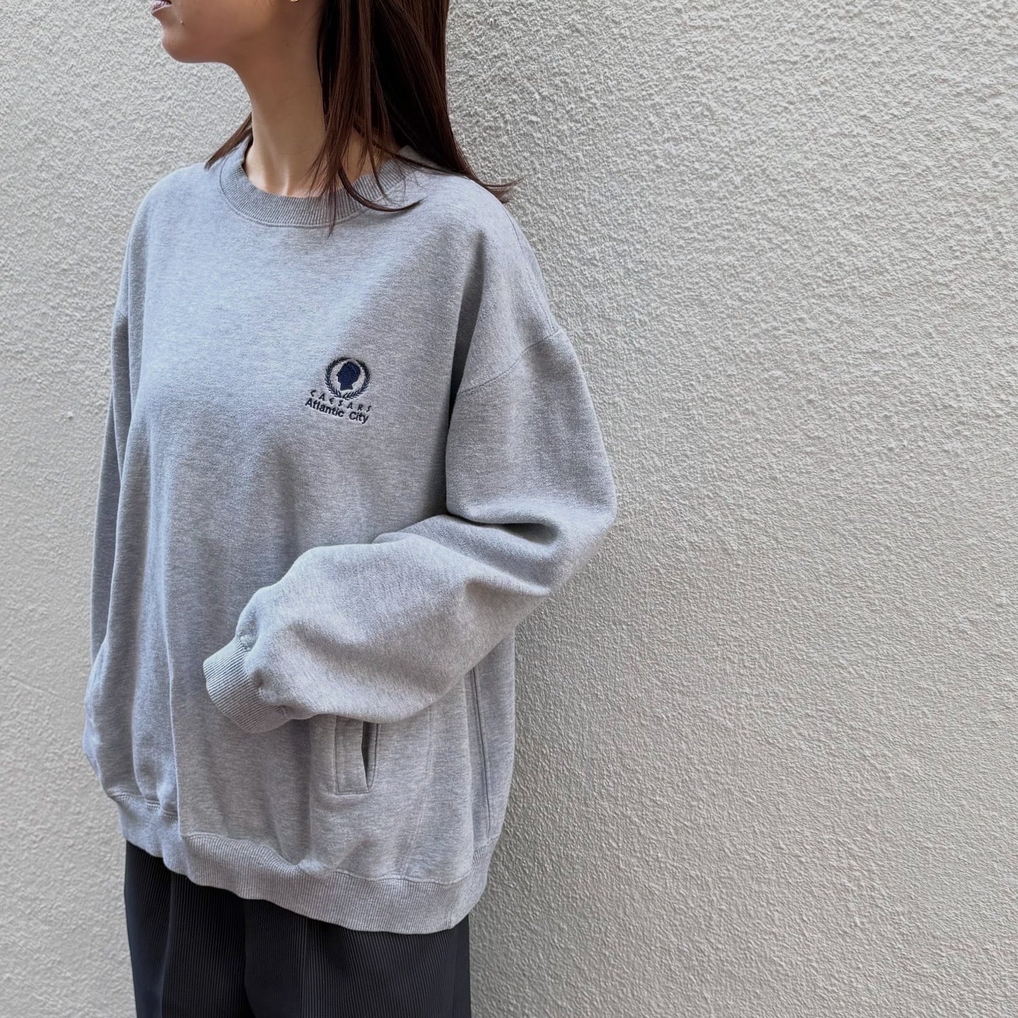 ポケットの付いたデザインが珍しいスウェットです。