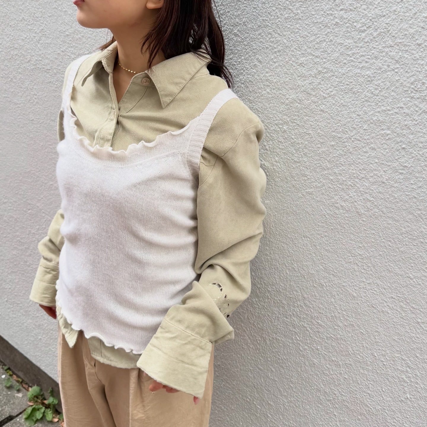 1枚で着るのはもちろん、シャツやカットソーにレイヤード可能なニットキャミソールです。