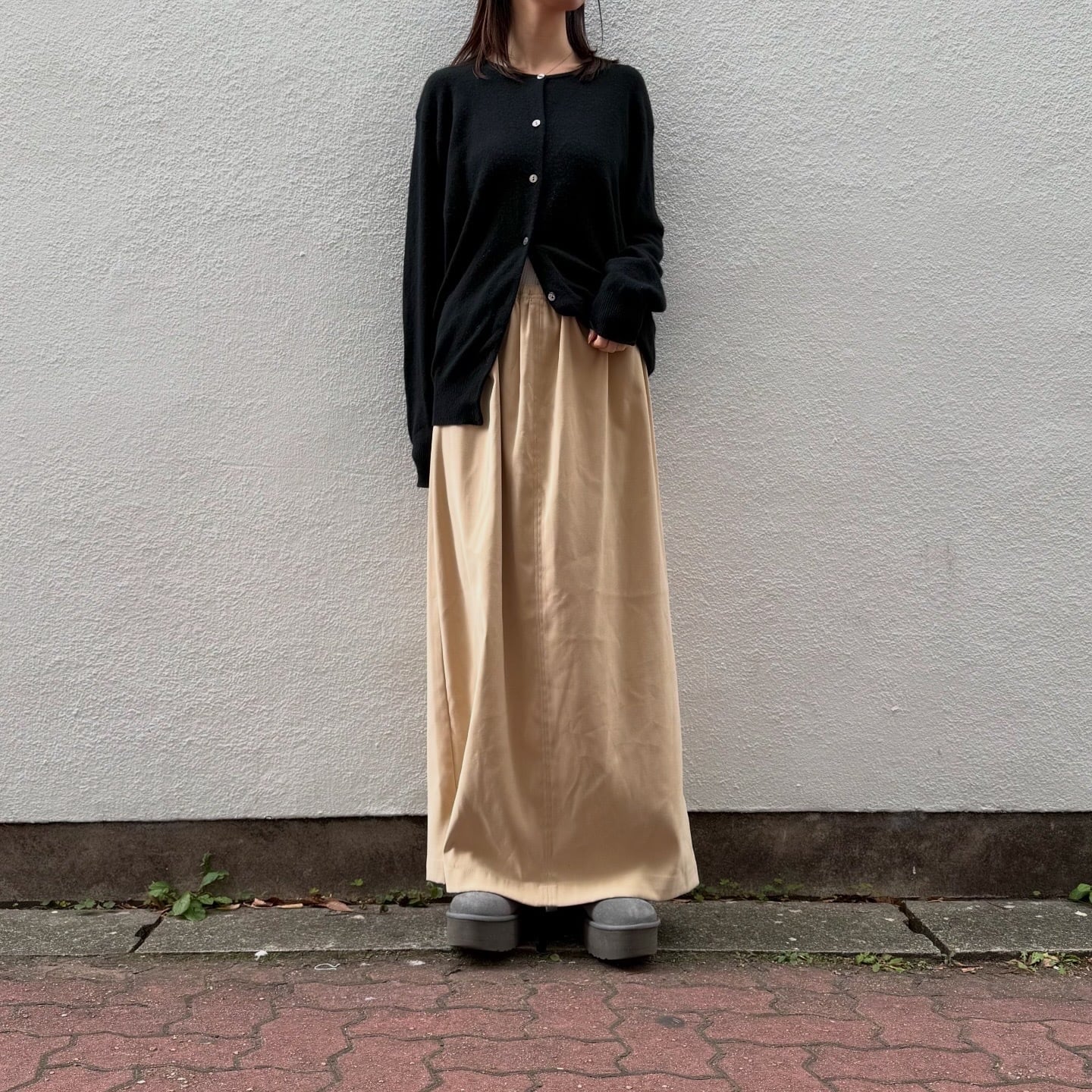 マットな質感がお洒落なバックスリットのスカートです。