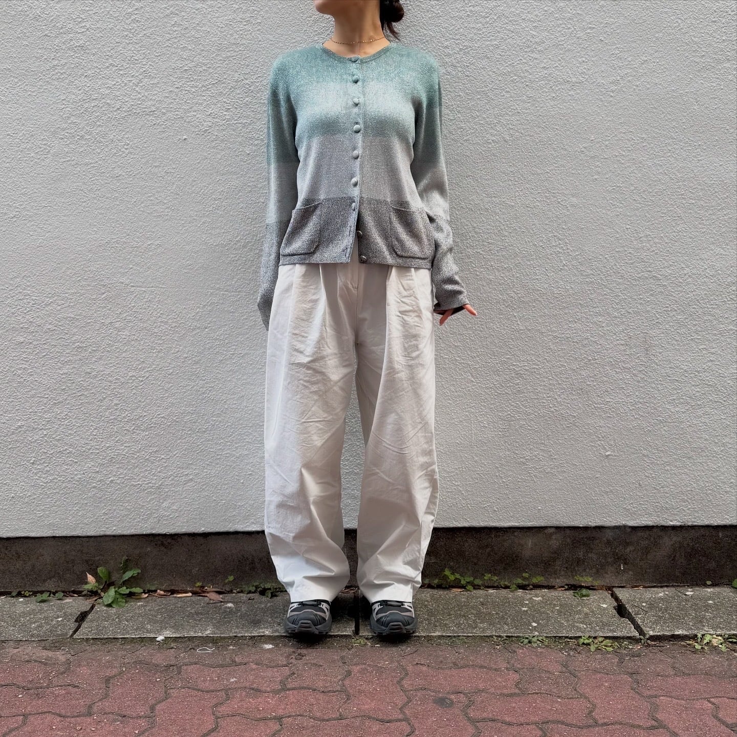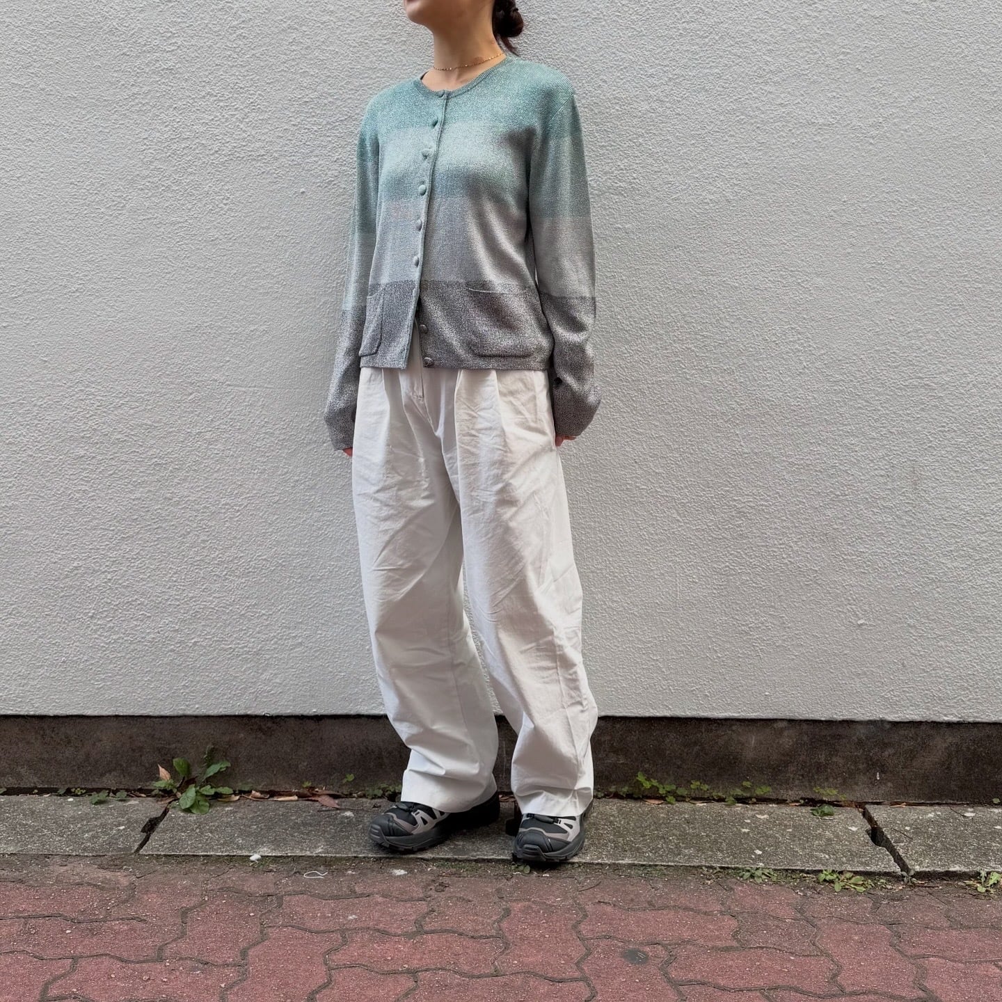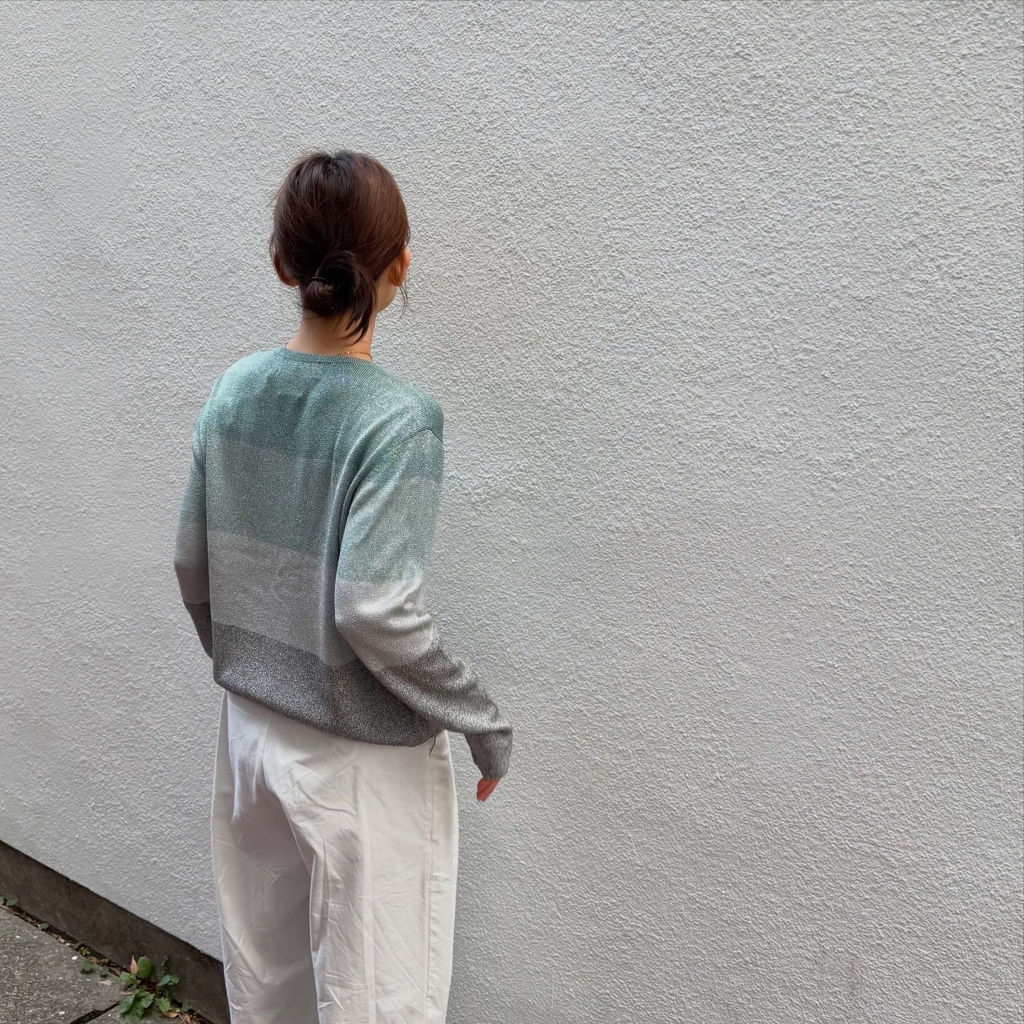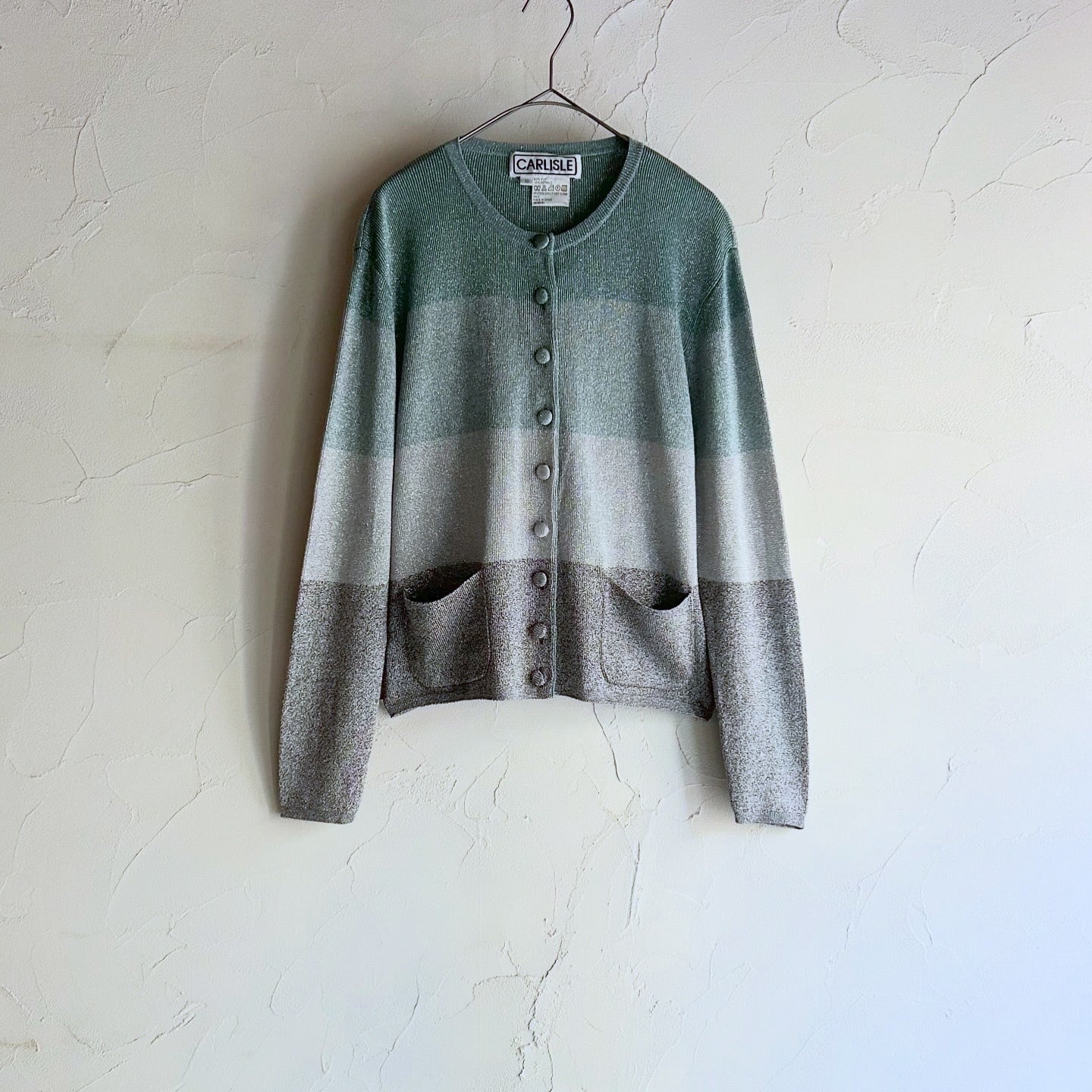 寒色のグラデーションとシルバーラメのバランスが美しいニットカーディガンです。