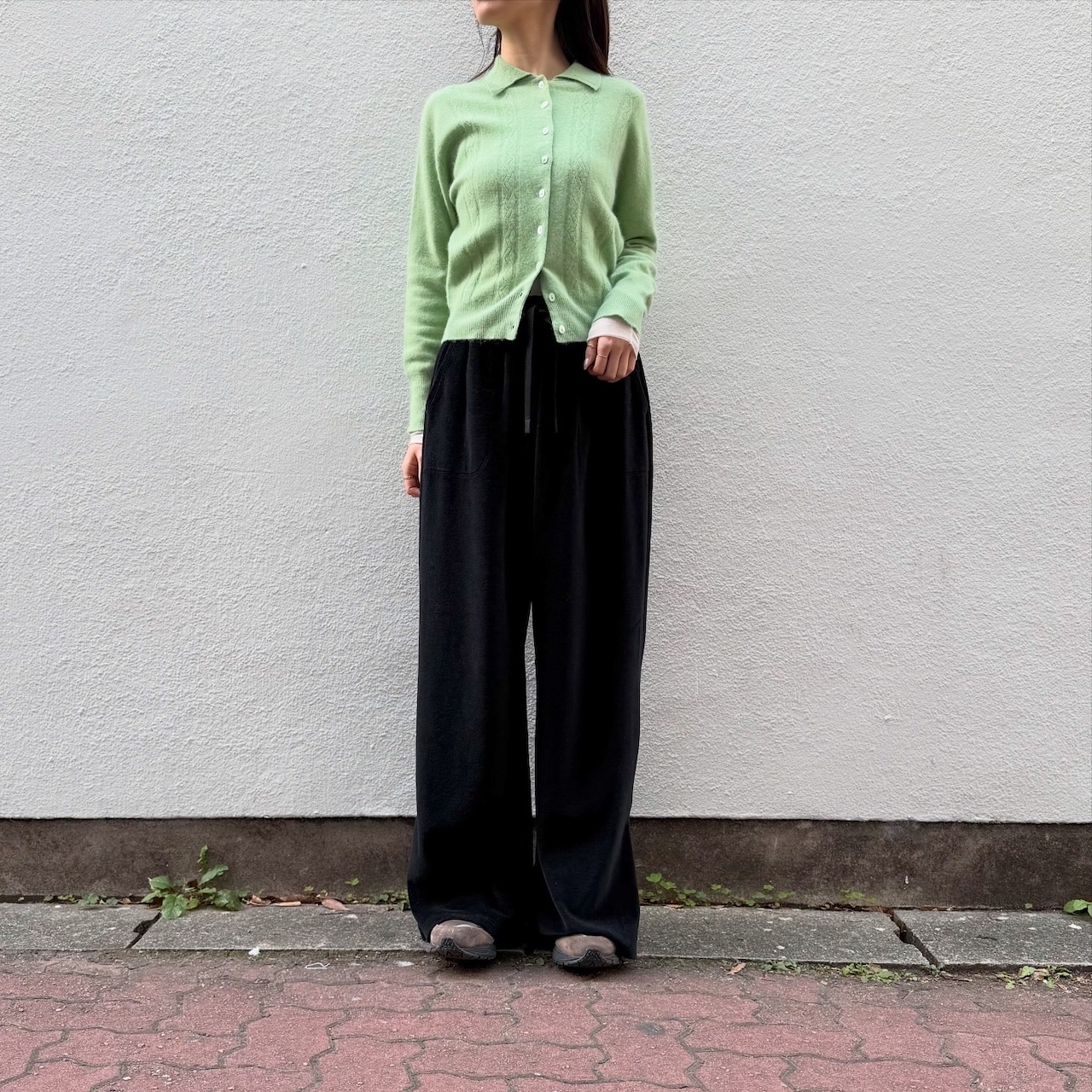 程よくワイドで裾のスリットがデザイン性のある一着です。