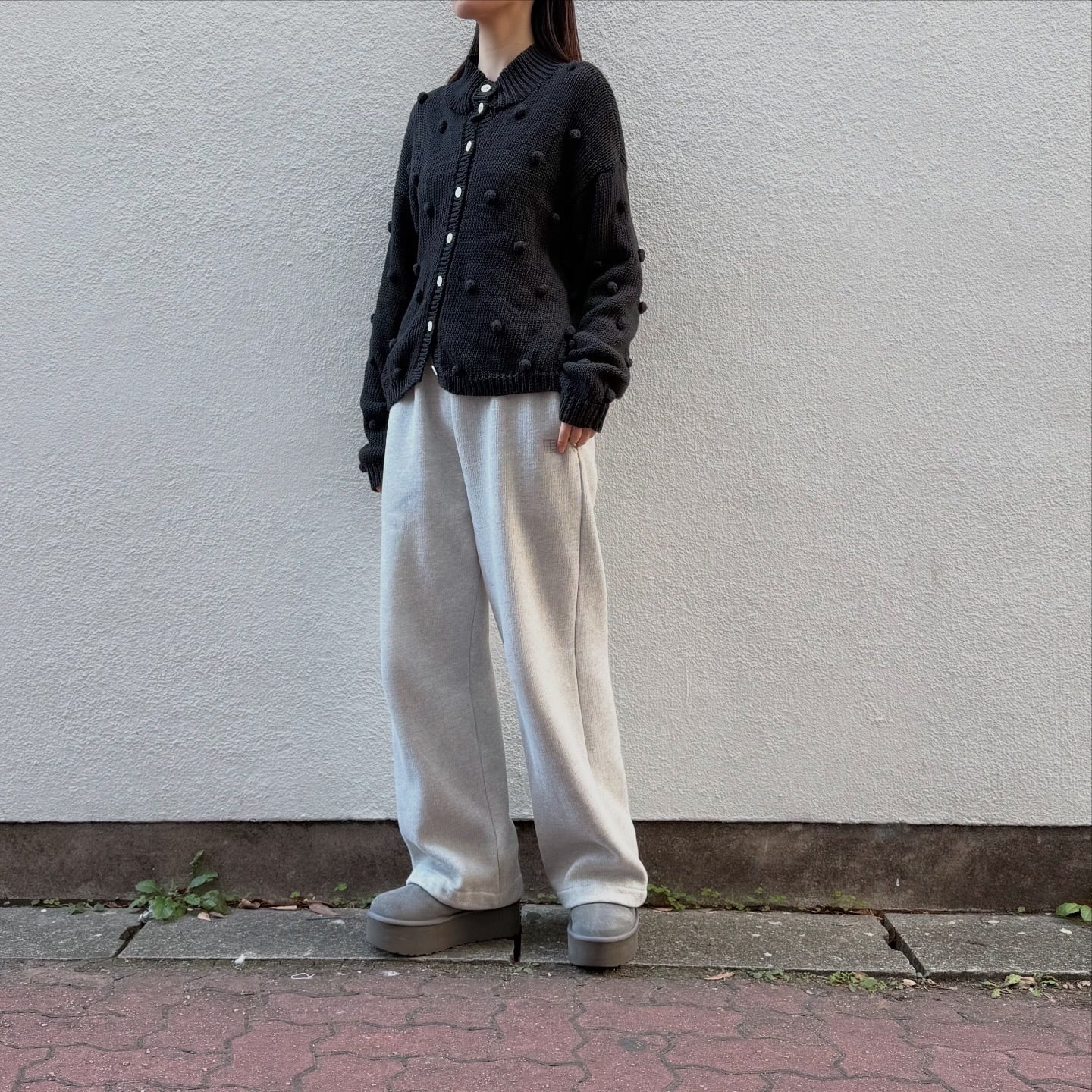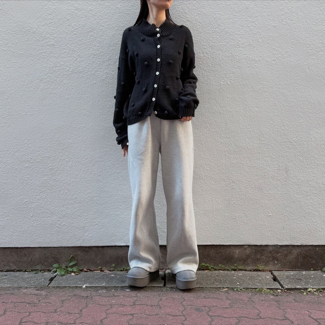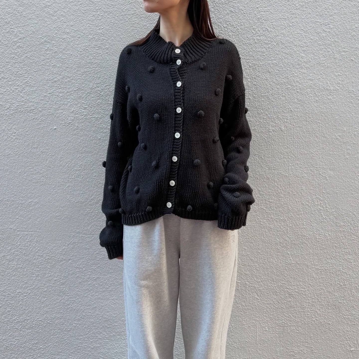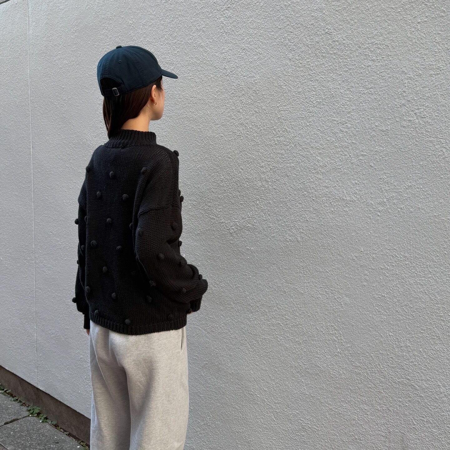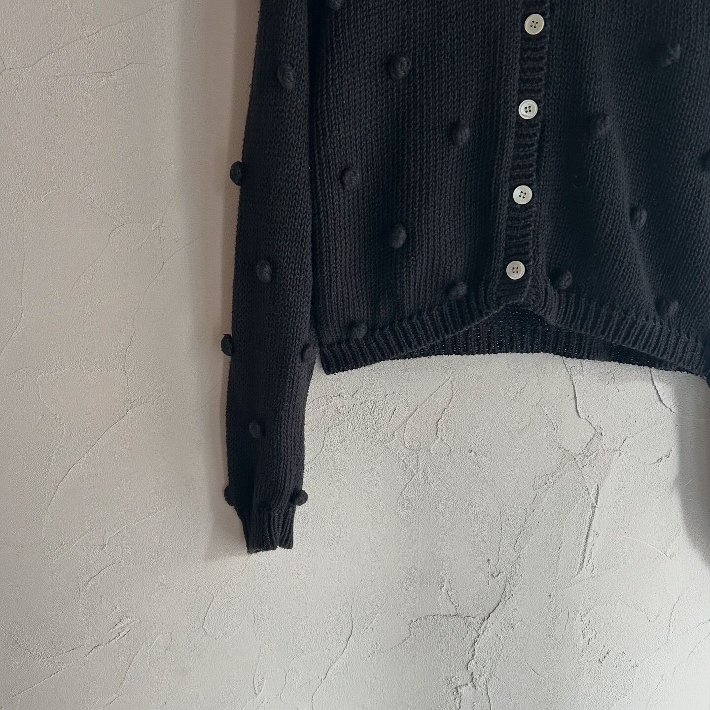 ぽこぽこのドットがキュートなニットカーディガンです。