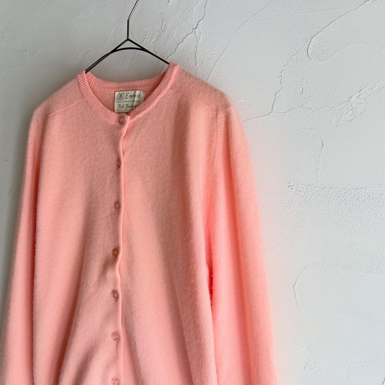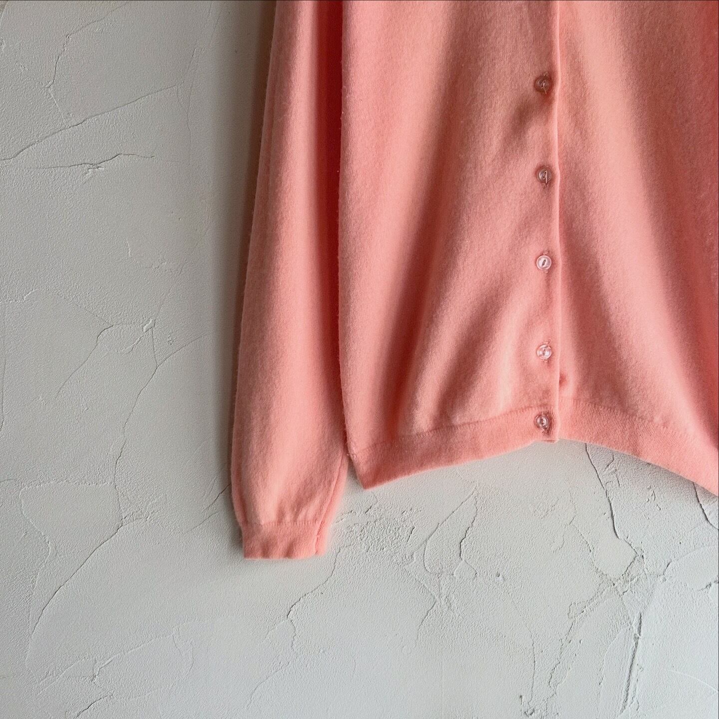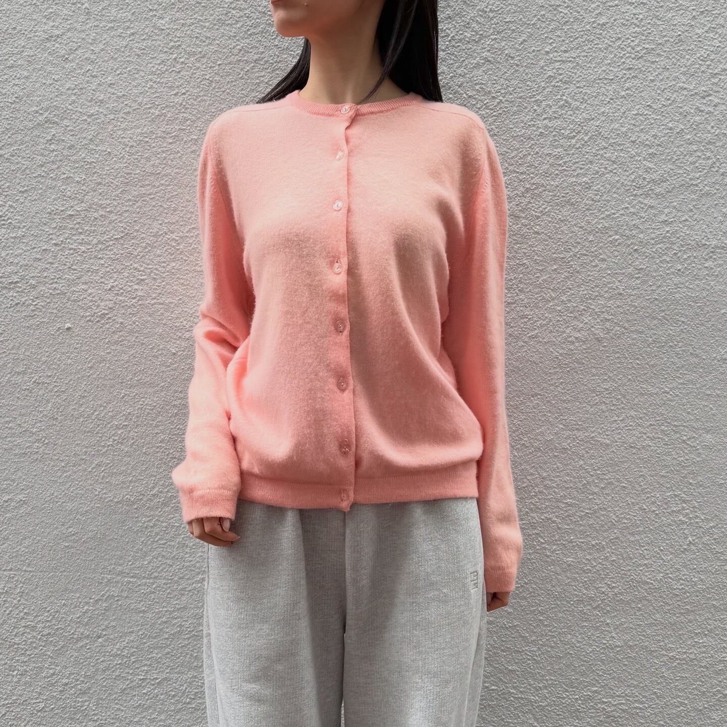 春っぽいパステルピンクのカシミヤニットカーディガンです。