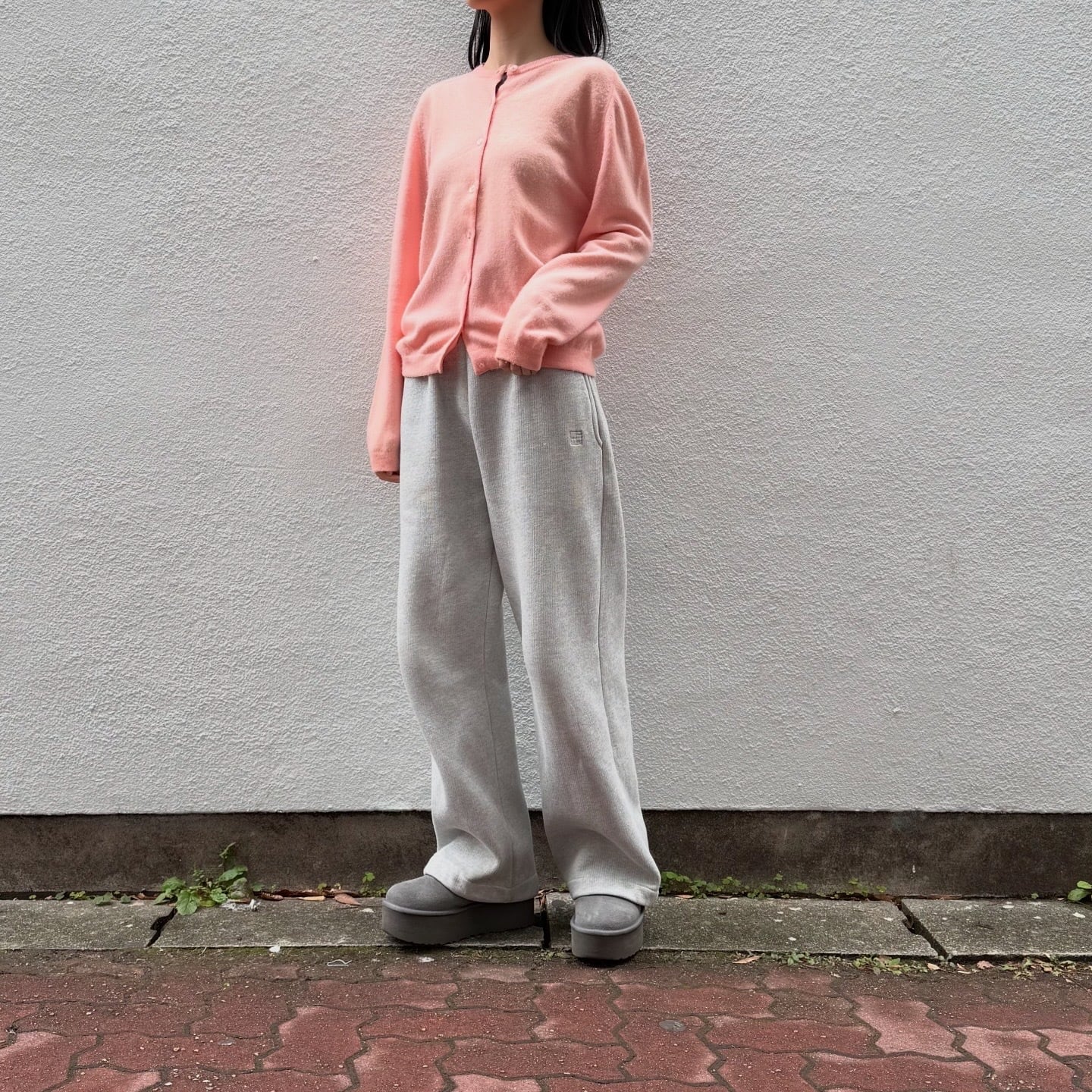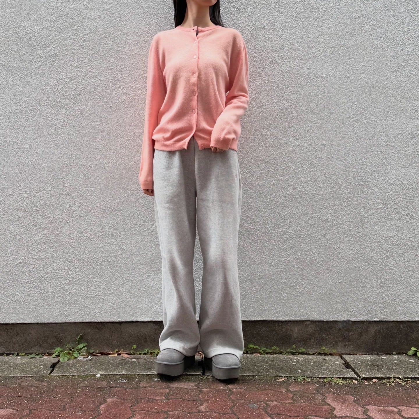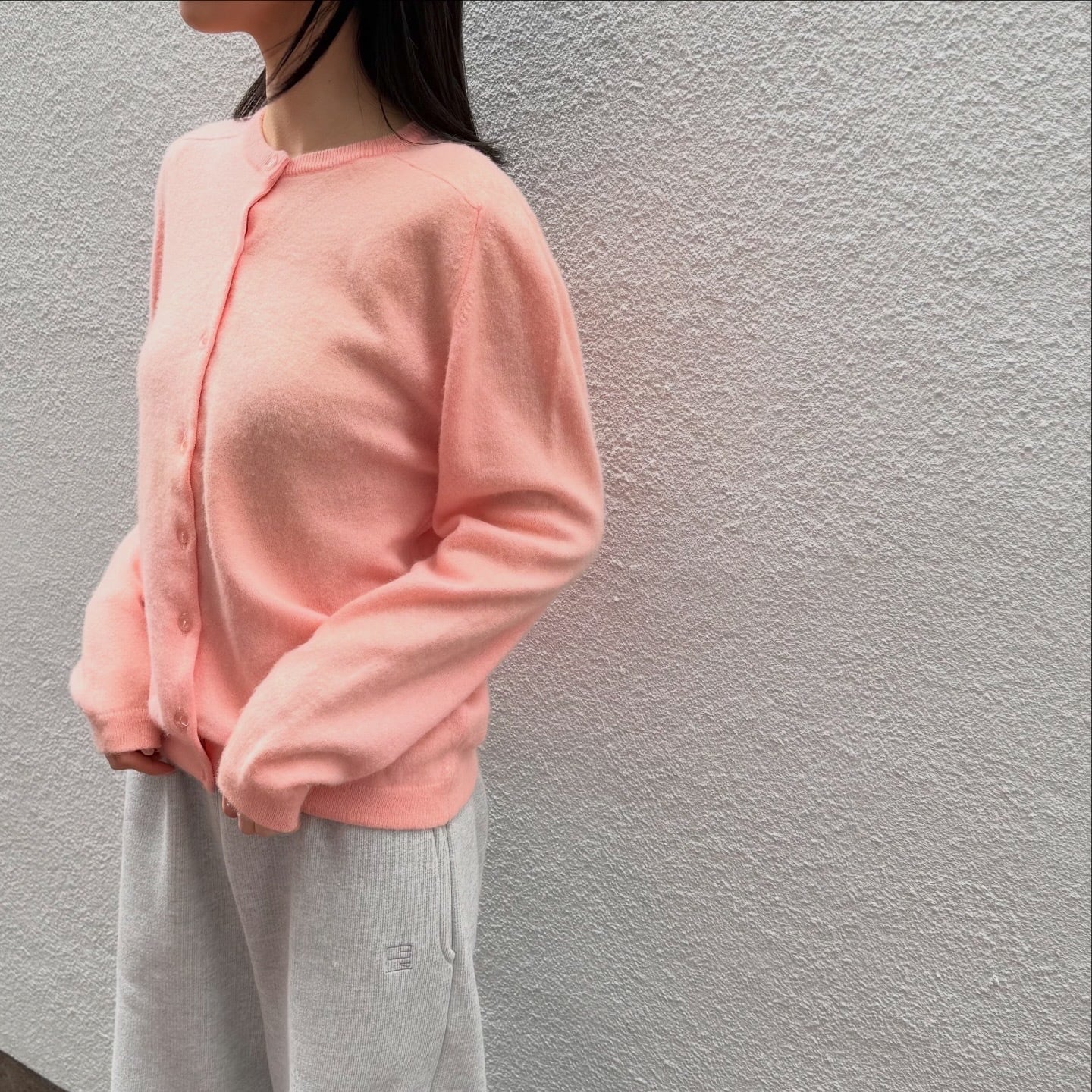 春っぽいパステルピンクのカシミヤニットカーディガンです。