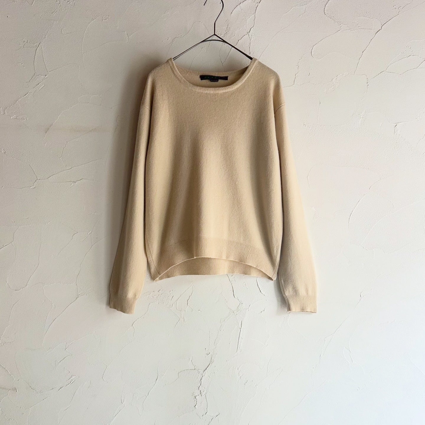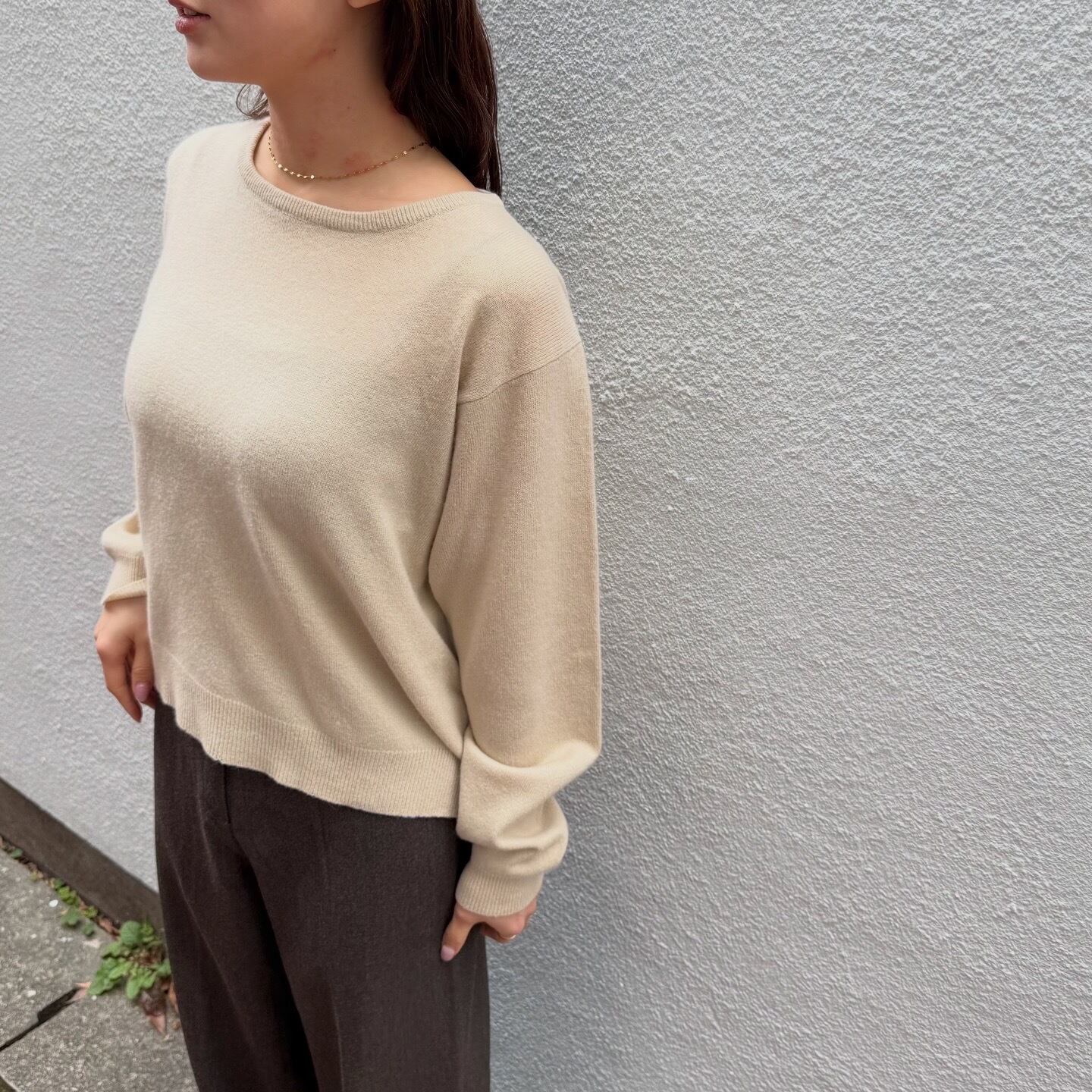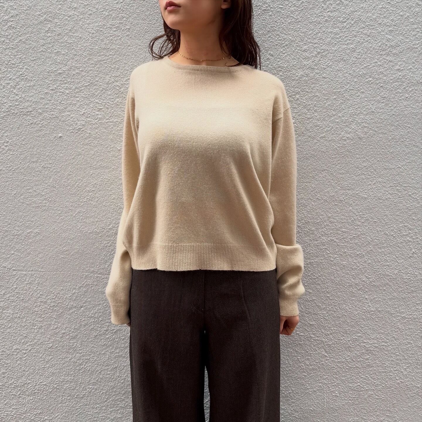 柔らかいベージュが春っぽい100%カシミヤのニットです。