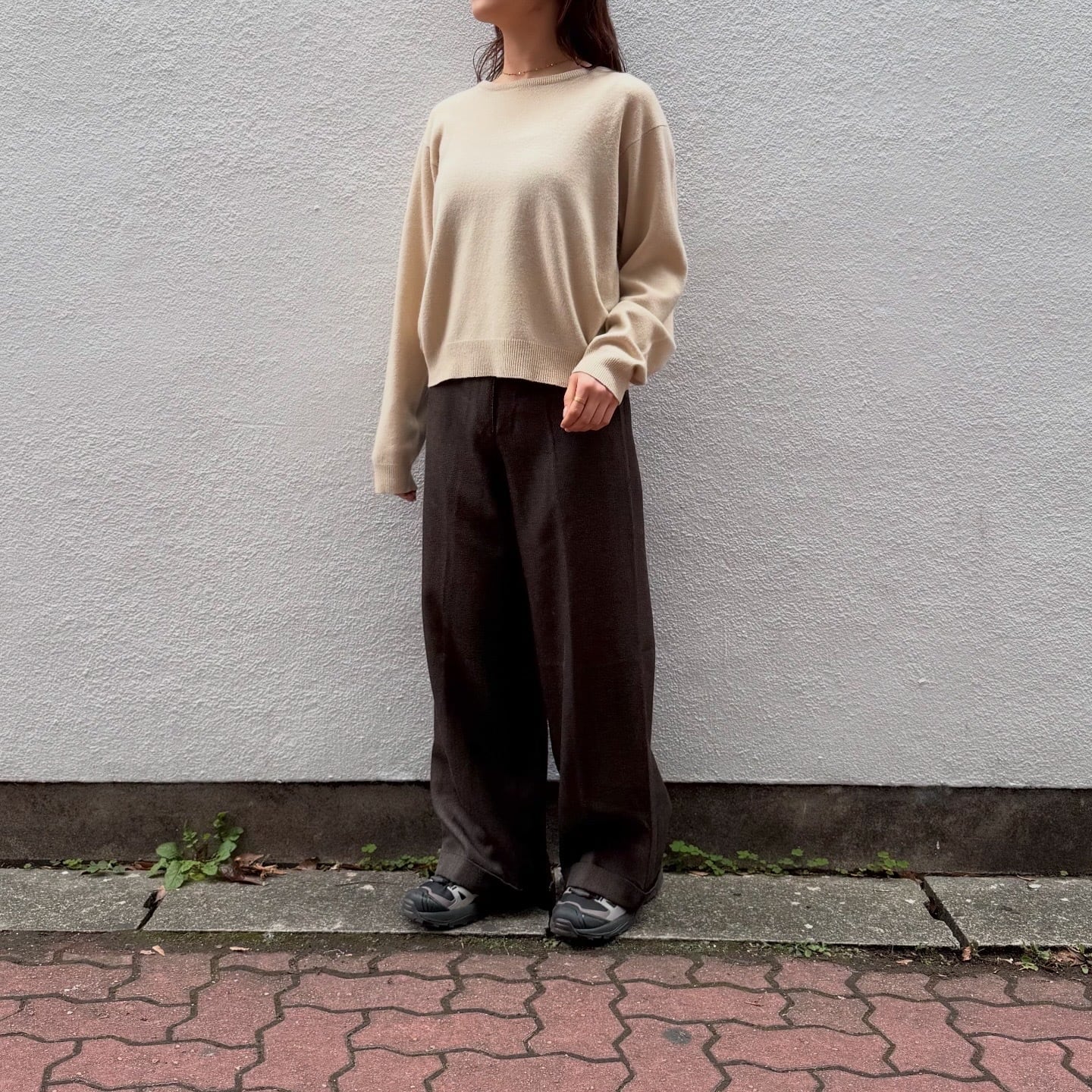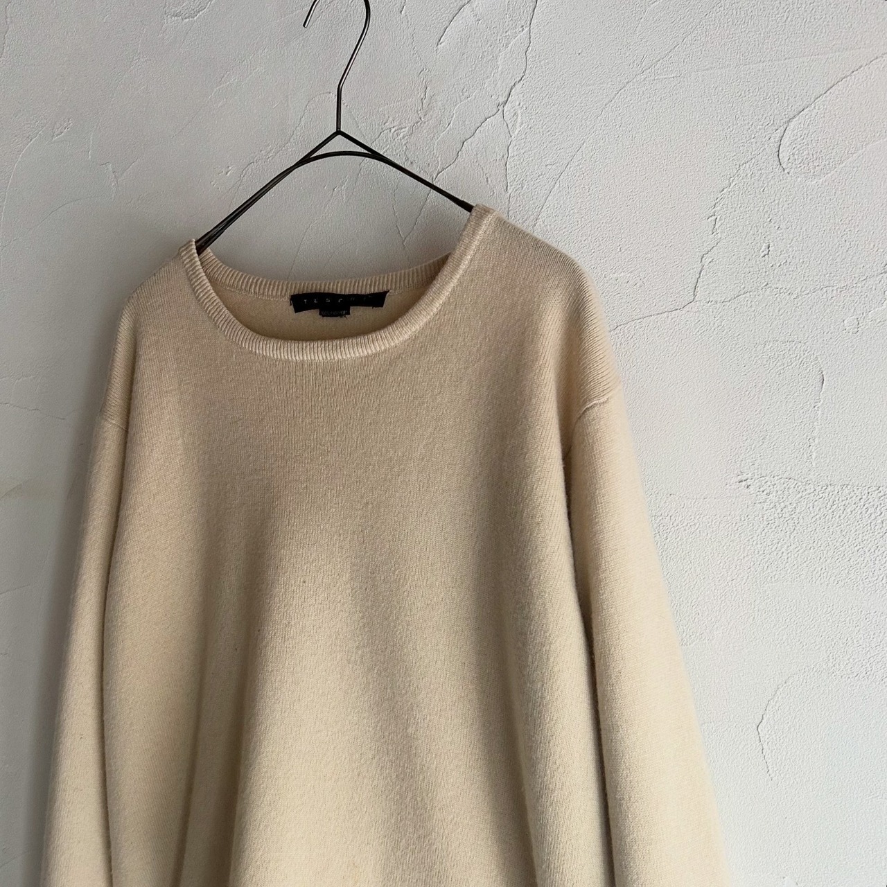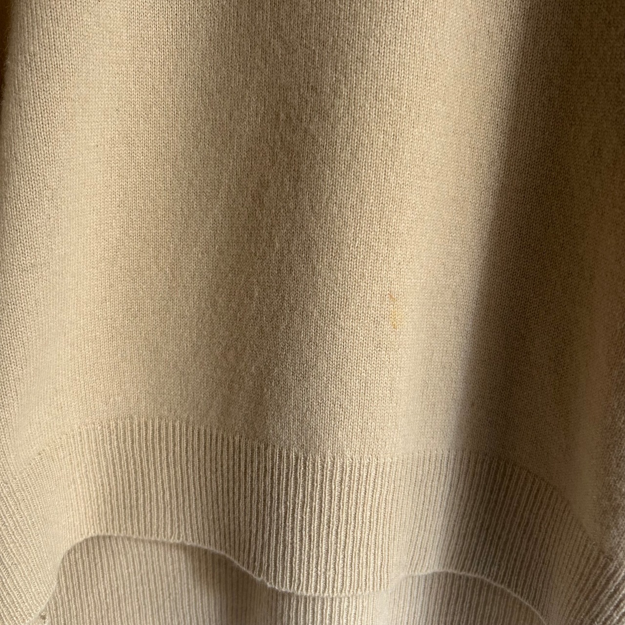 柔らかいベージュが春っぽい100%カシミヤのニットです。