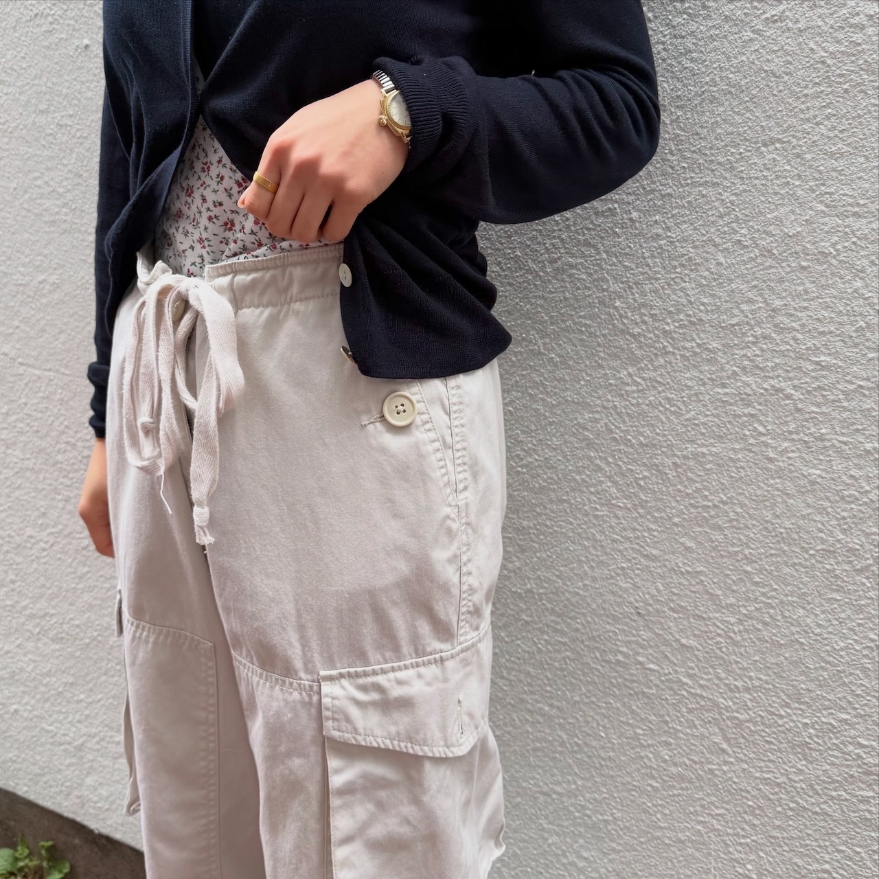 張りのある生地でガシガシお召しいただけるカーゴパンツです。