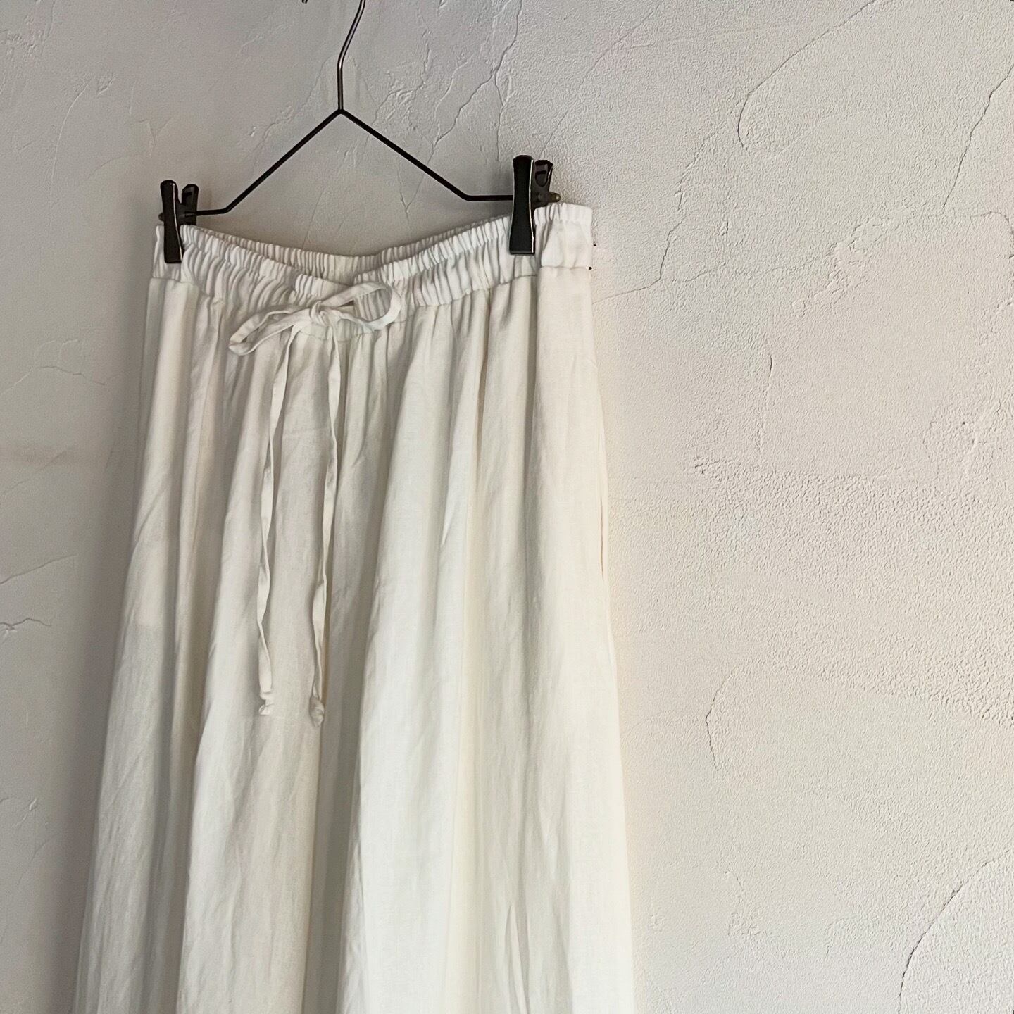 ワイドなシルエットが存在感のあるリネンパンツです。