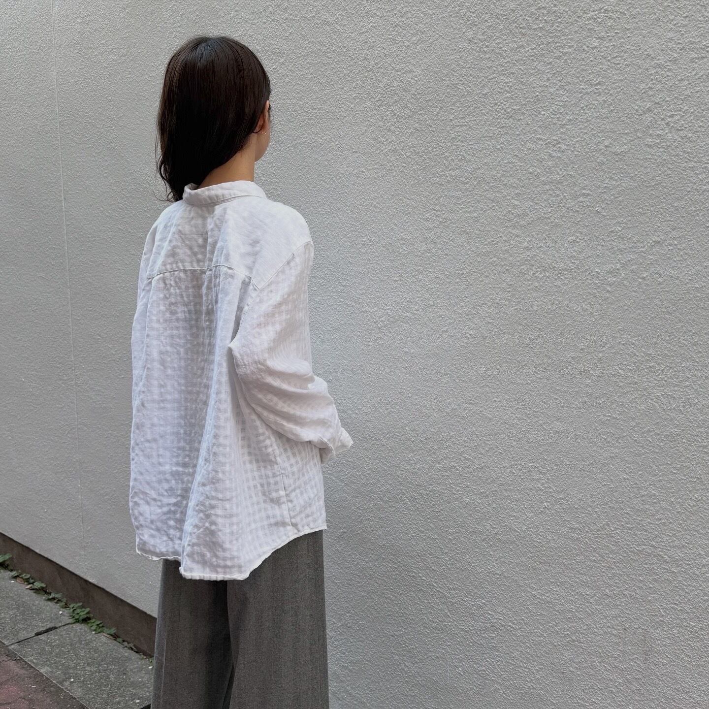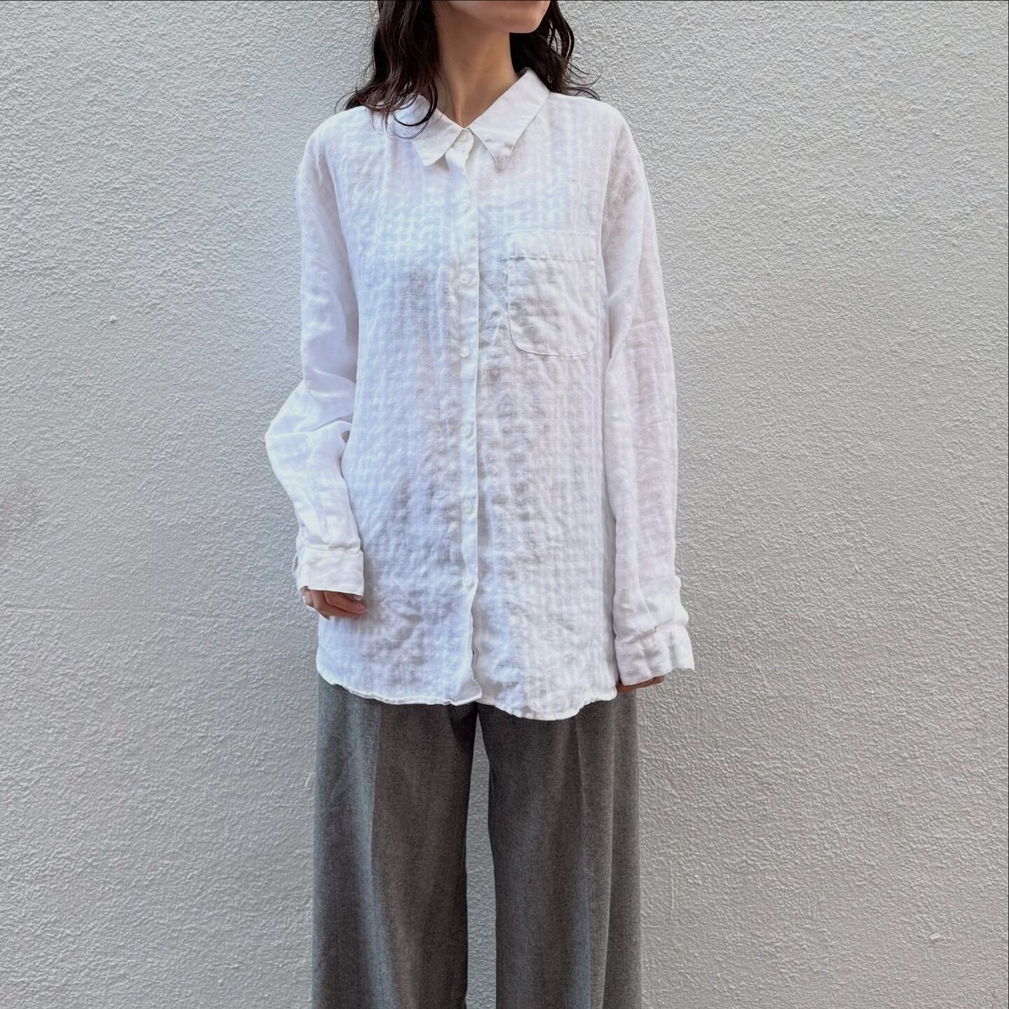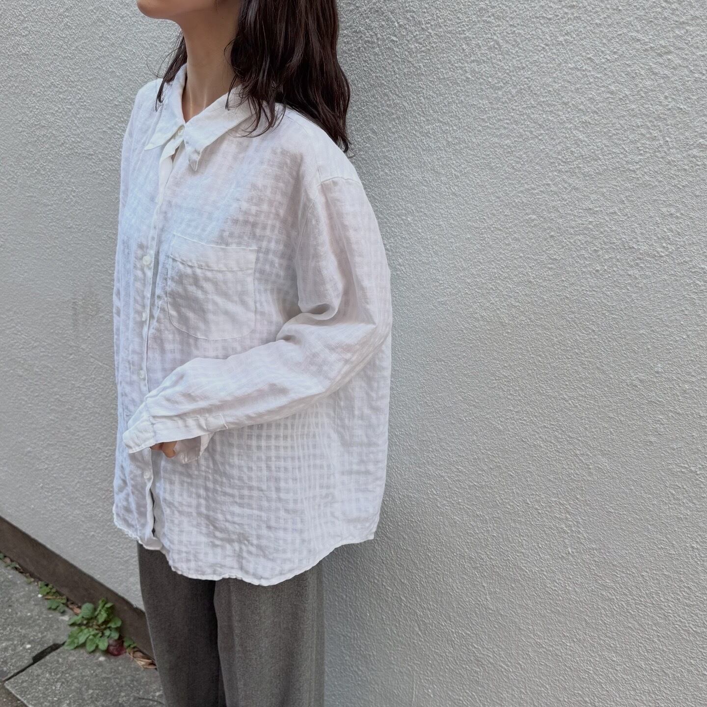100%リネンのドライな軽い着心地のシャツです。よく見るとチェック柄なのがポイントです。