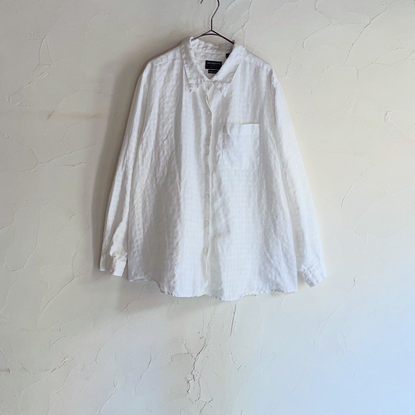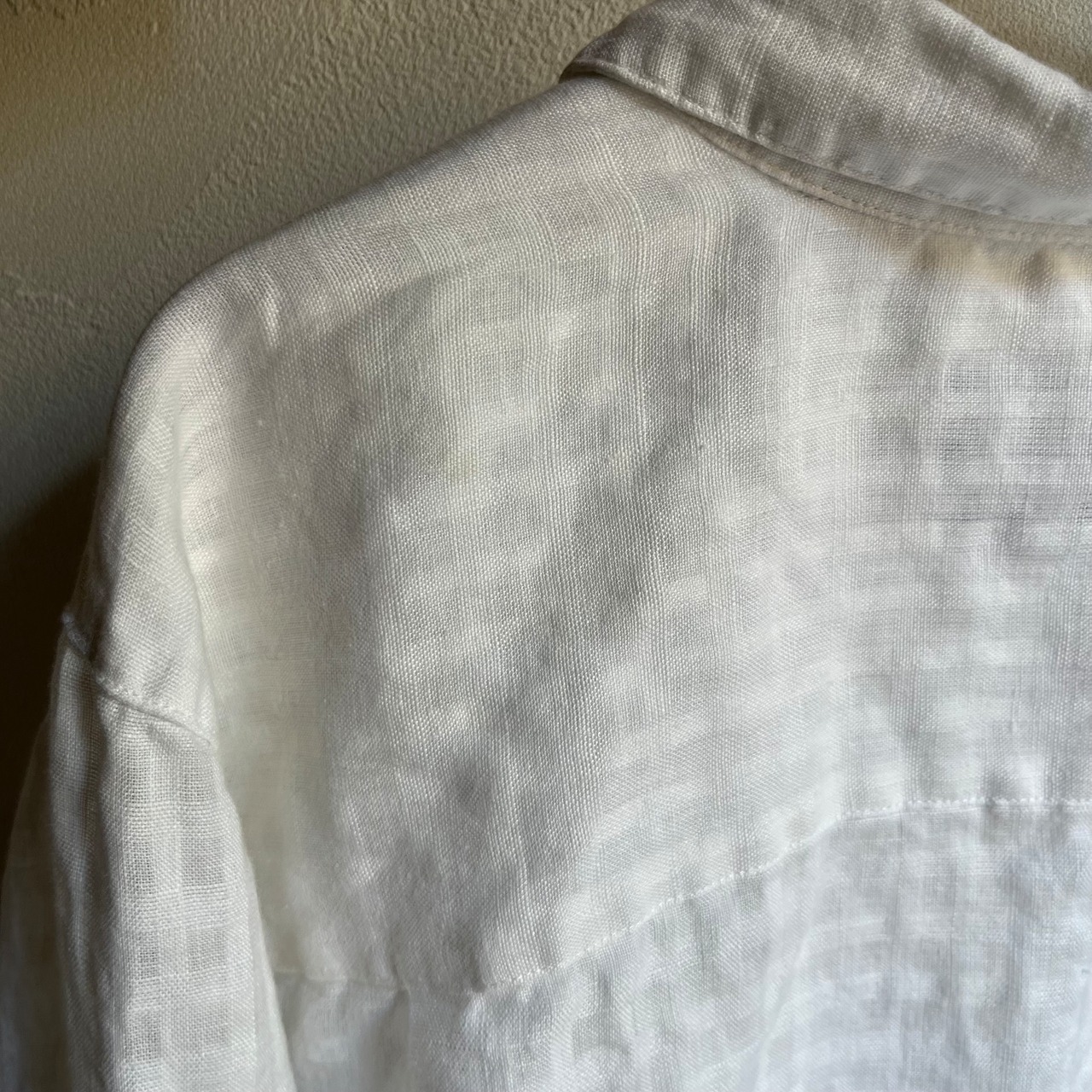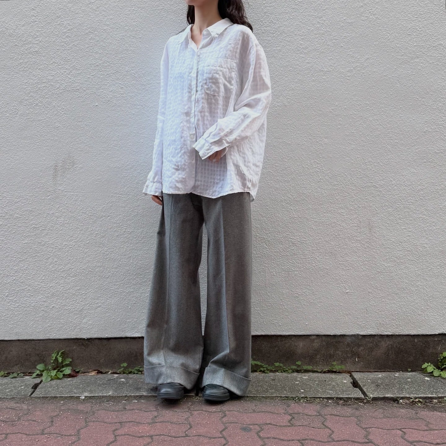 100%リネンのドライな軽い着心地のシャツです。よく見るとチェック柄なのがポイントです。