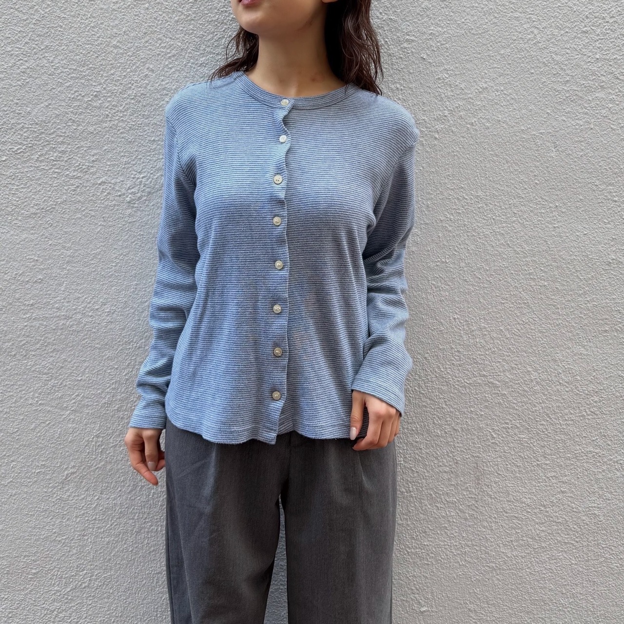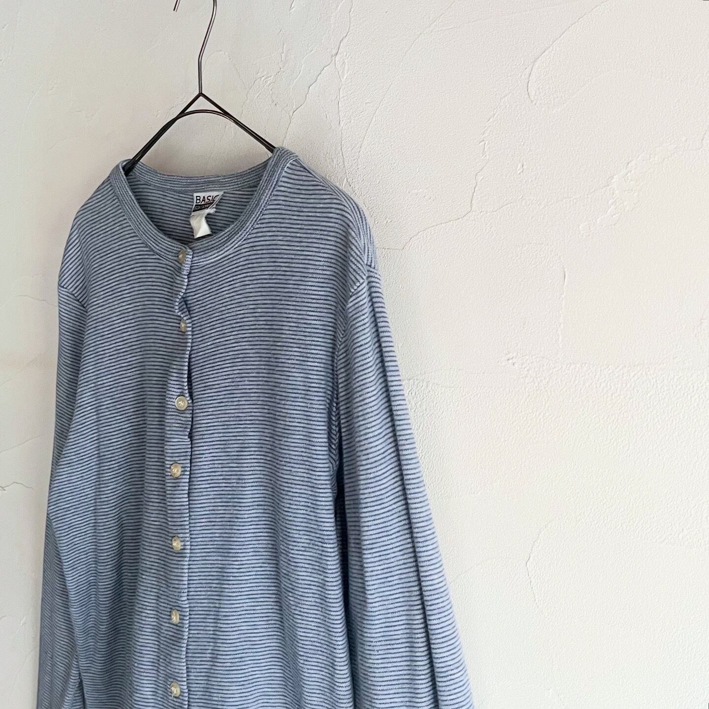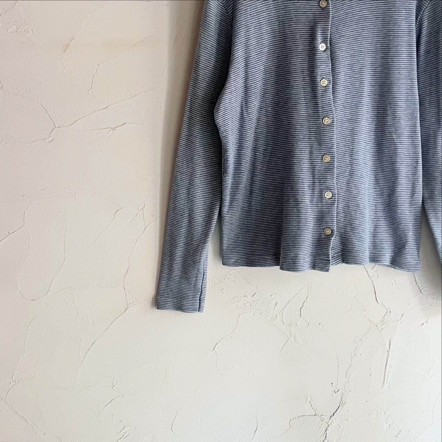 細めのボーダーや配色が落ち着いた印象のカーディガンです。