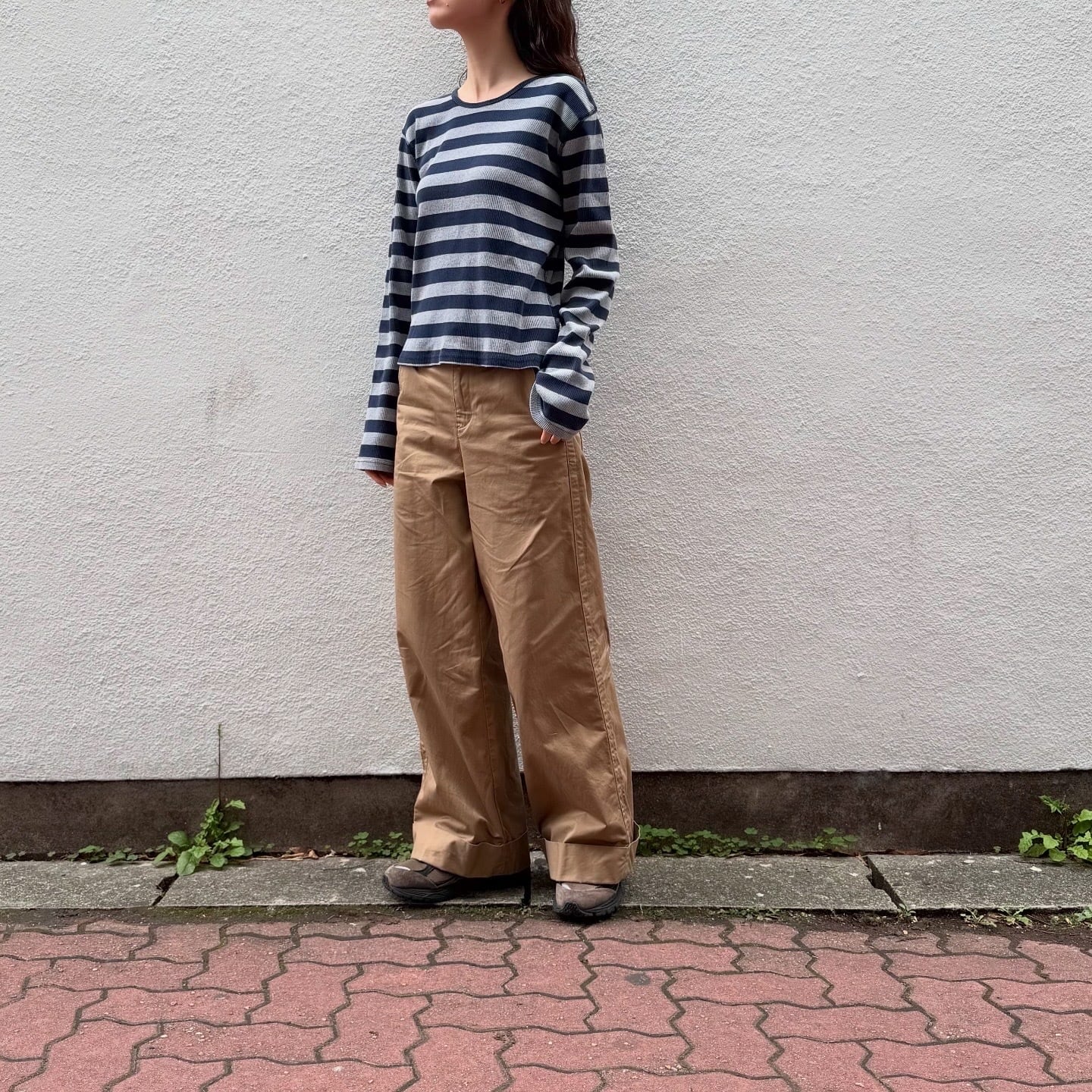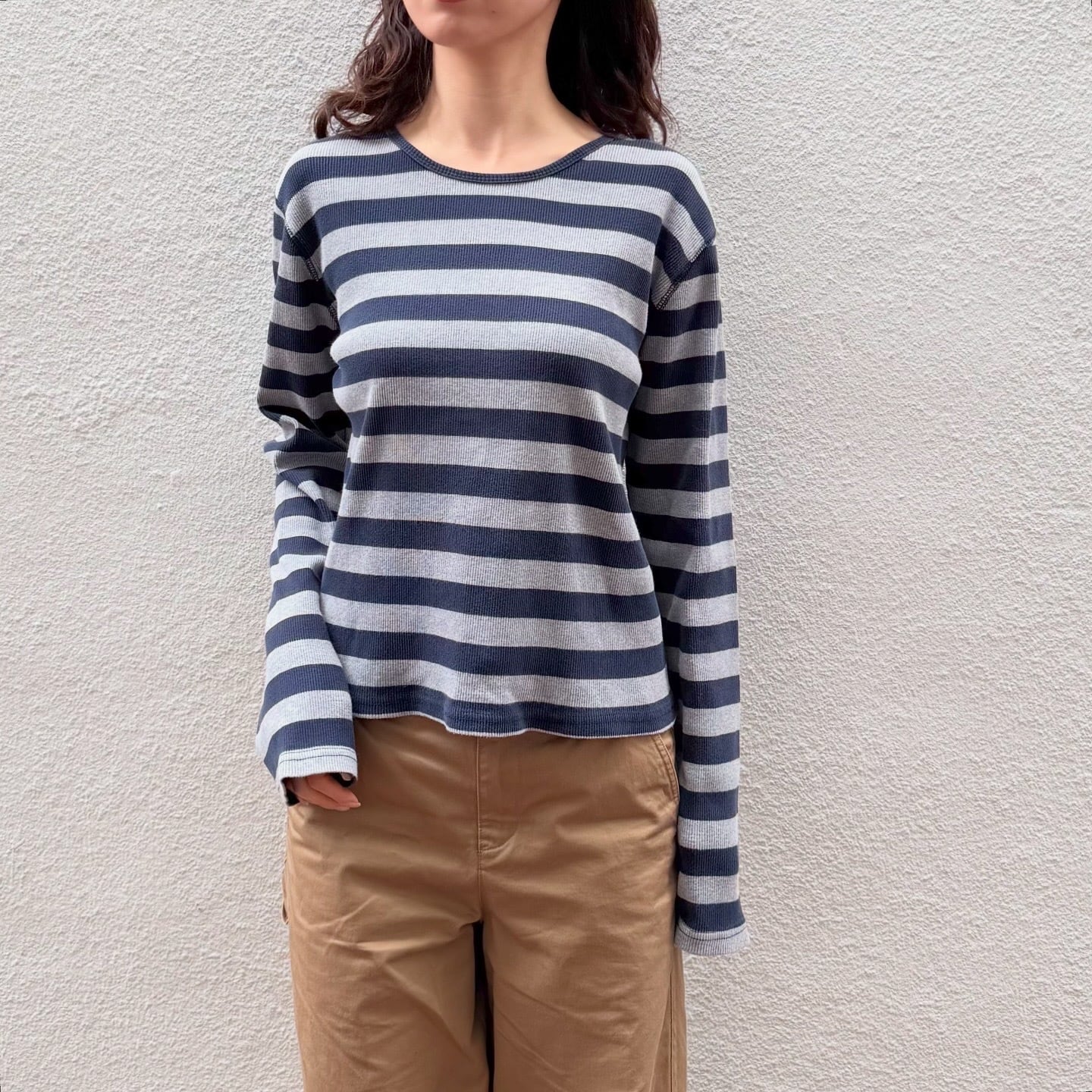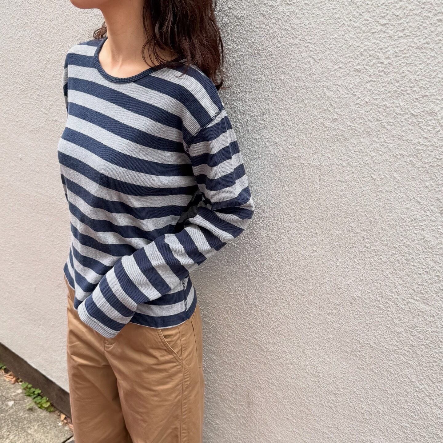 配色の可愛い太めのボーダーロンTです。