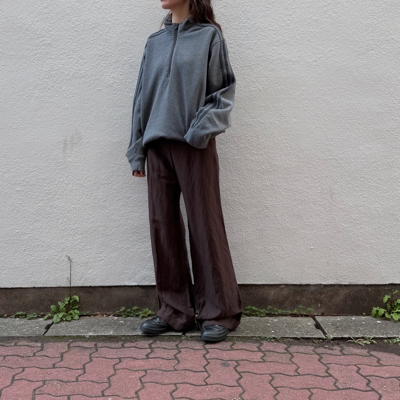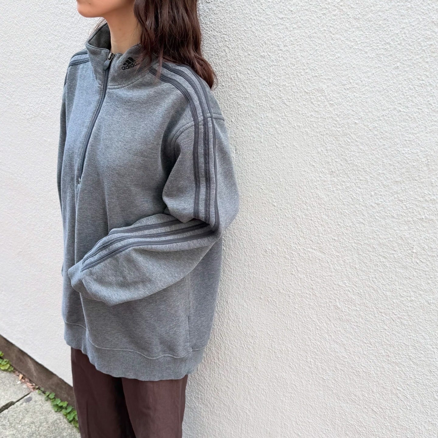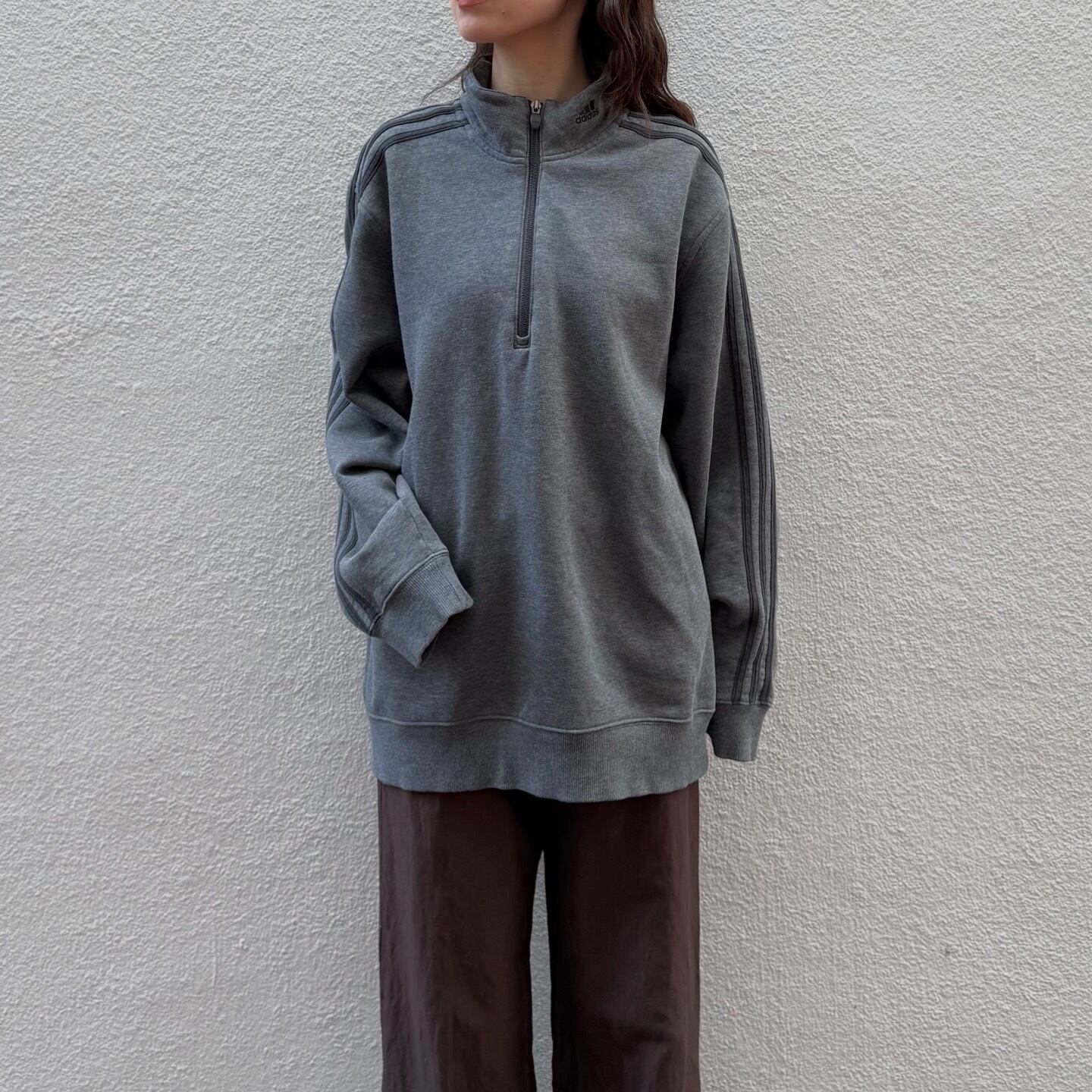 adidasの刺繍がワンポイントのフリーストップスです。裏起毛でほんのり暖かい着心地です。
