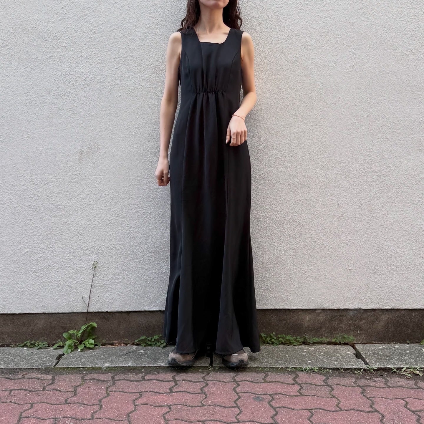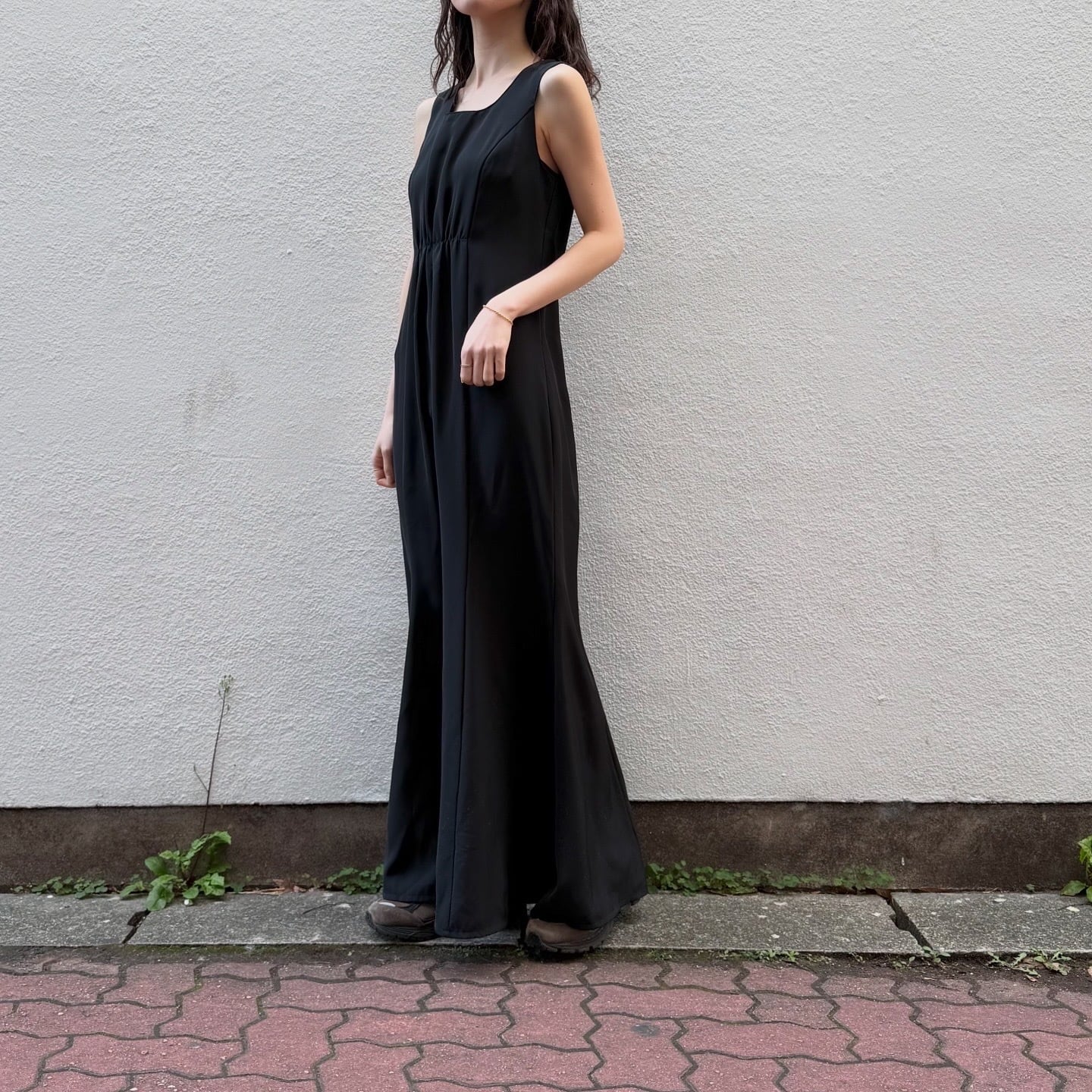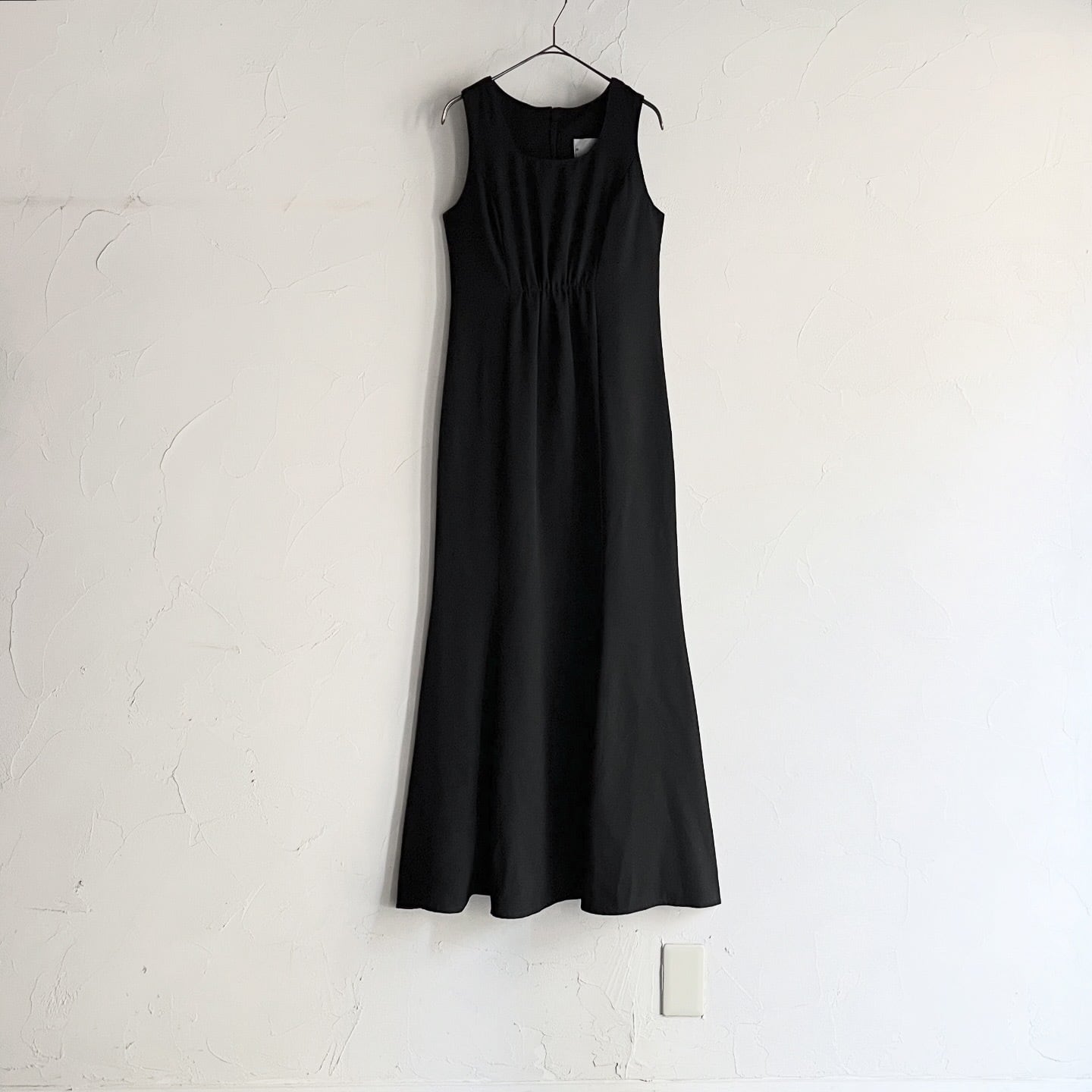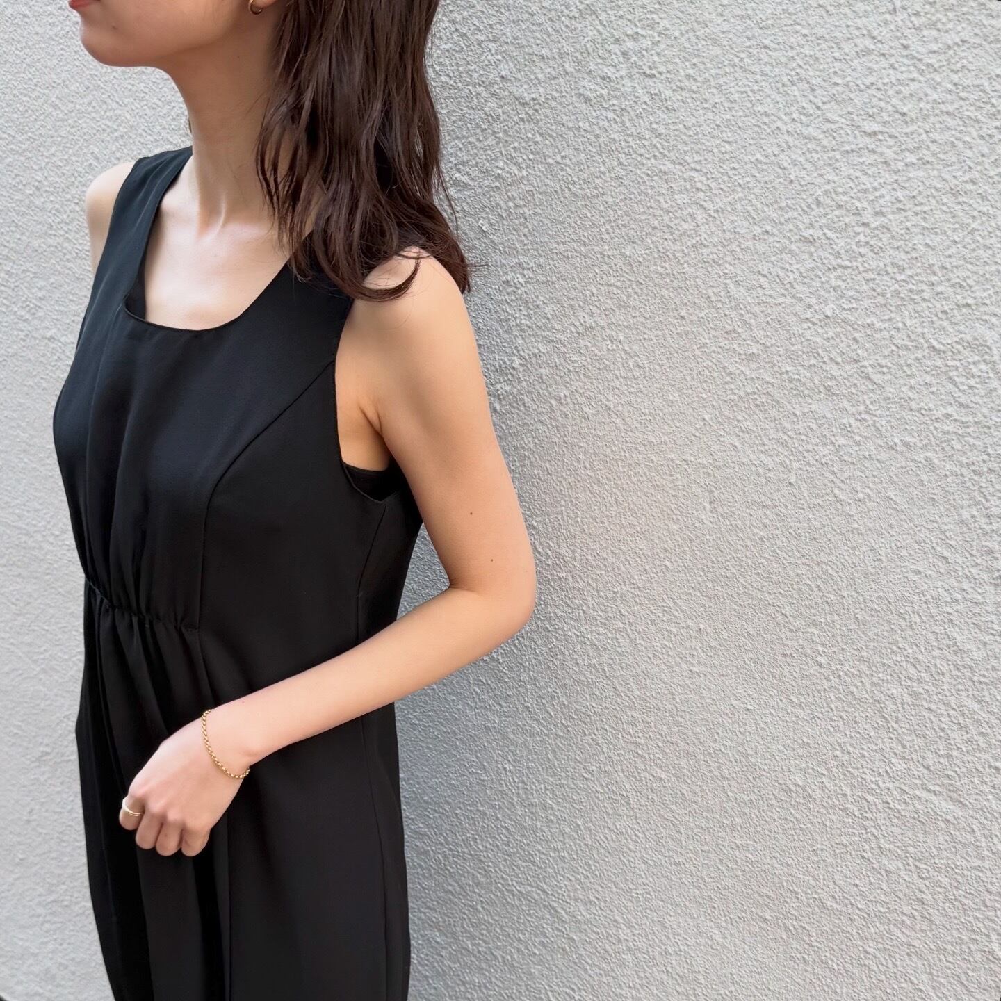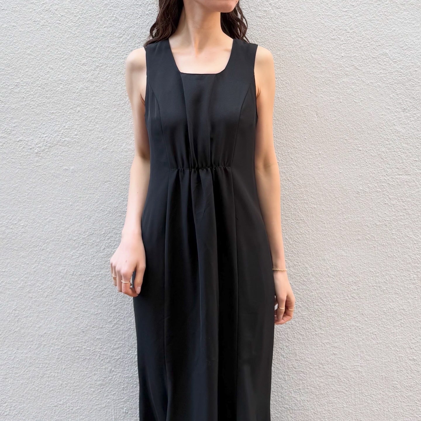 切り返しにギャザー、ほんのりマーメイドシルエットとメリハリがあり美しいシルエットのワンピースです。