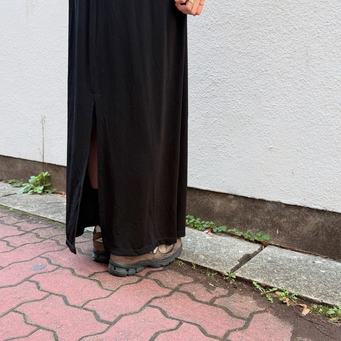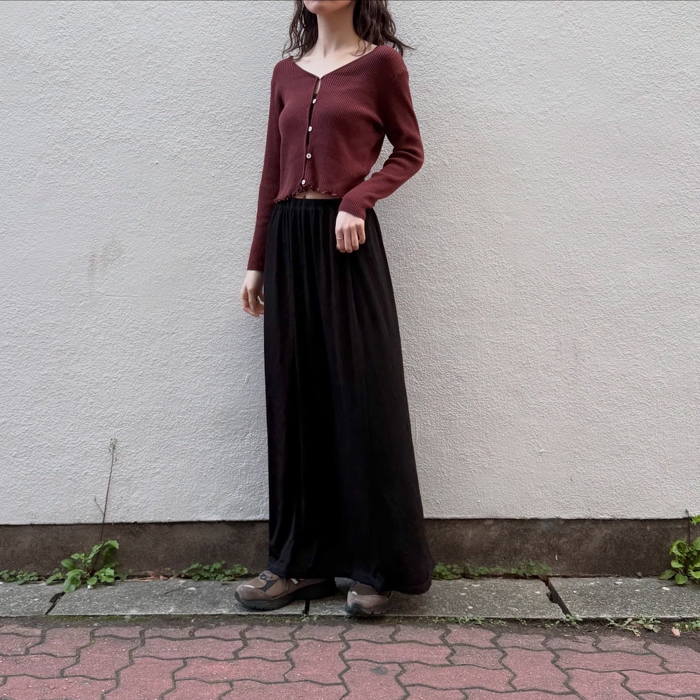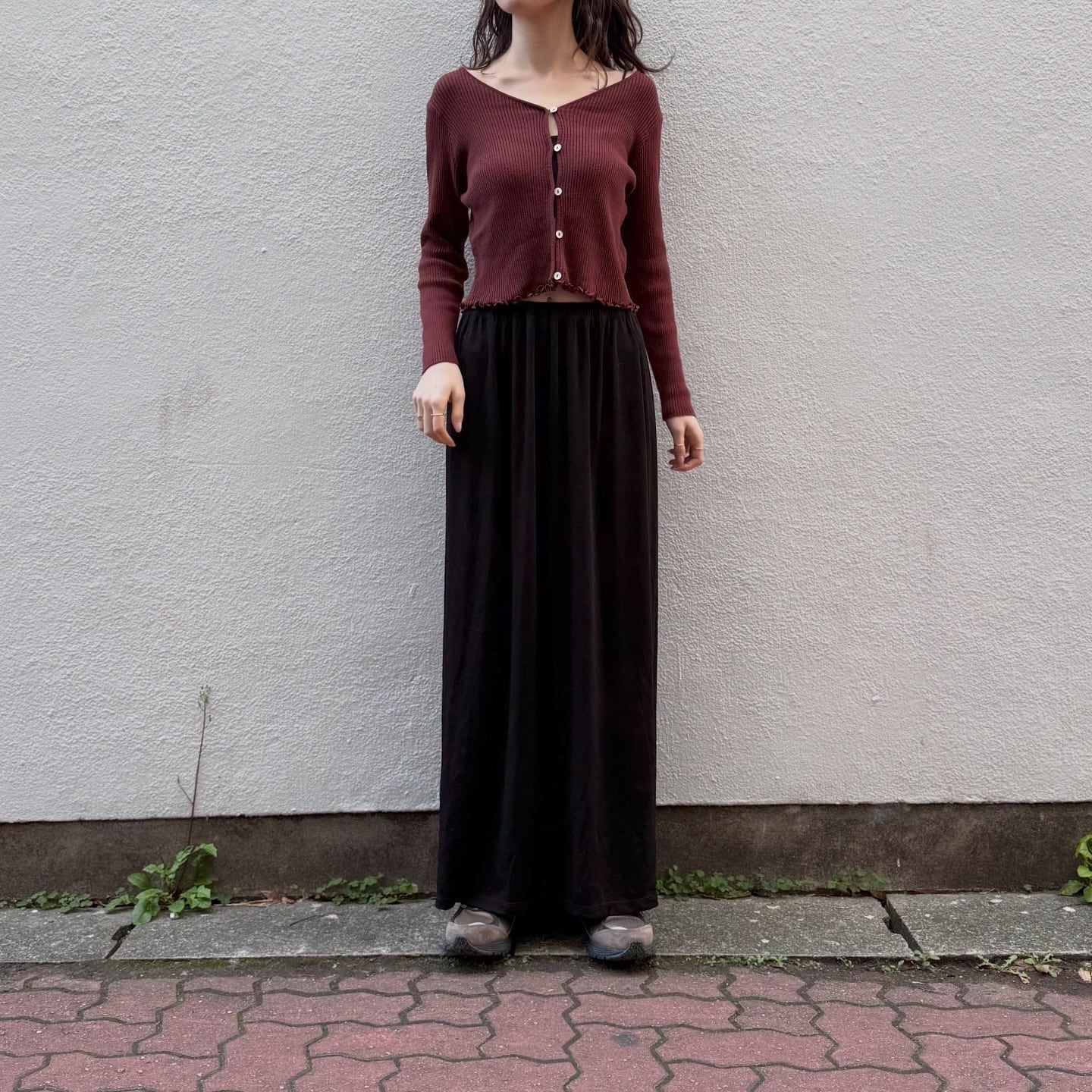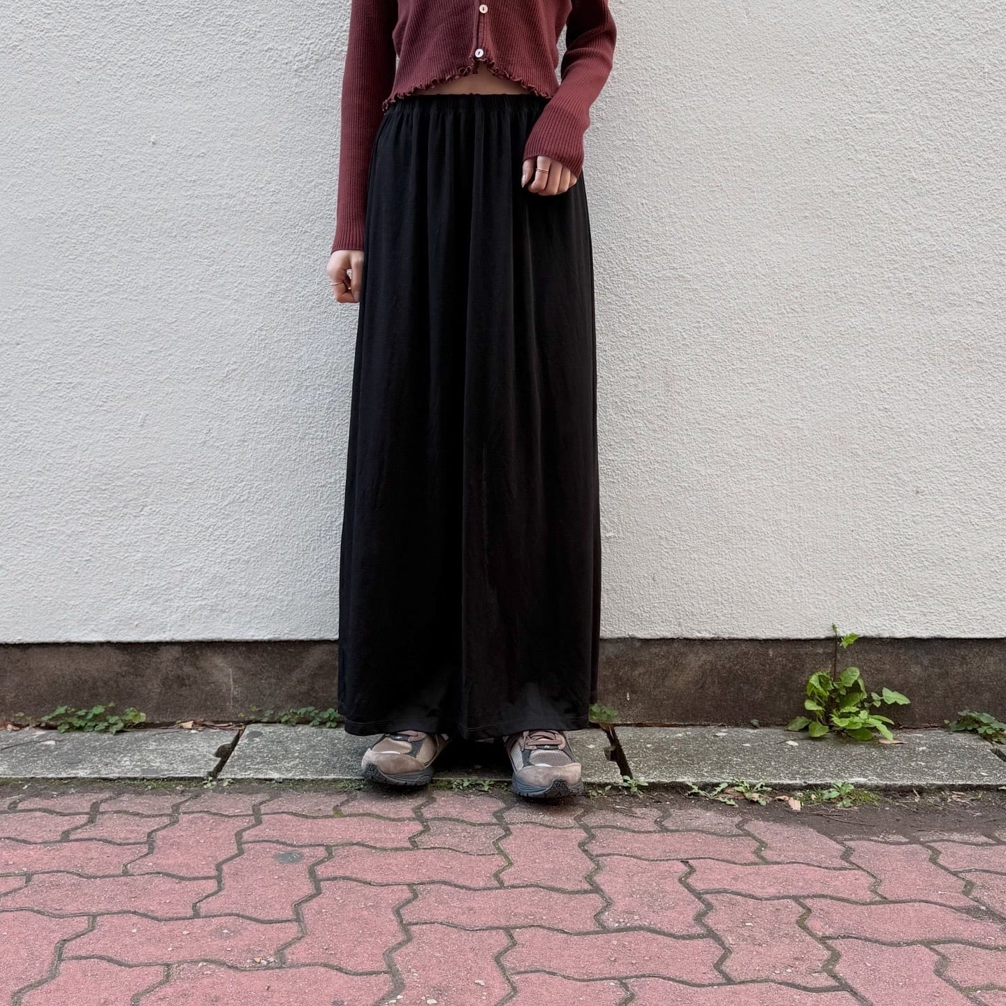 伸縮性のあるさらっとした生地感のスパンデックス混のスカートです。