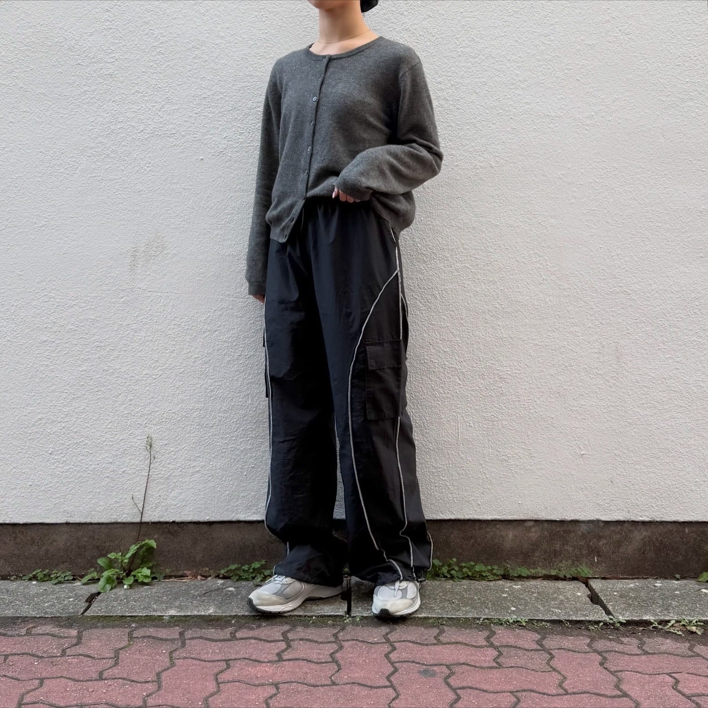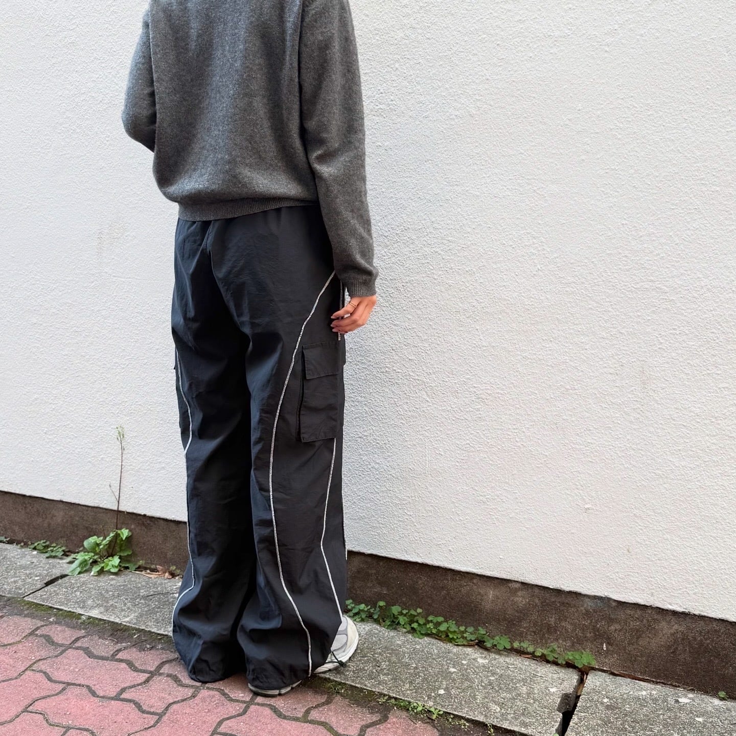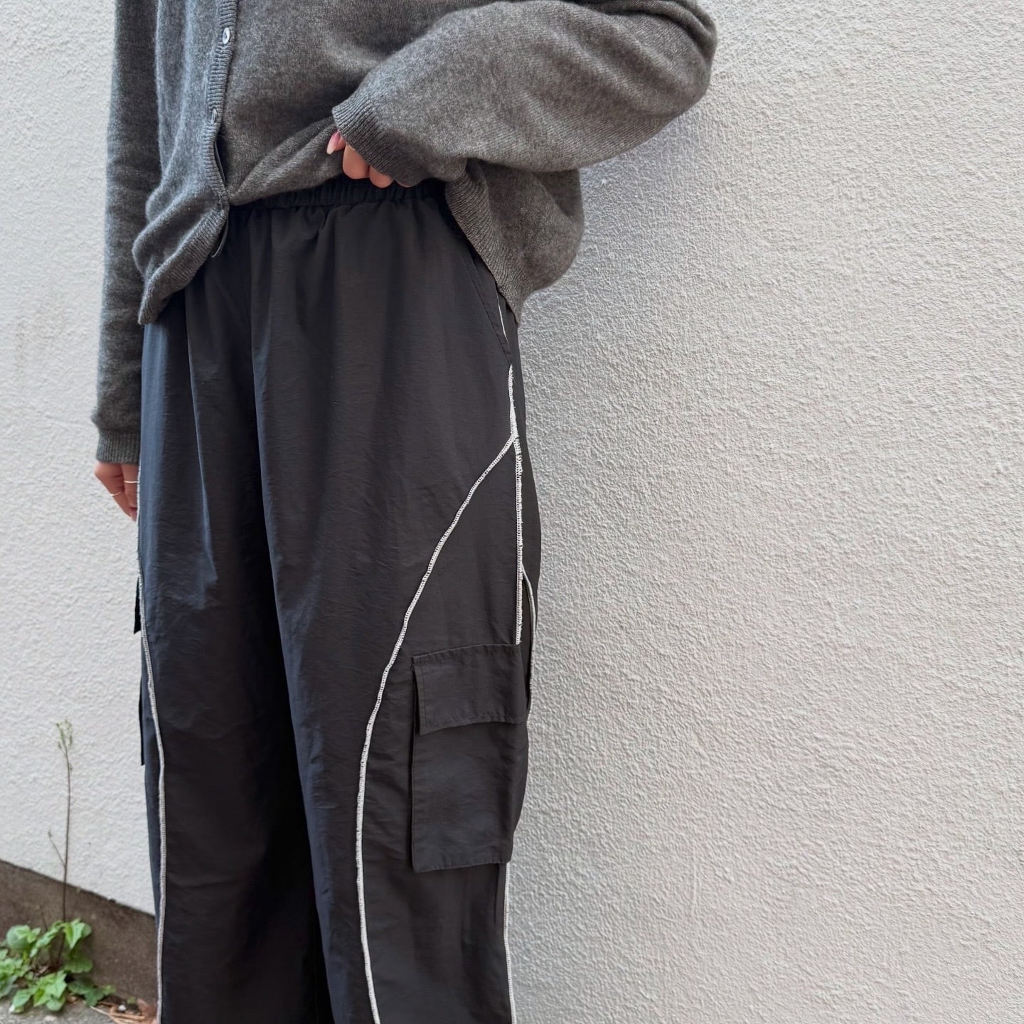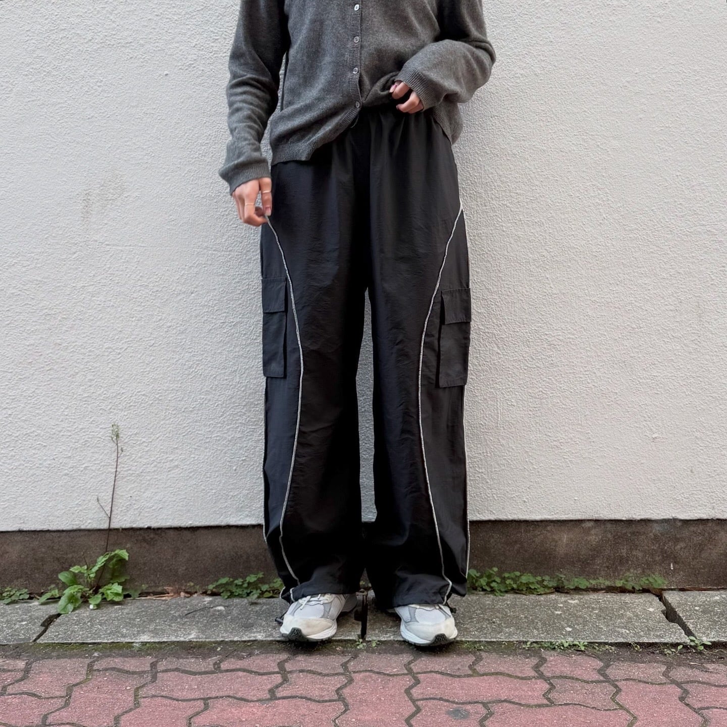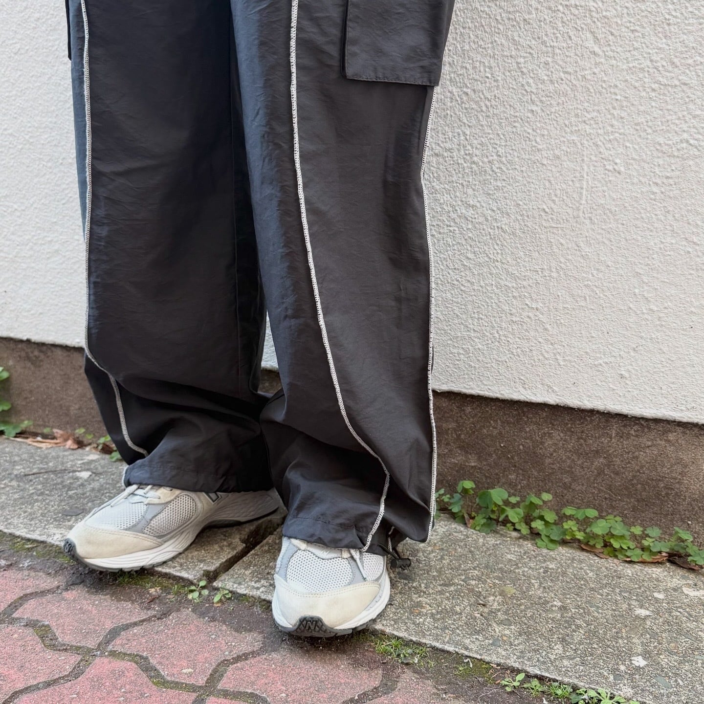 ステッチの入り方がお洒落なカーゴパンツです。シャカシャカとした軽い生地感です。