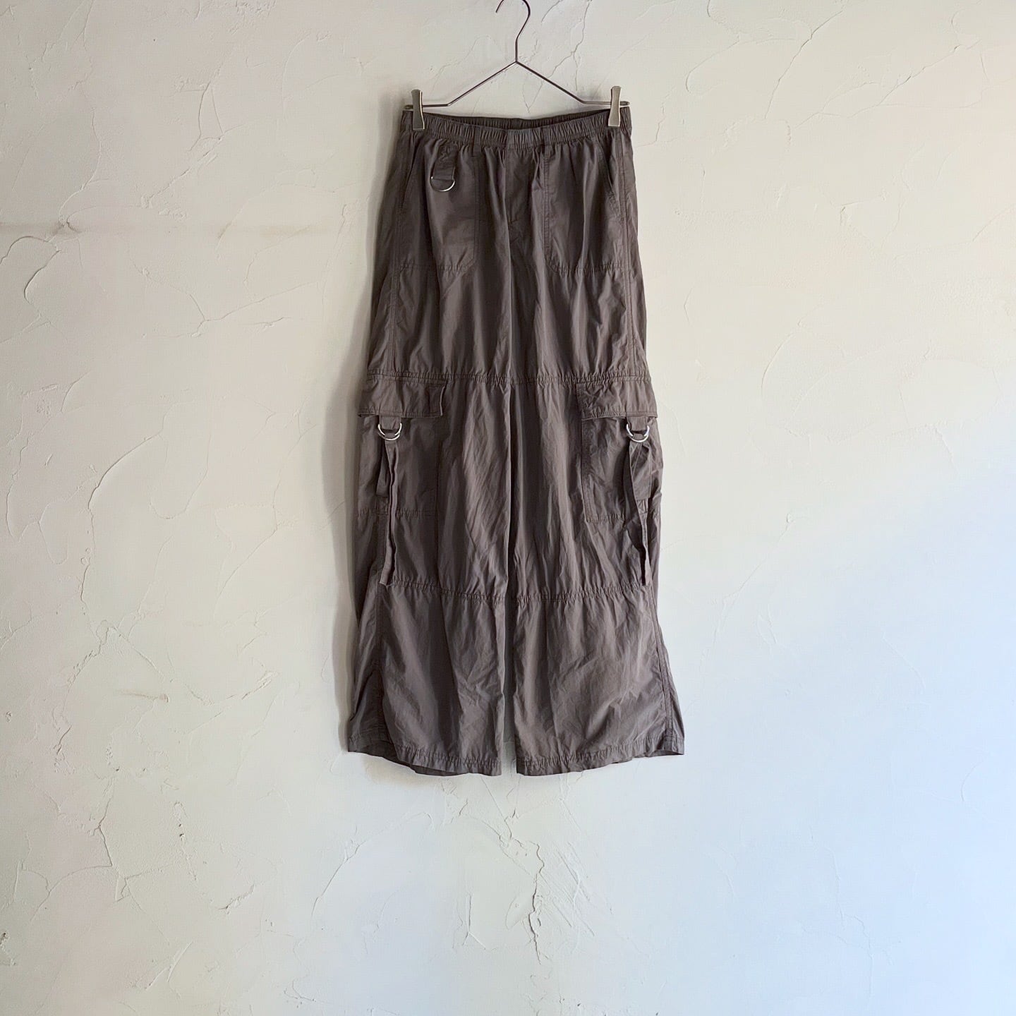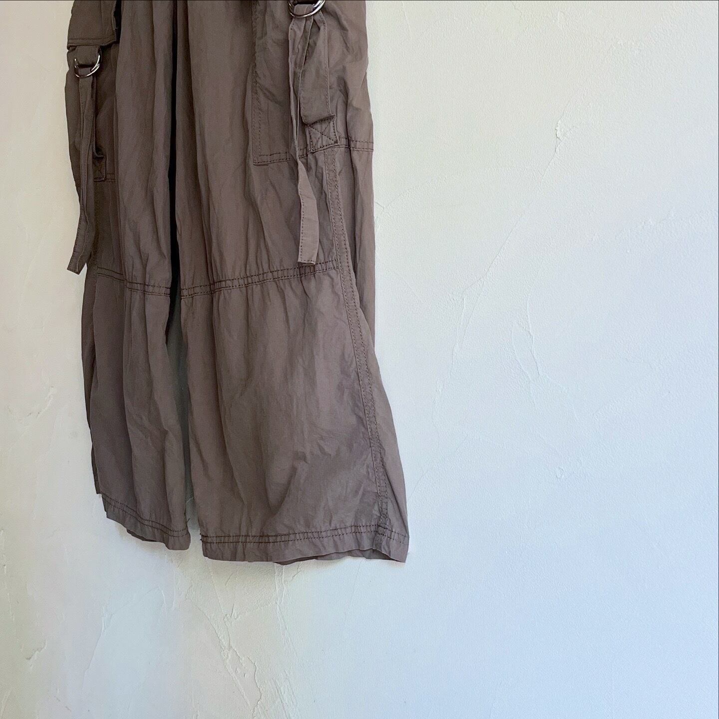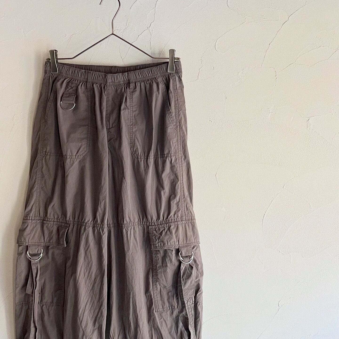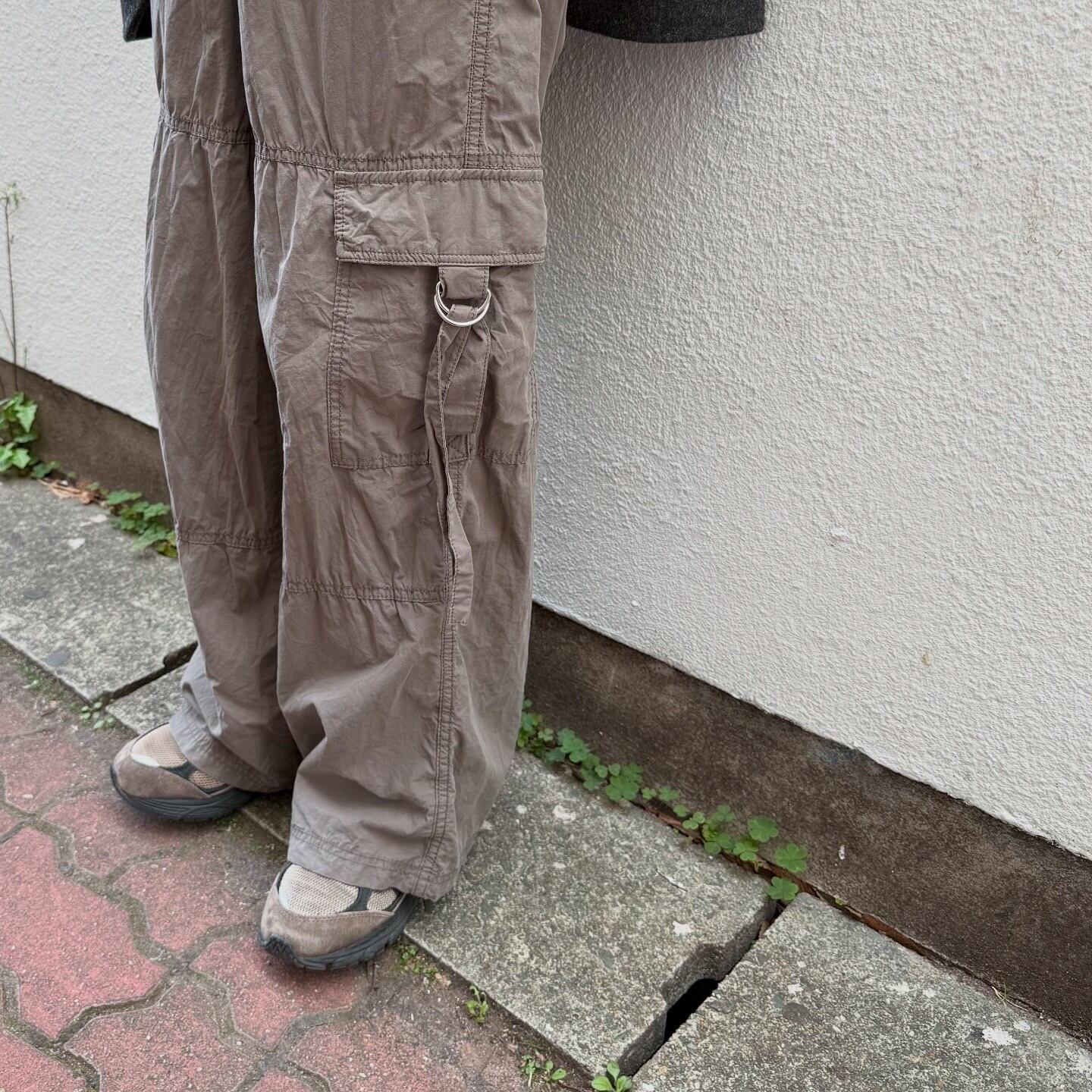 ブラウンにシルバーの金具が映えるカーゴパンツです。