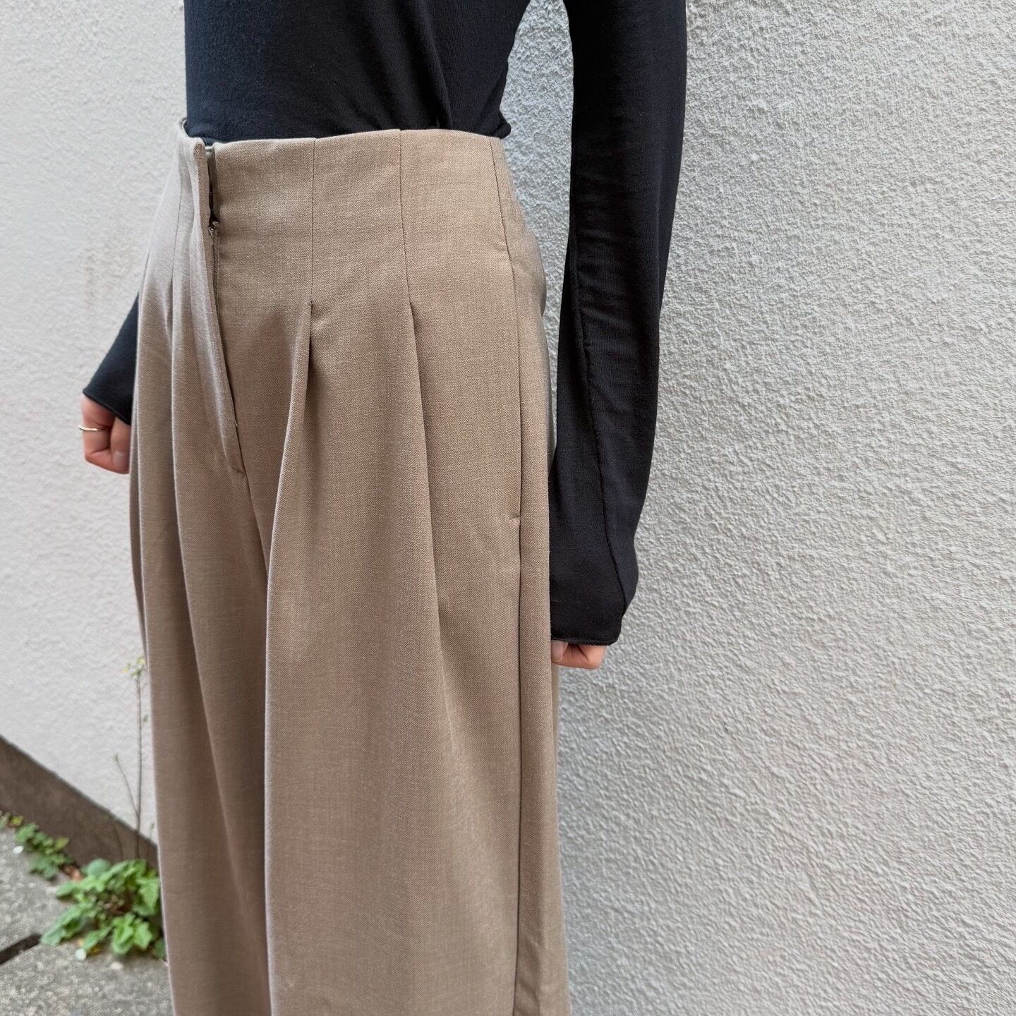 タック入りで腰まわりはすっきり見えます。