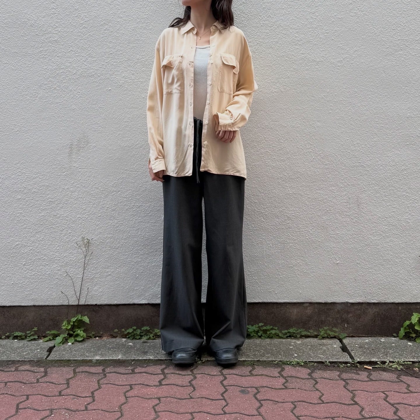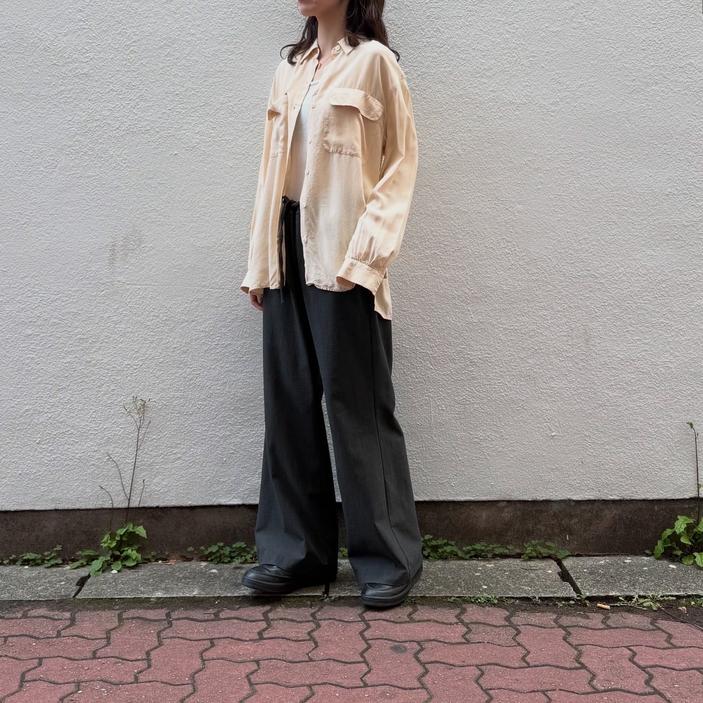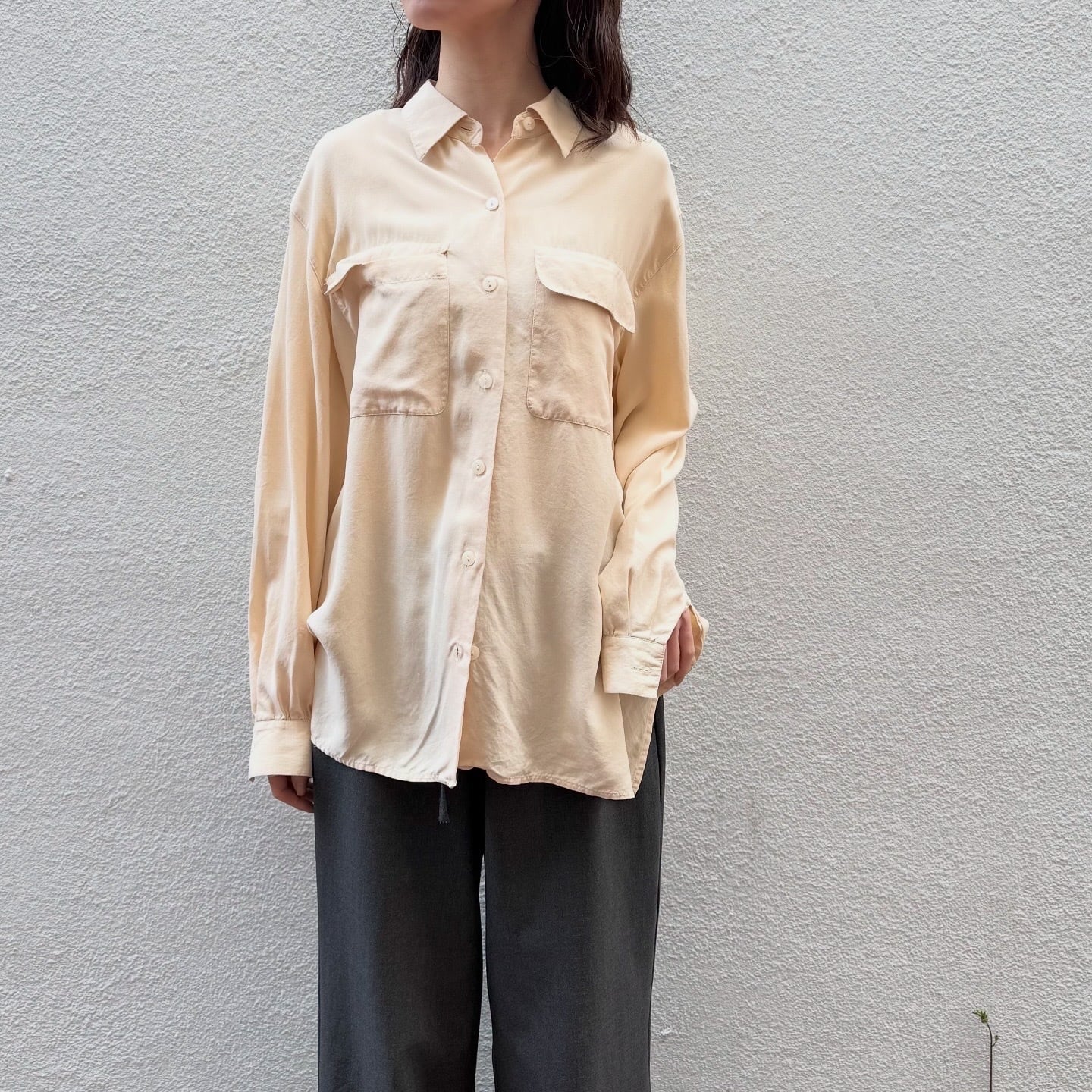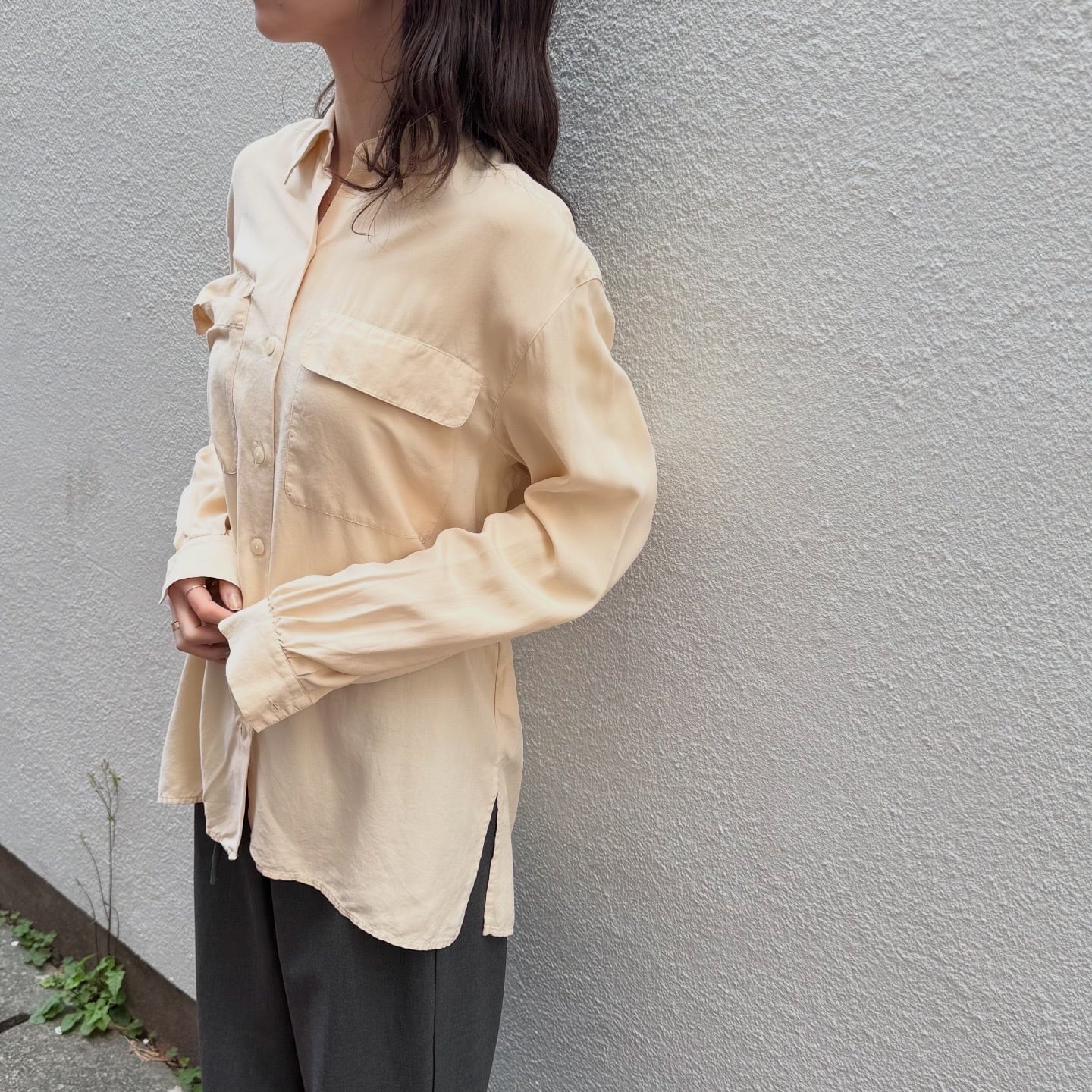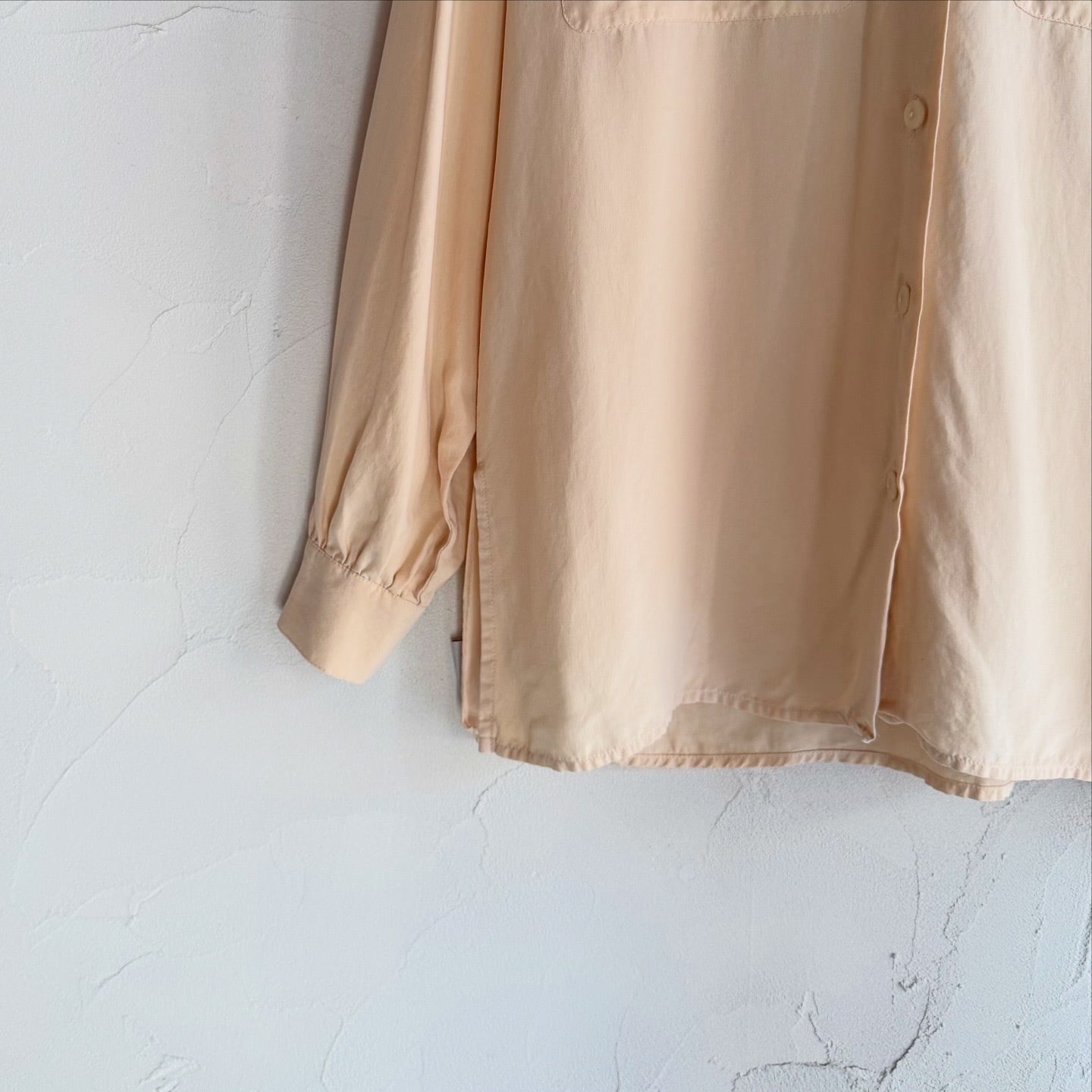 シルク100%で柔らかい色味のシャツです。