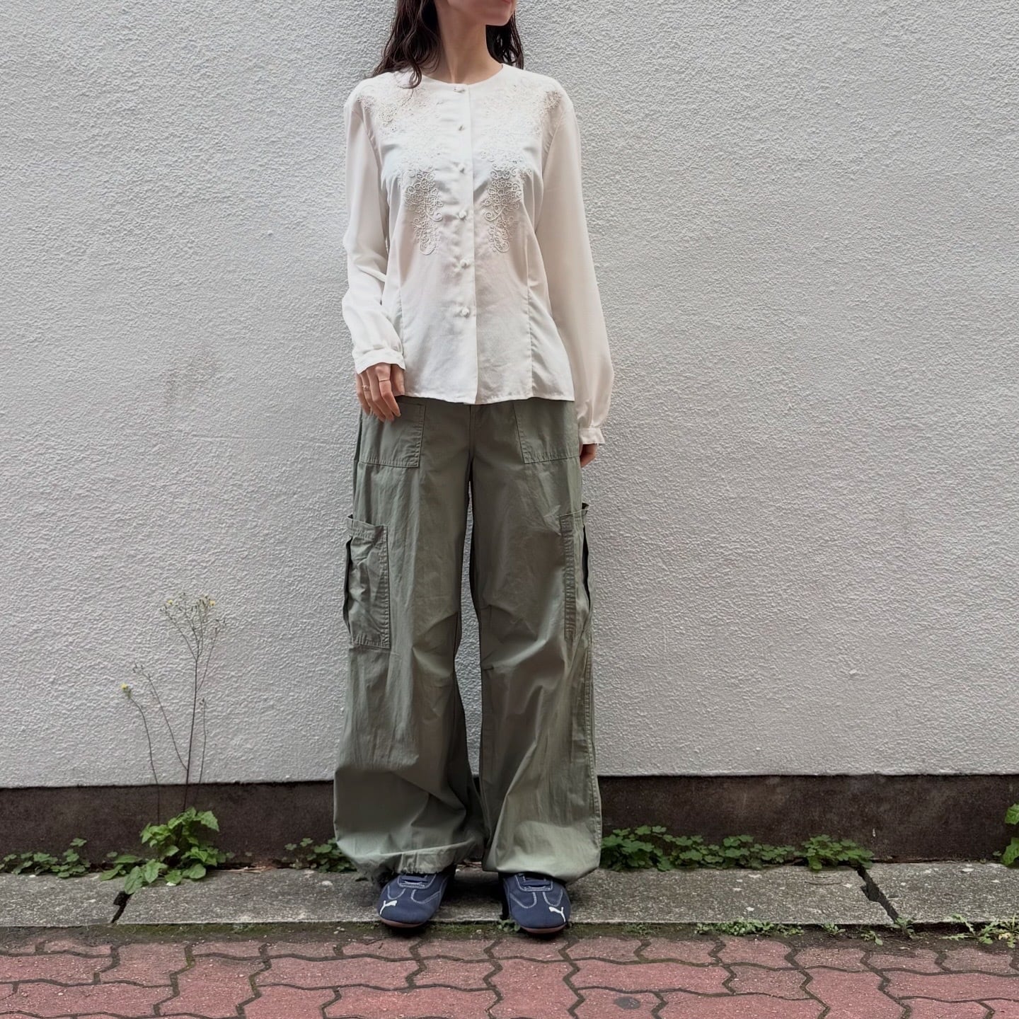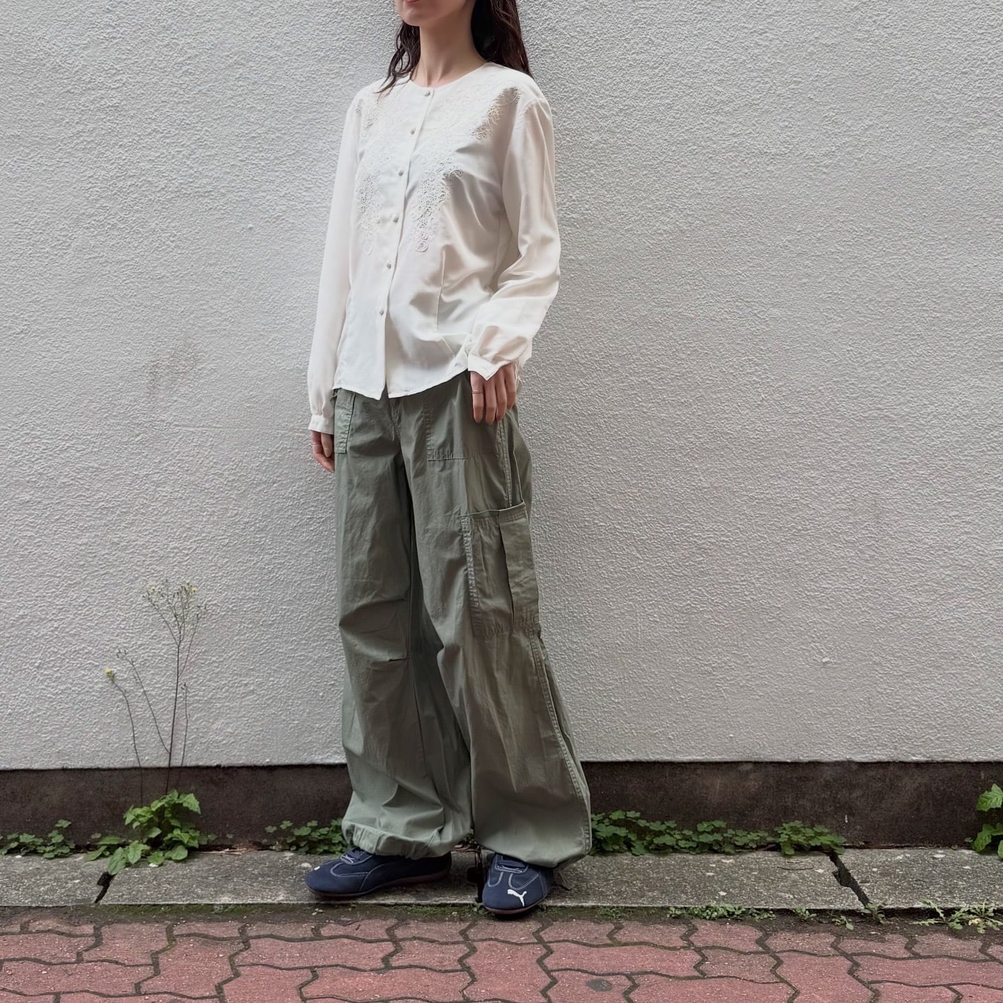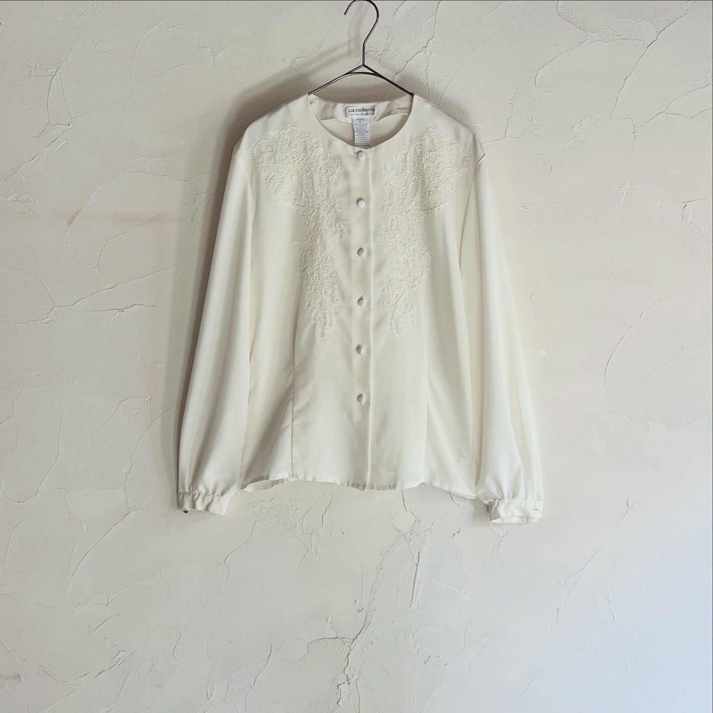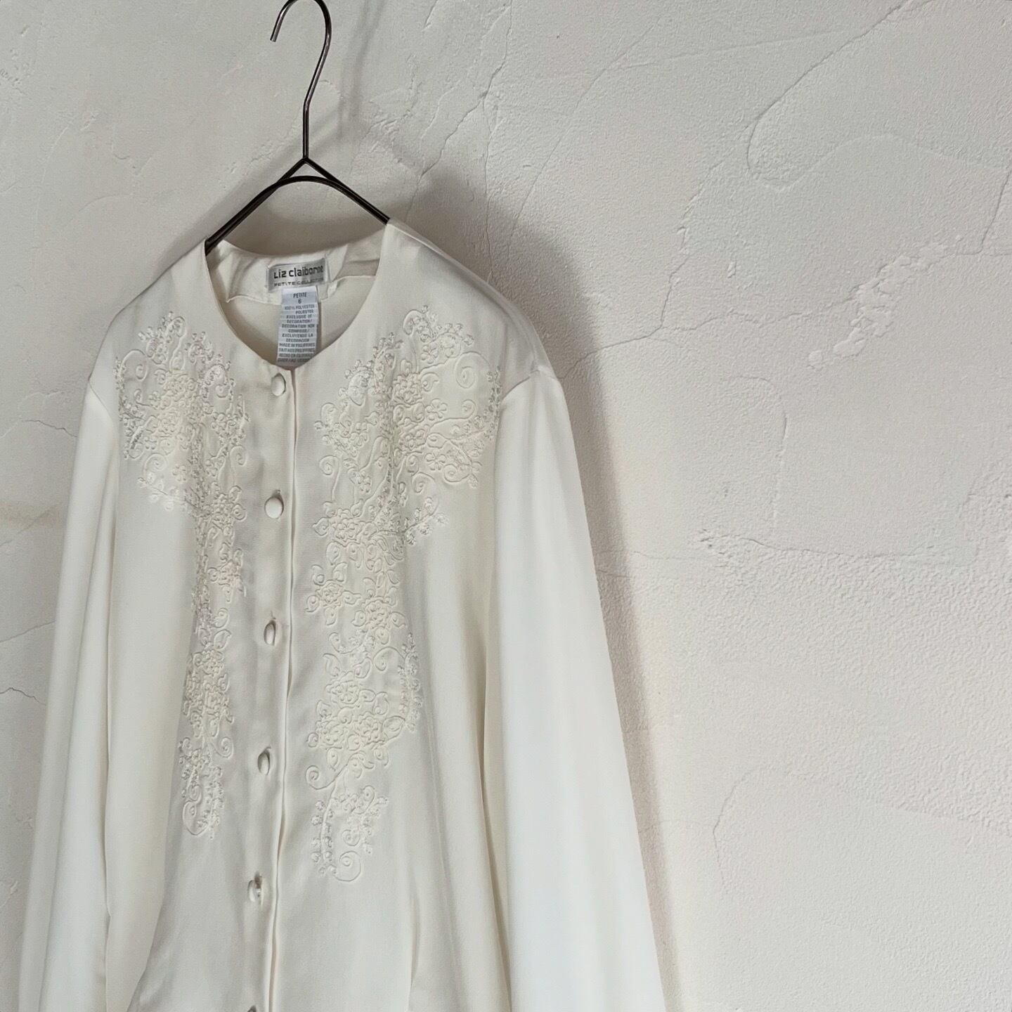 前身頃の繊細なお花の刺繍が素敵なブラウスです。