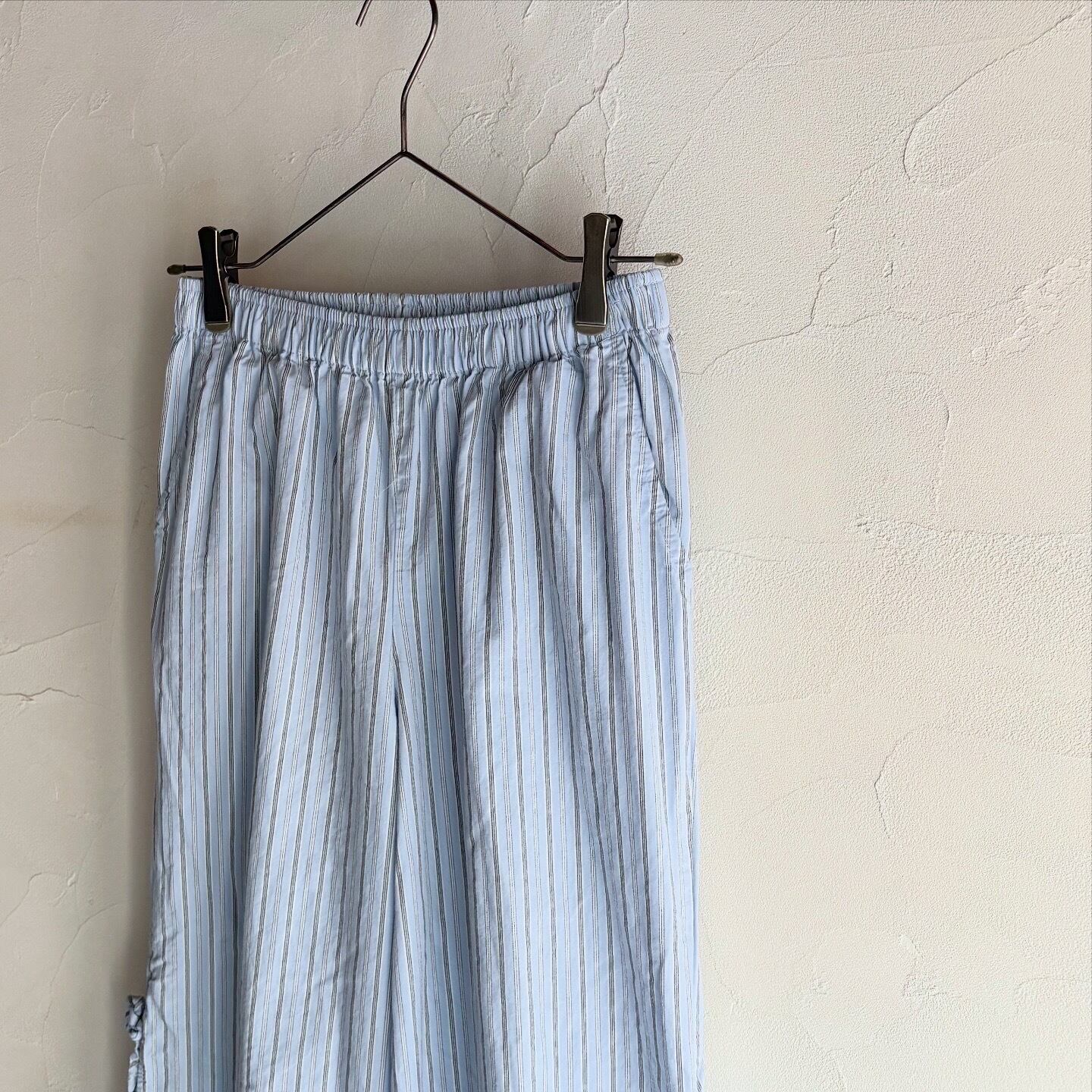 パジャマっぽさのあるストライプが可愛いパンツです。