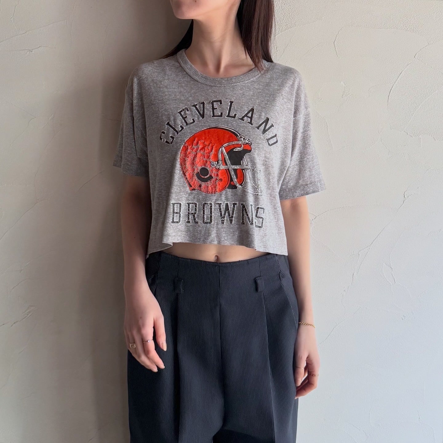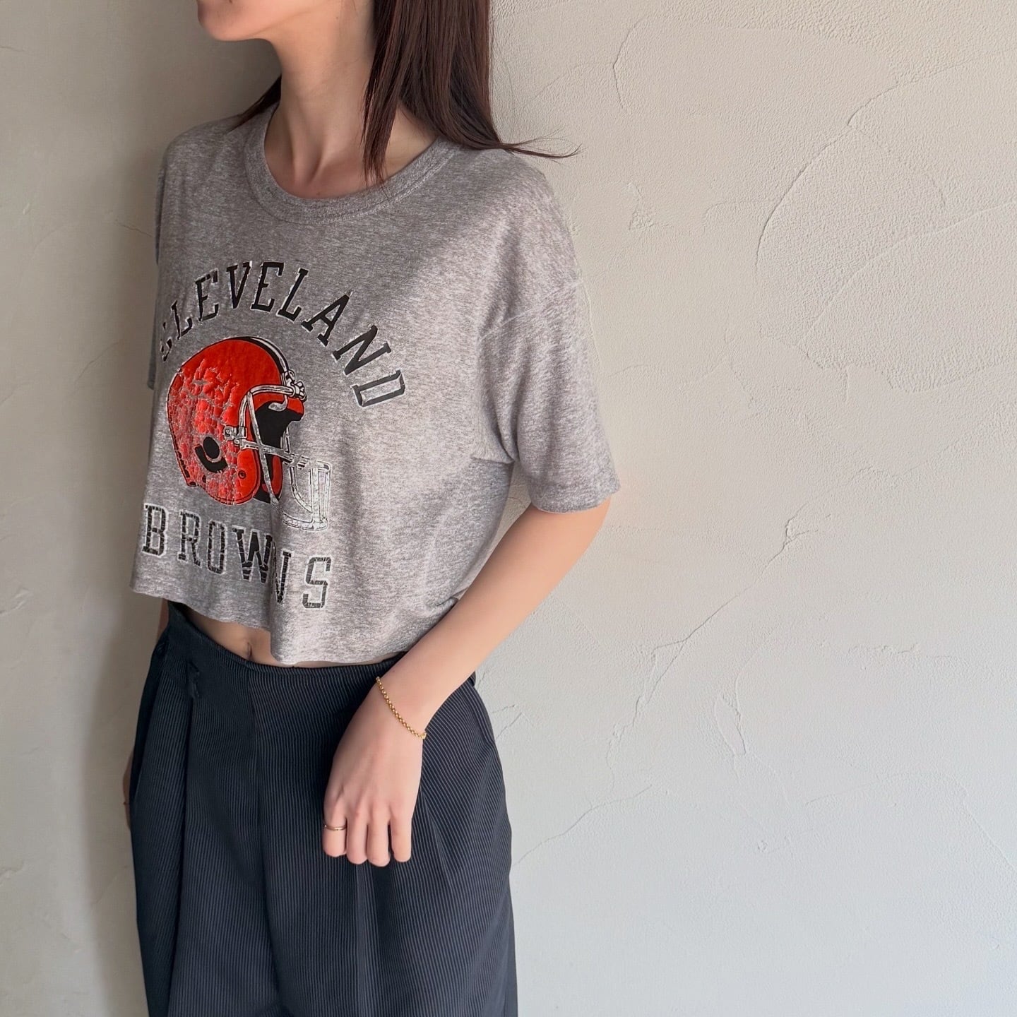 championのクロップド丈のロゴTシャツです。薄めの生地感でサラッと着られます。