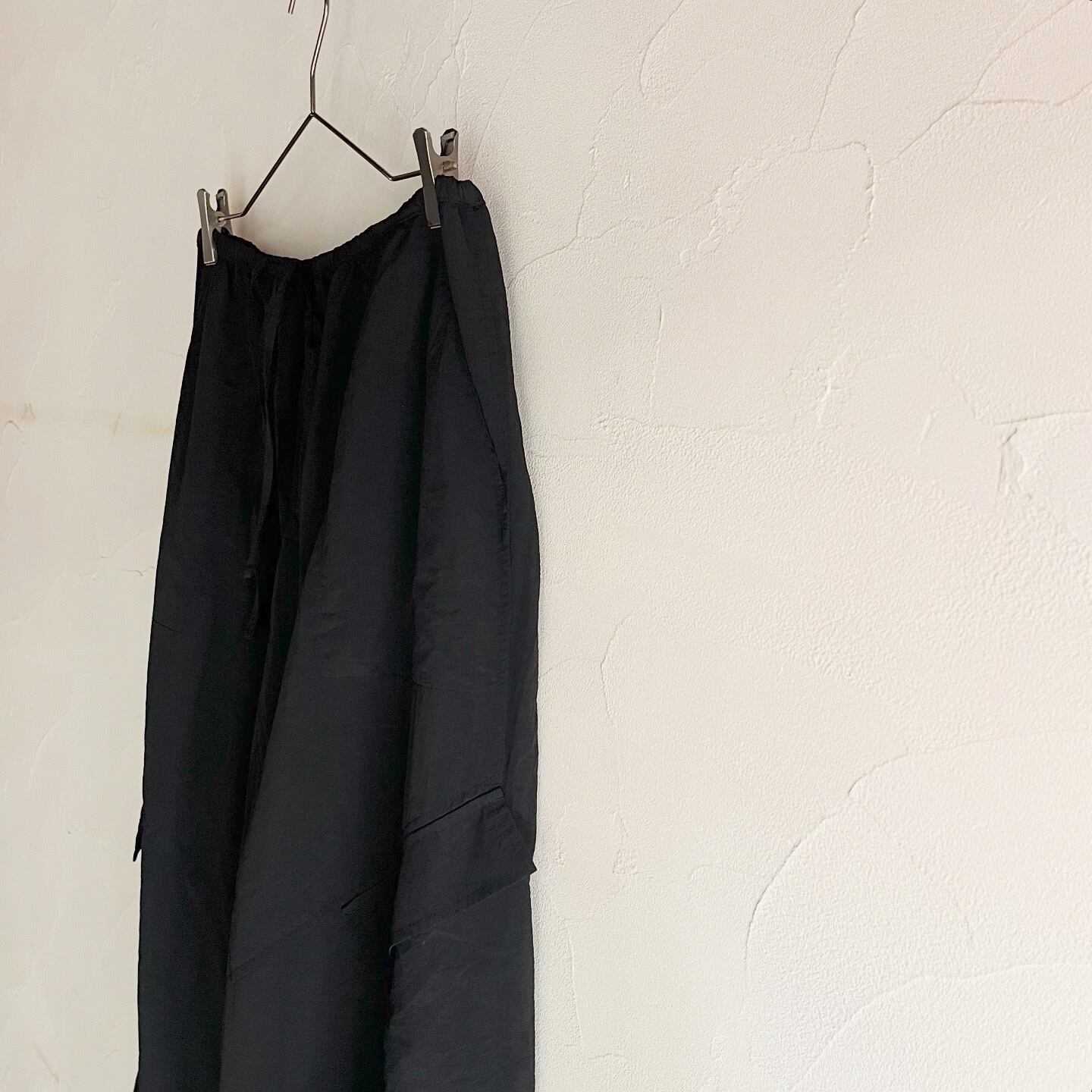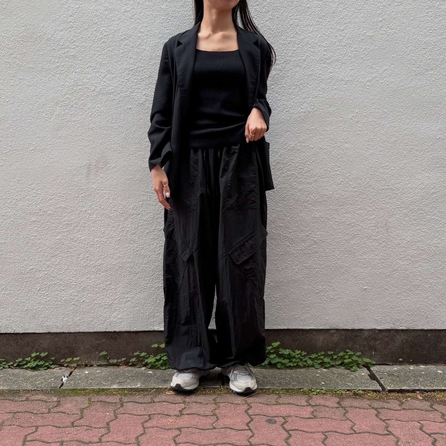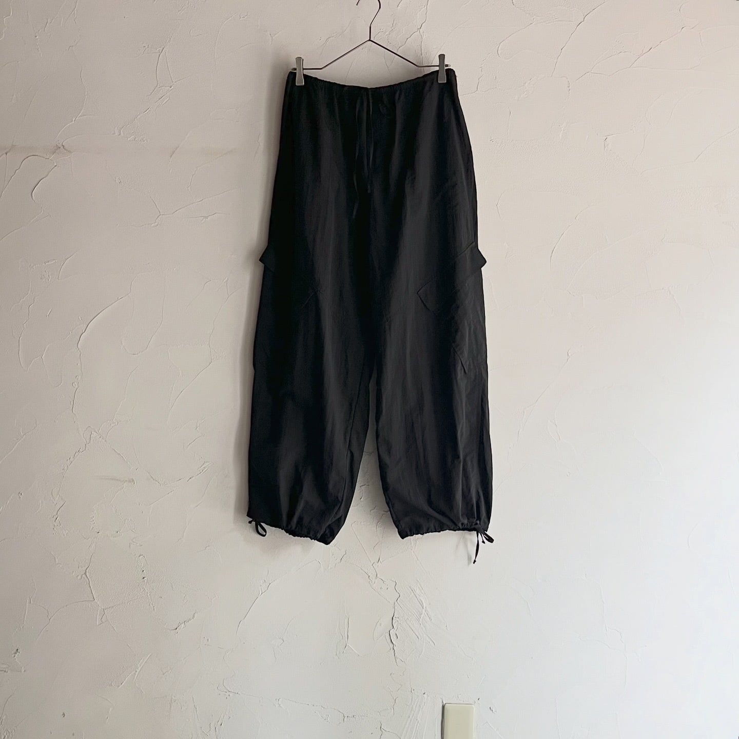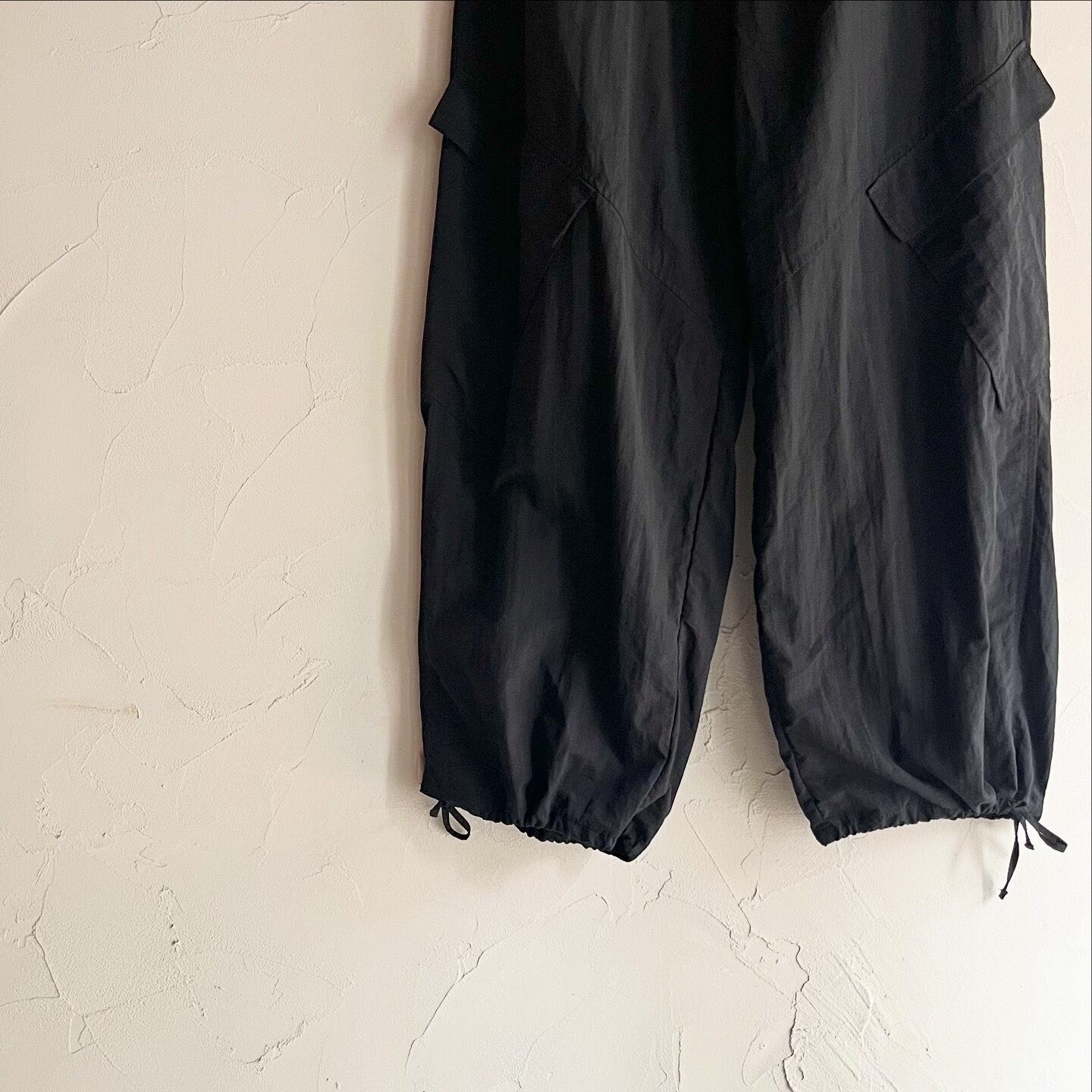 ナイロンのシャカシャカとした軽い履き心地で、裾・ウエストは紐で絞れます。