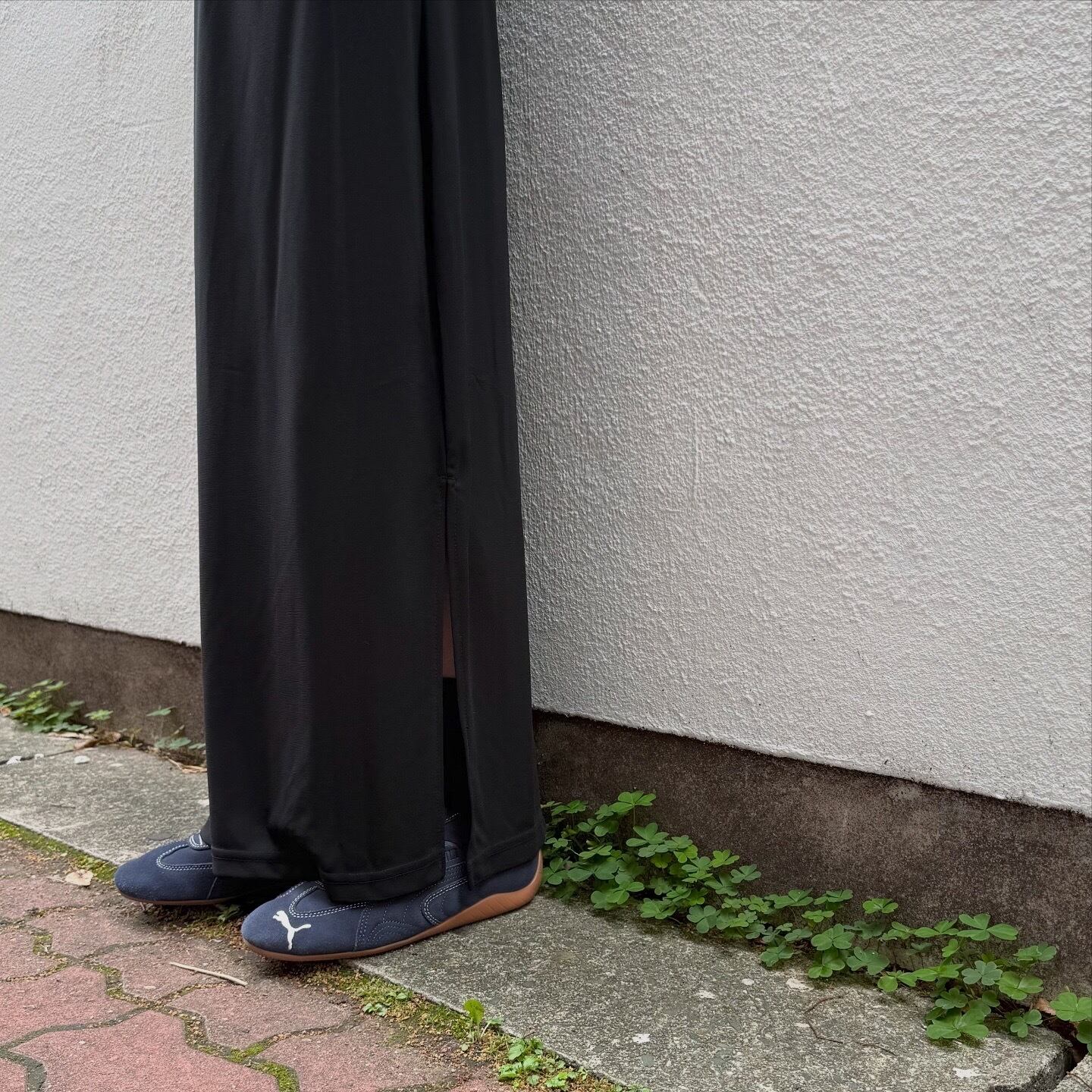 Iラインのスッキリとしたシルエットが美しいスリットスカートです。