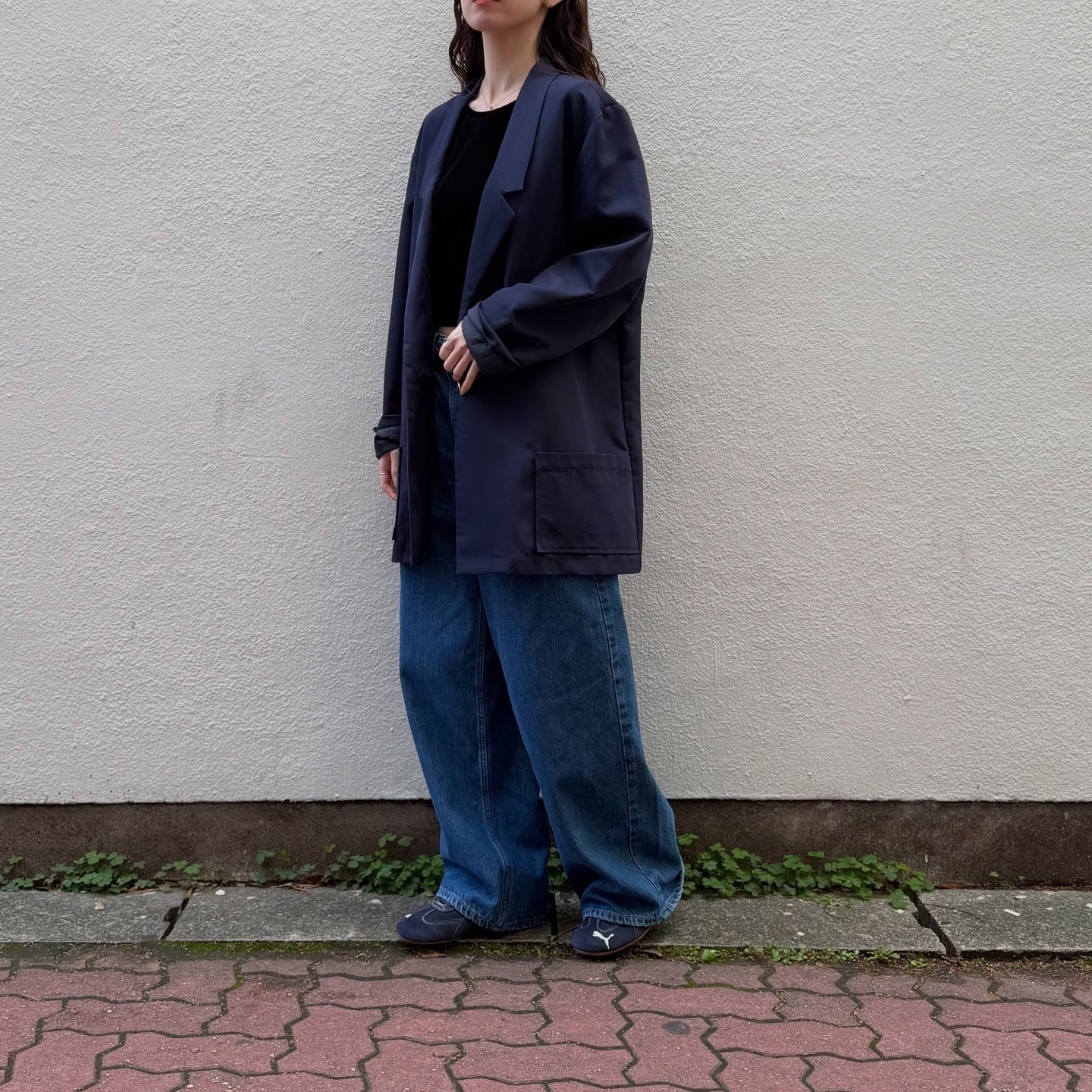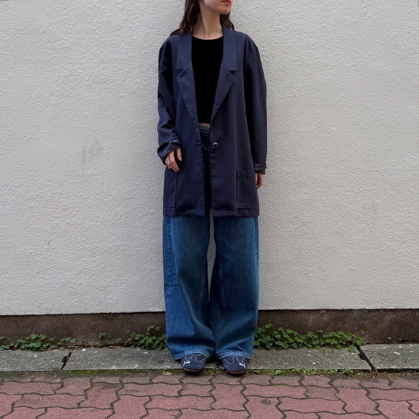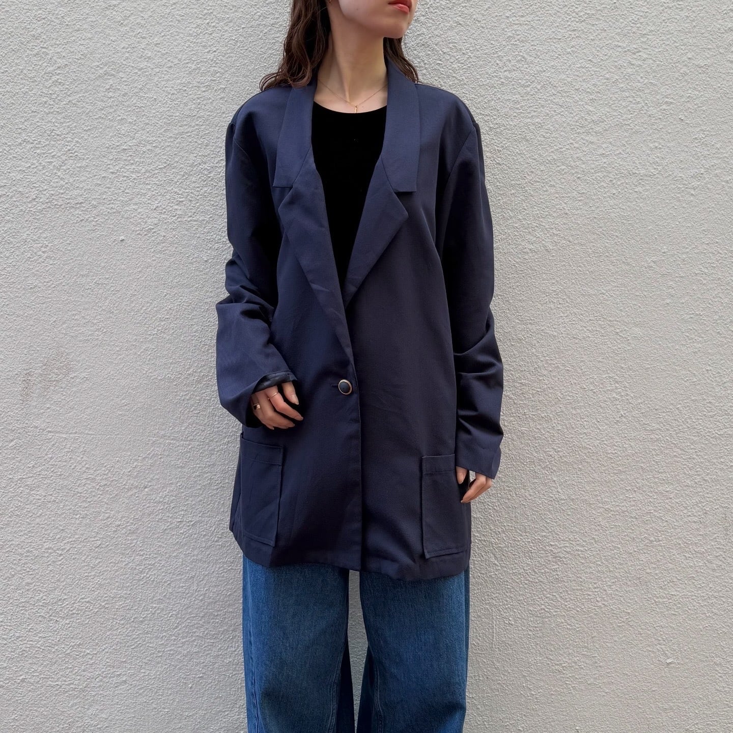 オーバーサイズのシングルジャケットです。裏地はついておらず、ゴールドで縁取られたボタンがポイントです。
