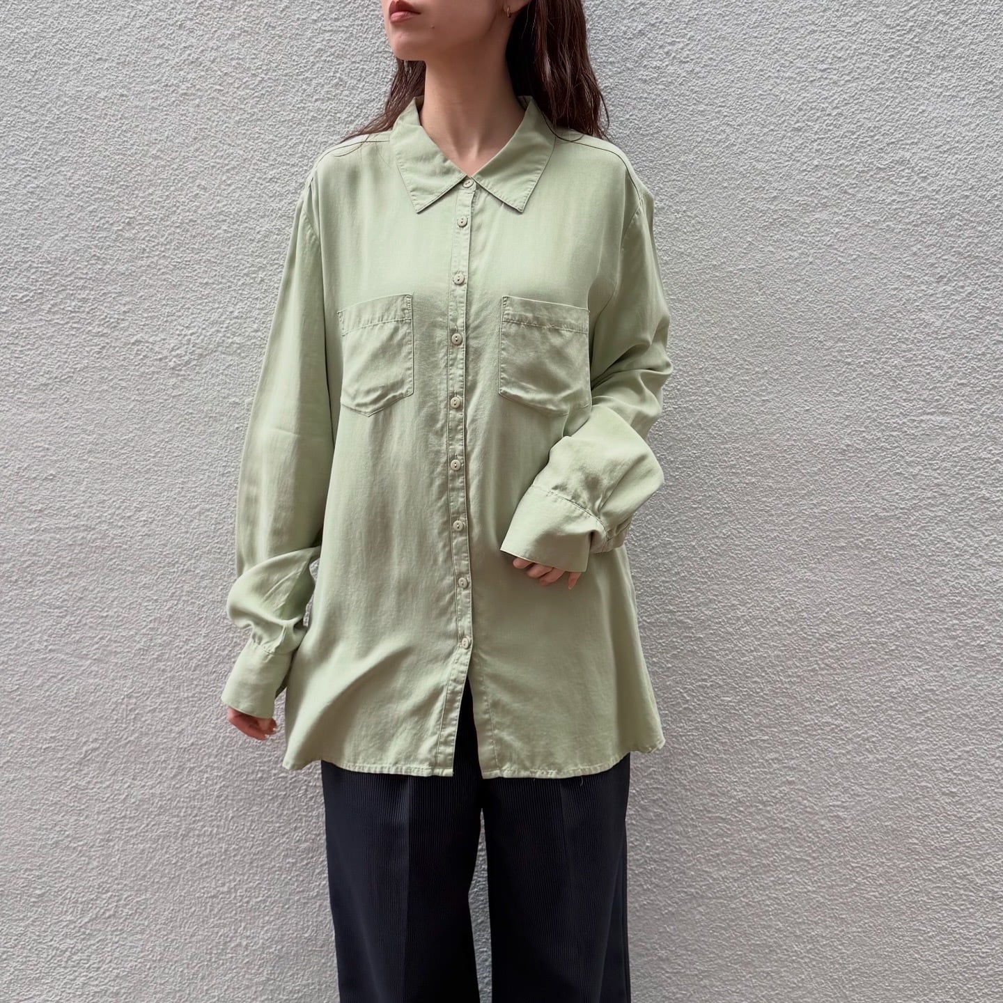 マスクメロンのような色味が素敵なシルクシャツです。