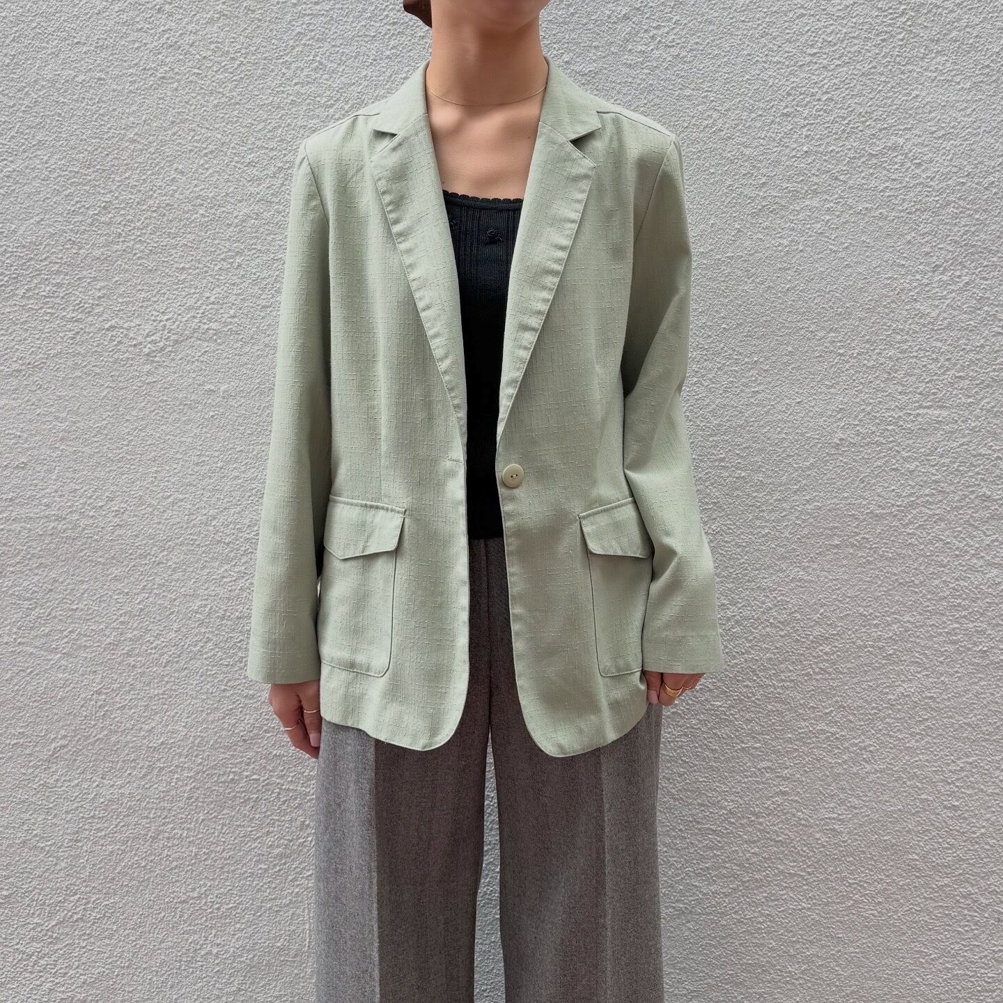 柔らかいグリーンが春らしいテーラードジャケットです。