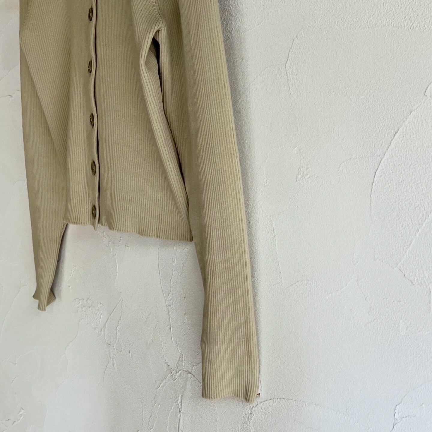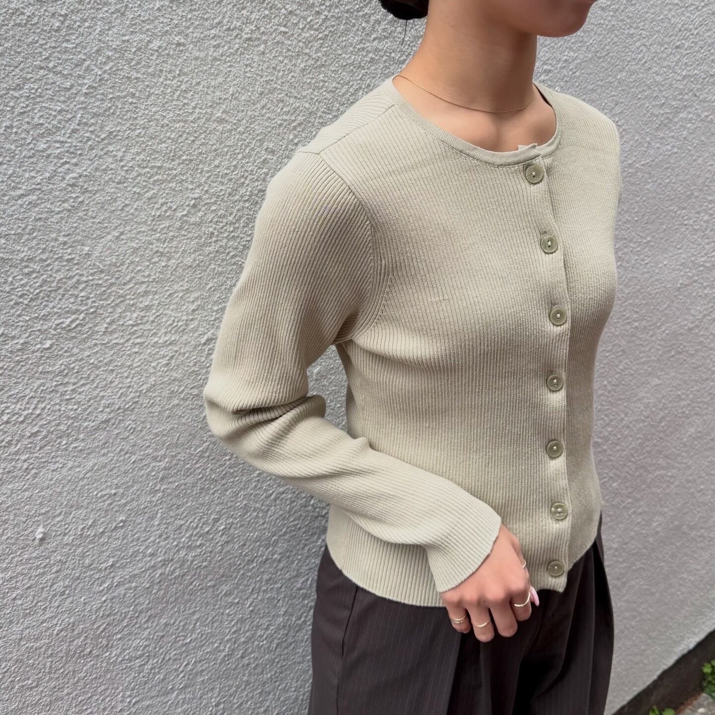 分厚めのシェル風ボタンが素敵なニットカーディガンです。