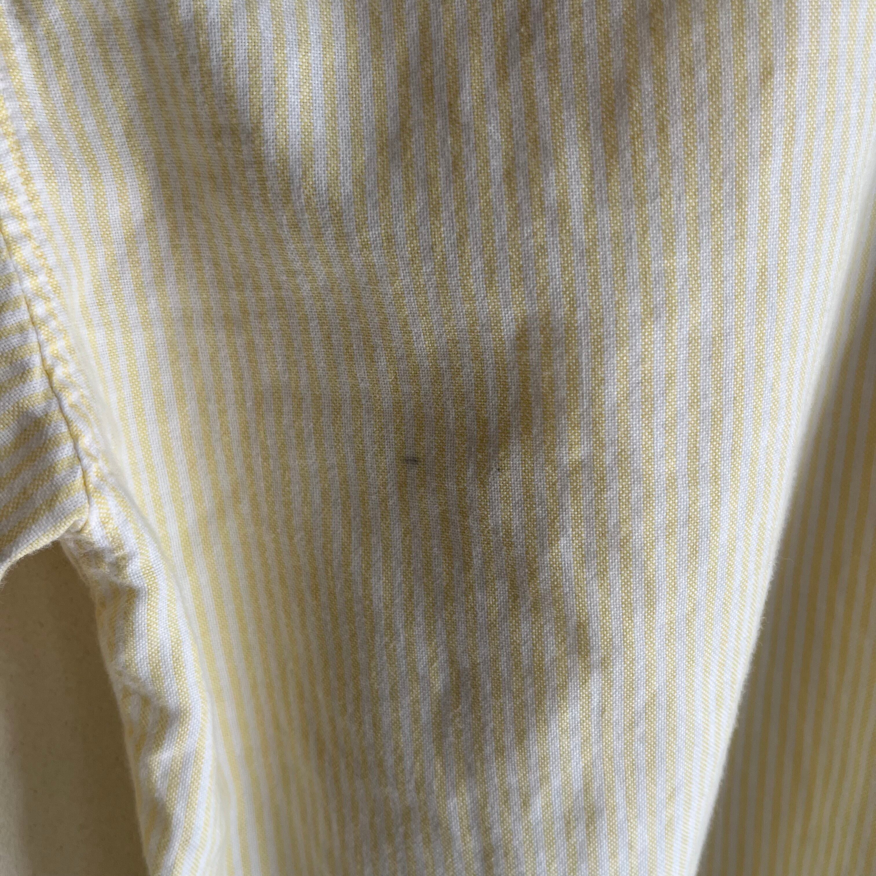 販売前に全体をチェックし、色落ちや穴等気付いた箇所(商品の味としての風合いと判断した箇所を除き)は記載致しますが、稀にわずかなダメージを見落とす場合がございます。