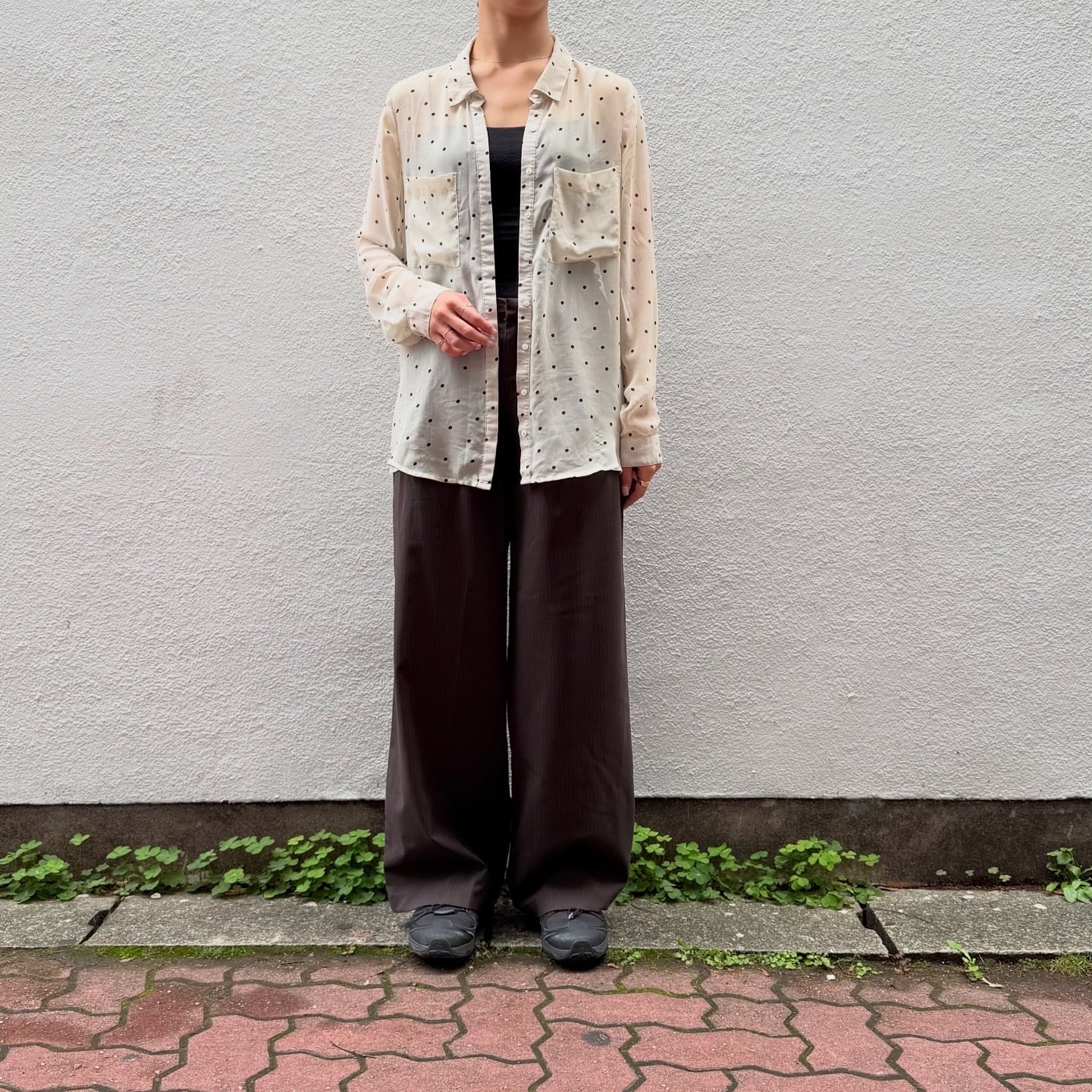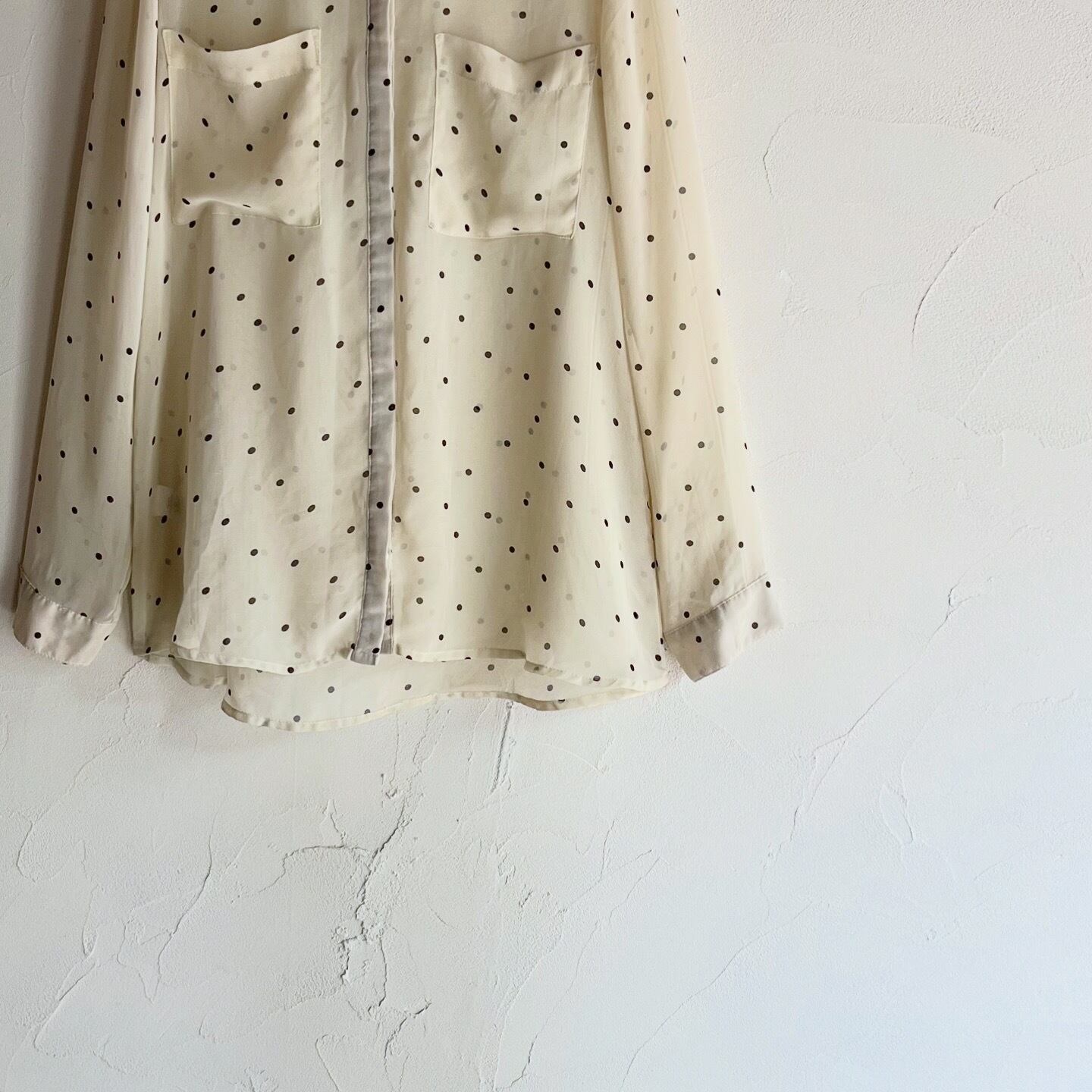 程よく透け感のある素材や隠しボタンのデザインがお洒落なドット柄シャツです。