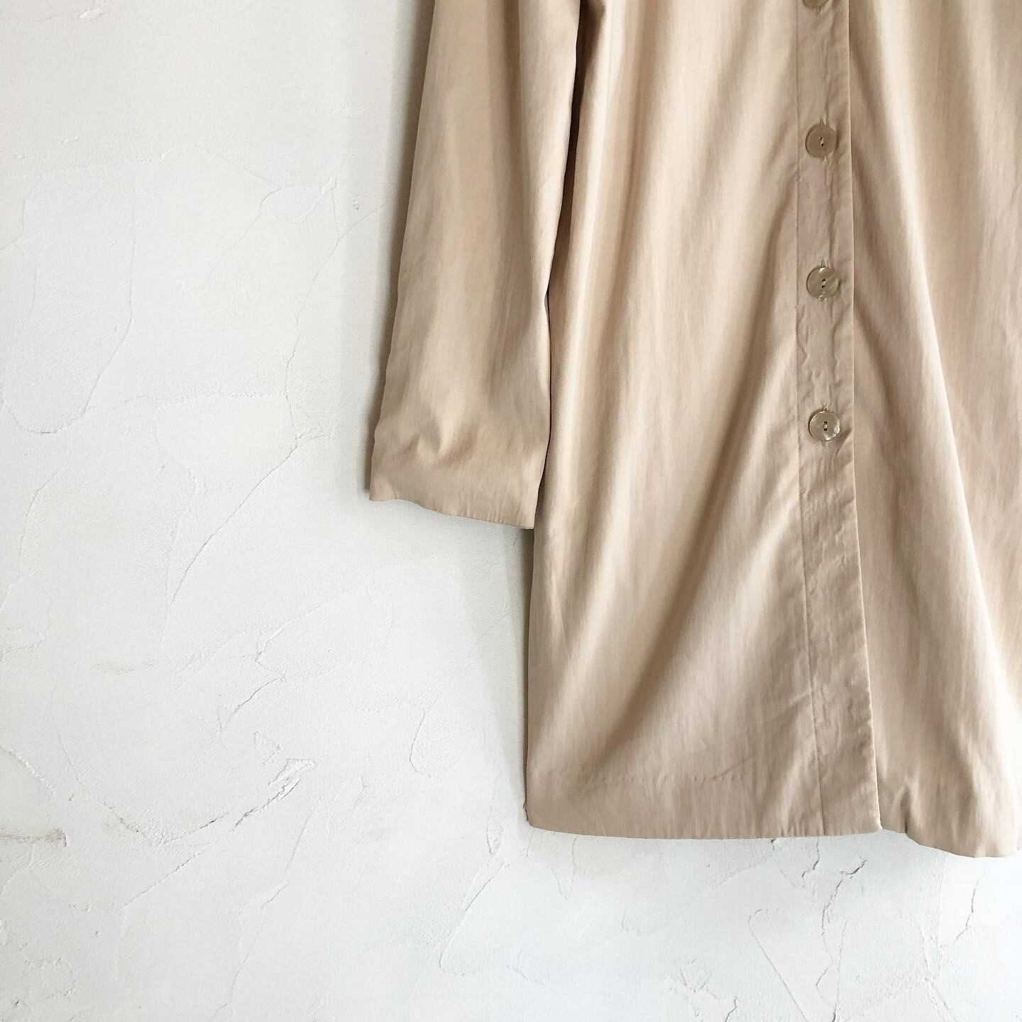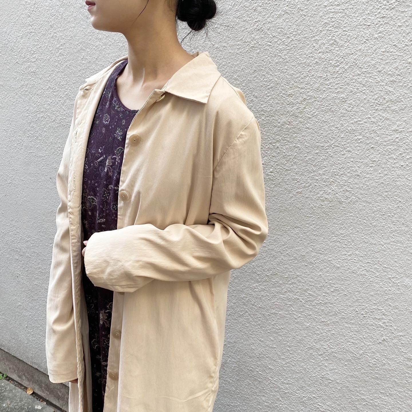 柔らかなアイボリーの色味に、シンプルでありながら程よくルーズなシルエットが可愛いコートです。
