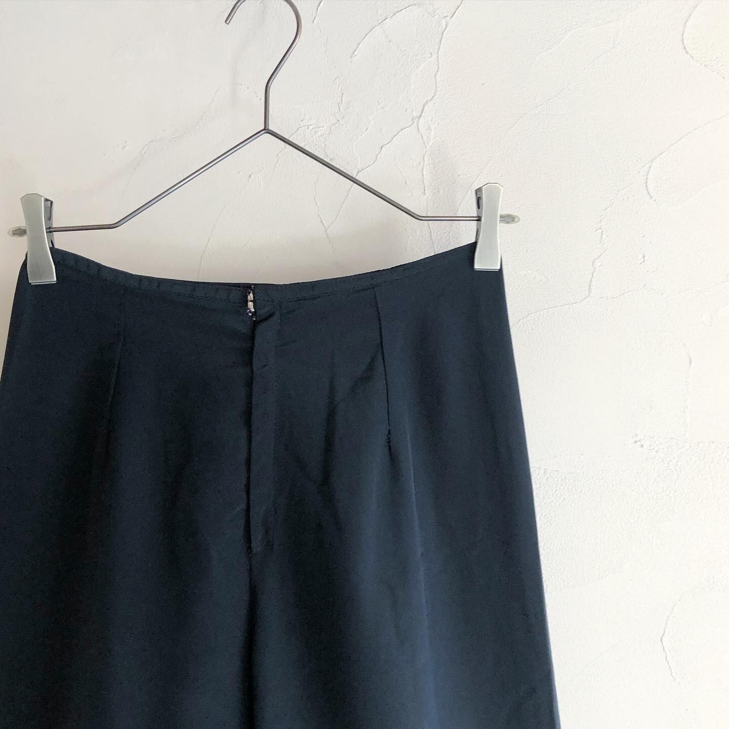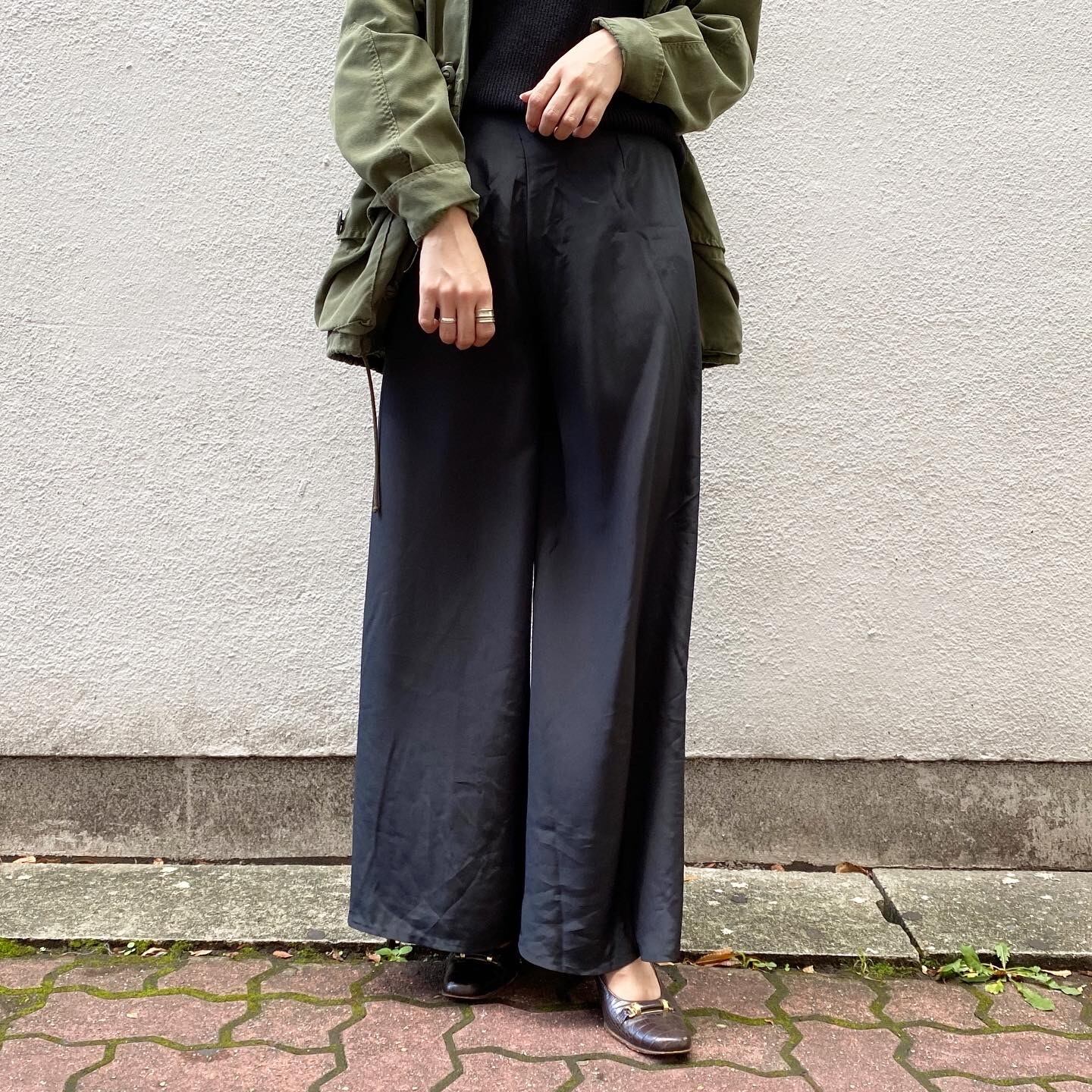 光沢感のある素材感に、程よくワイドなシルエットがお洒落なパンツです。