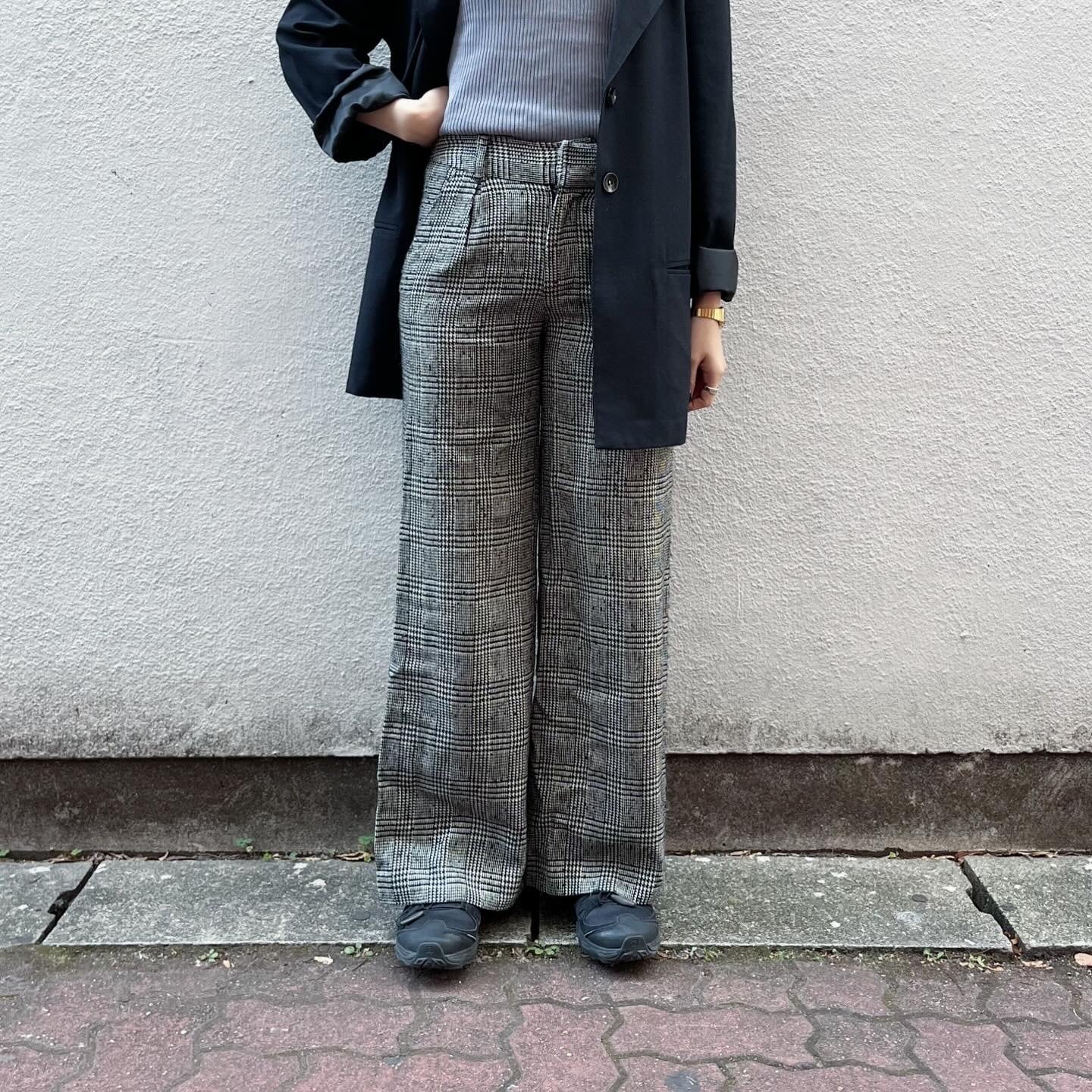 程よくワイドなシルエットで、千鳥格子柄がお洒落なパンツです。