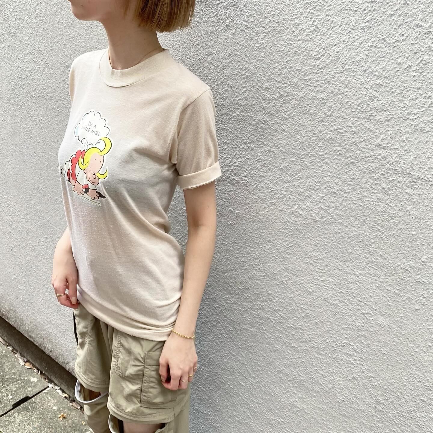 柔らかく着心地の良いプリントTシャツです。可愛らしいイラストと肌馴染みの良いカラーがポイントです。