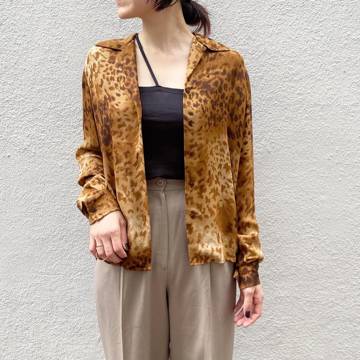シルクの品のある艶やかな素材感と女性らしさのあるシルエットが素敵なシャツです。