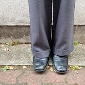 絶妙なブルーグレーの色味がお洒落なスラックスパンツです。薄手で着心地も良く履きやすい一本です。