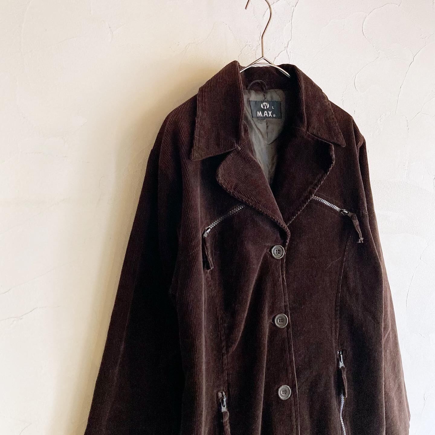 フロントや袖についたジップが機能的でデザイン性のあるコーデュロイのコートです。メンズライクでスマートな印象ながら、柔らかく袖通しもいいので女性でも着やすい1着です。